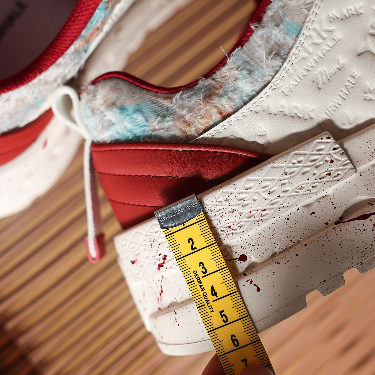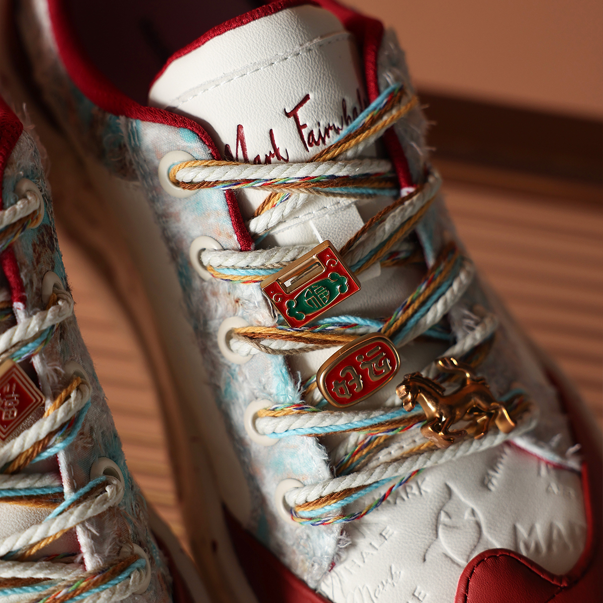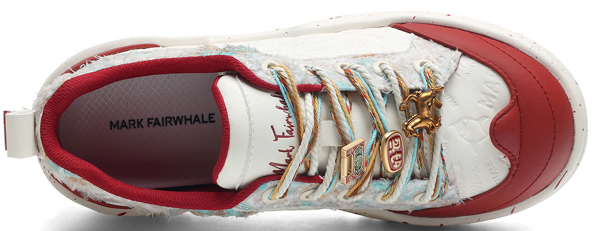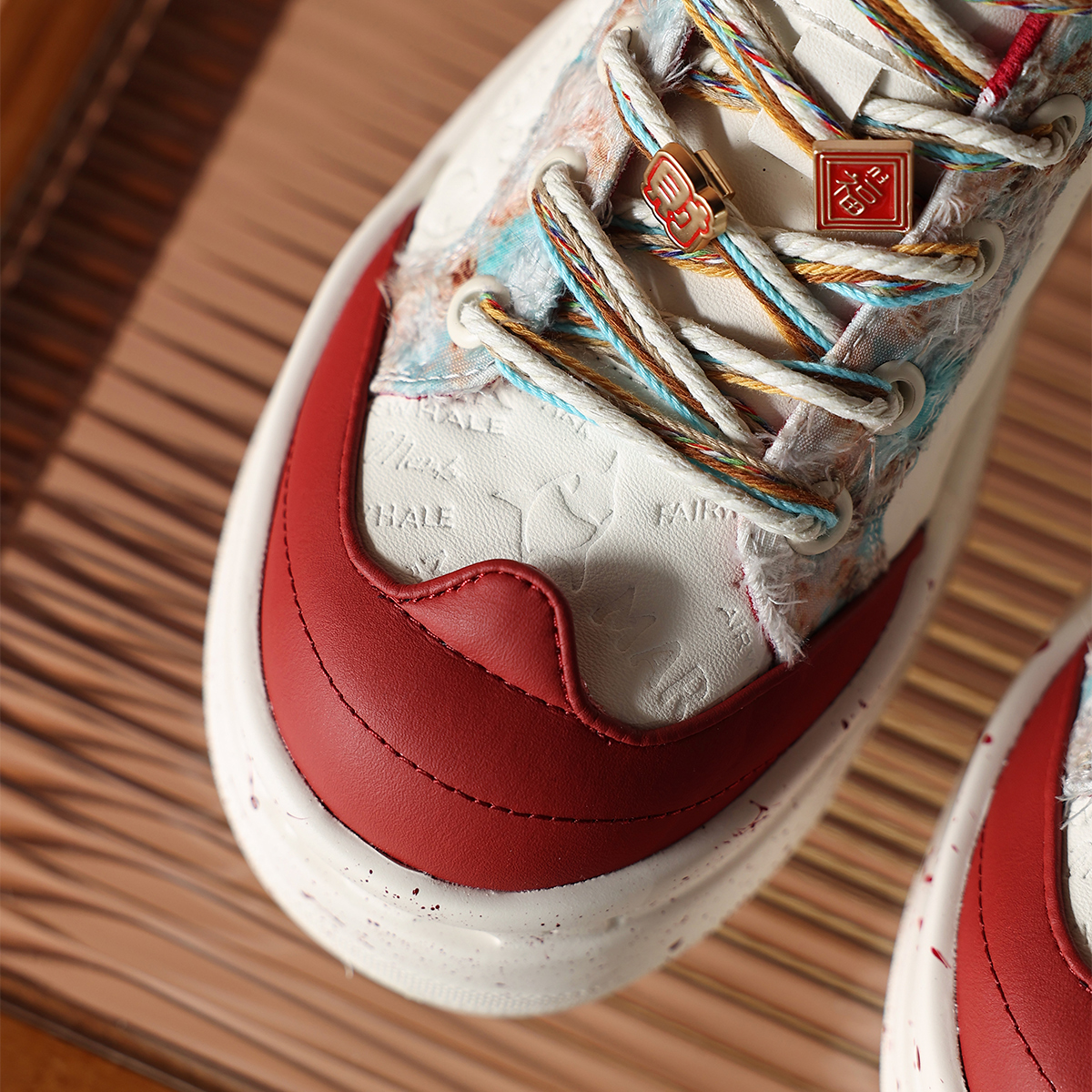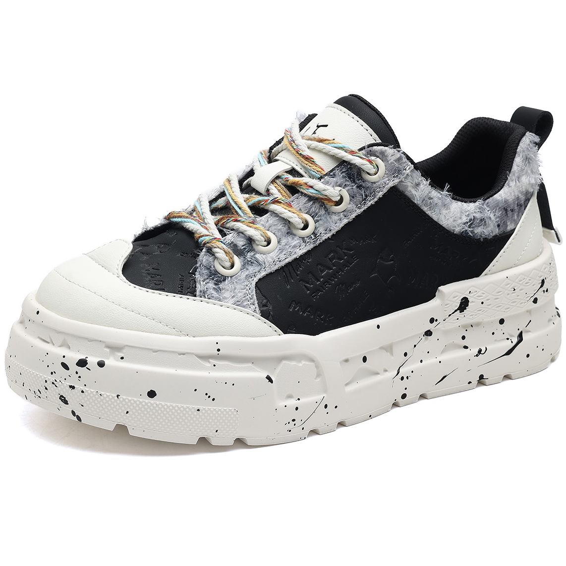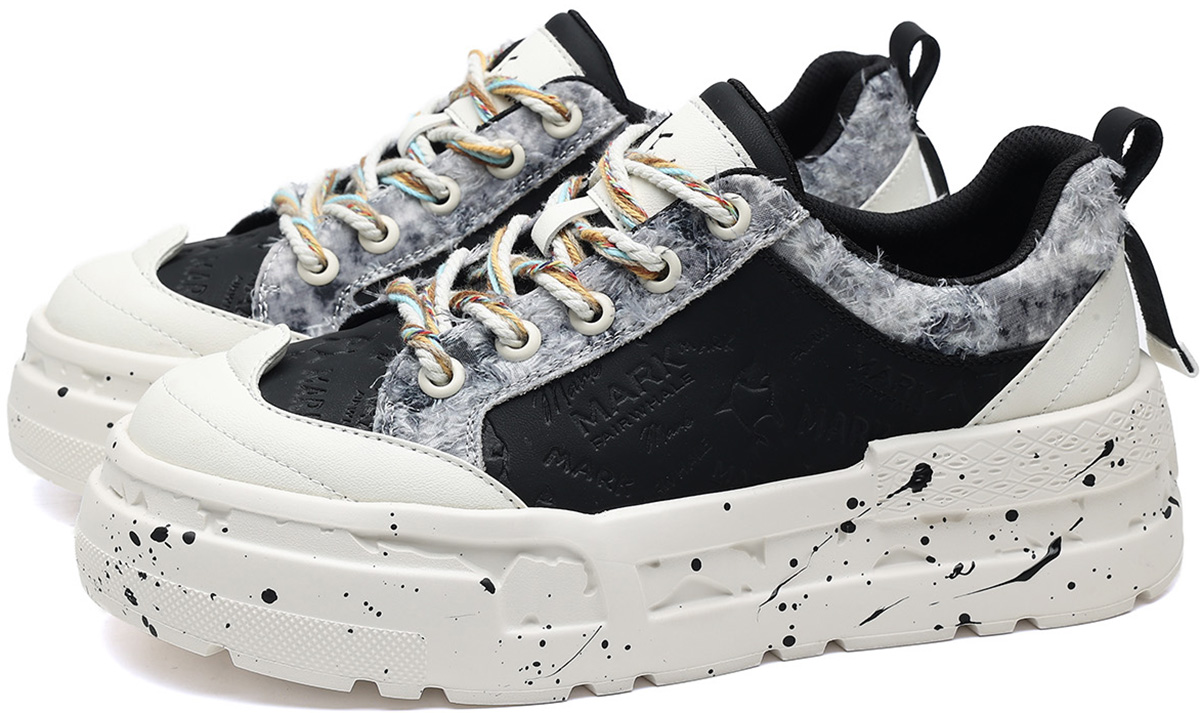 Mens Colorful Lace Frayed Embossed Sneakers with Festive Charms and Spray Painted Soles