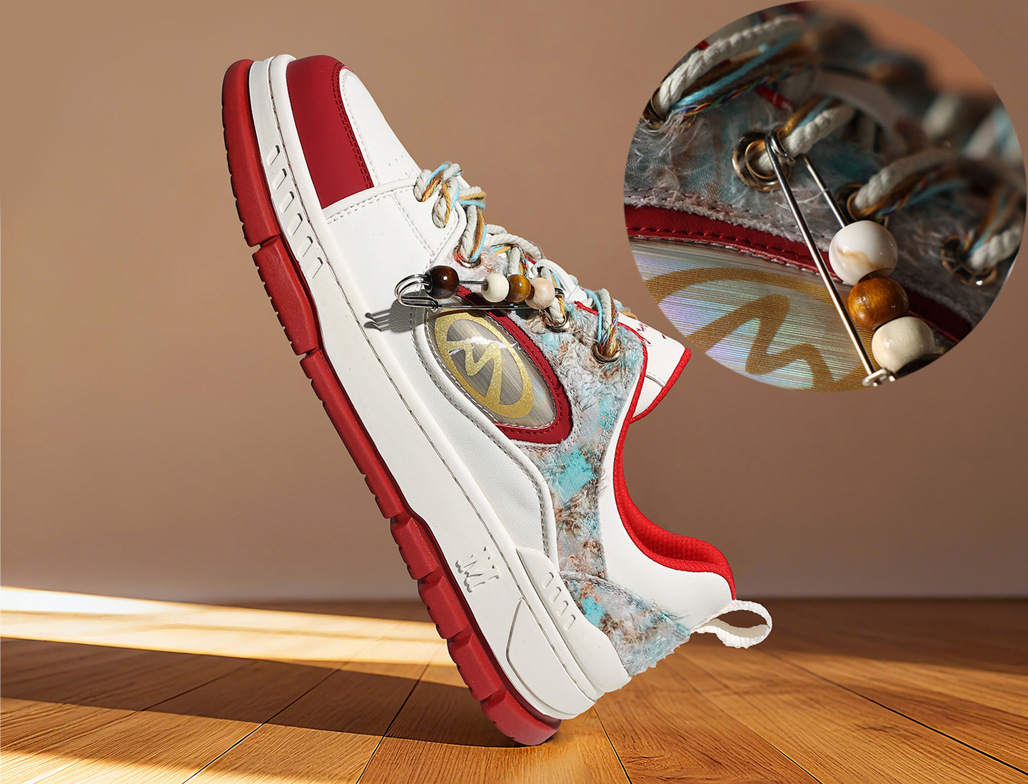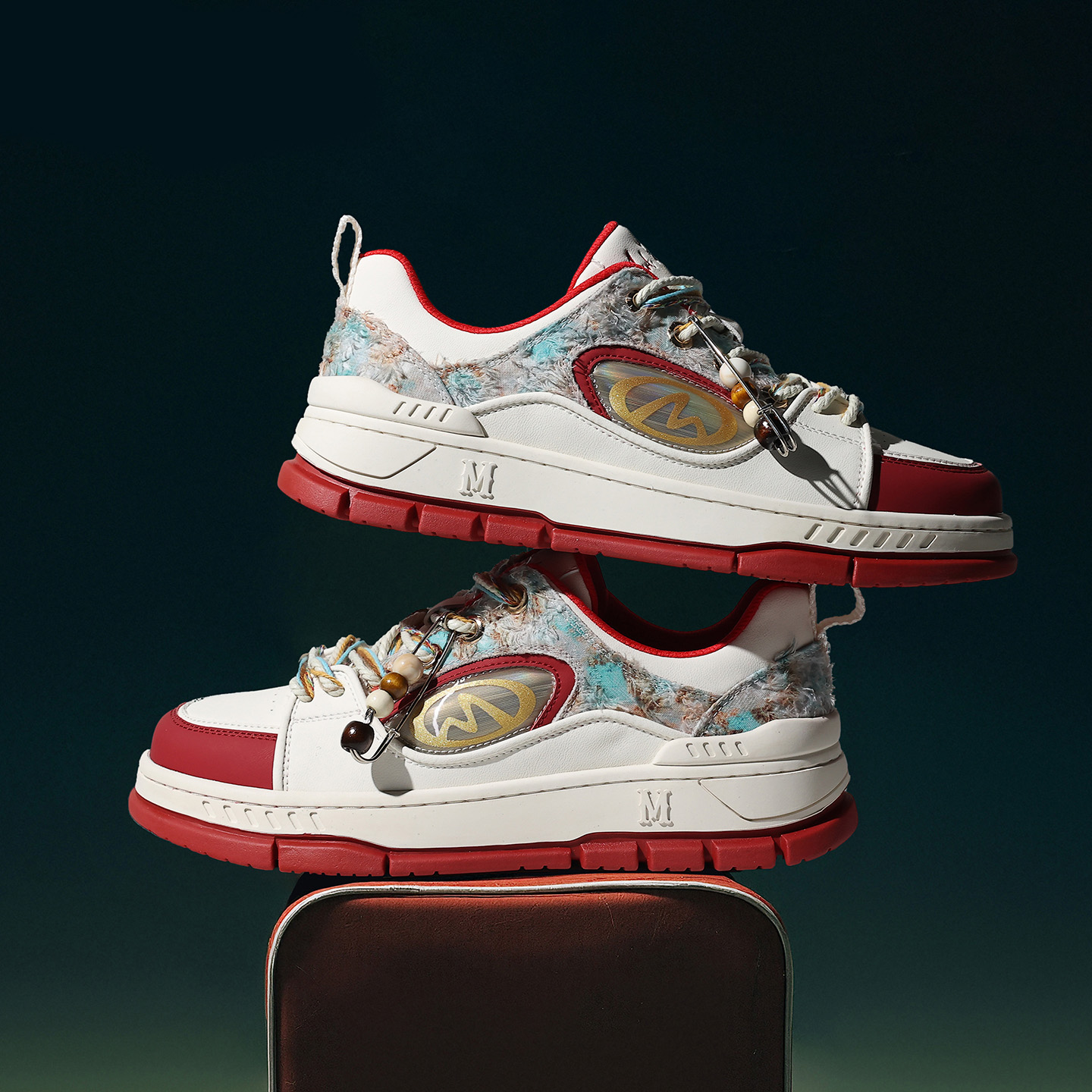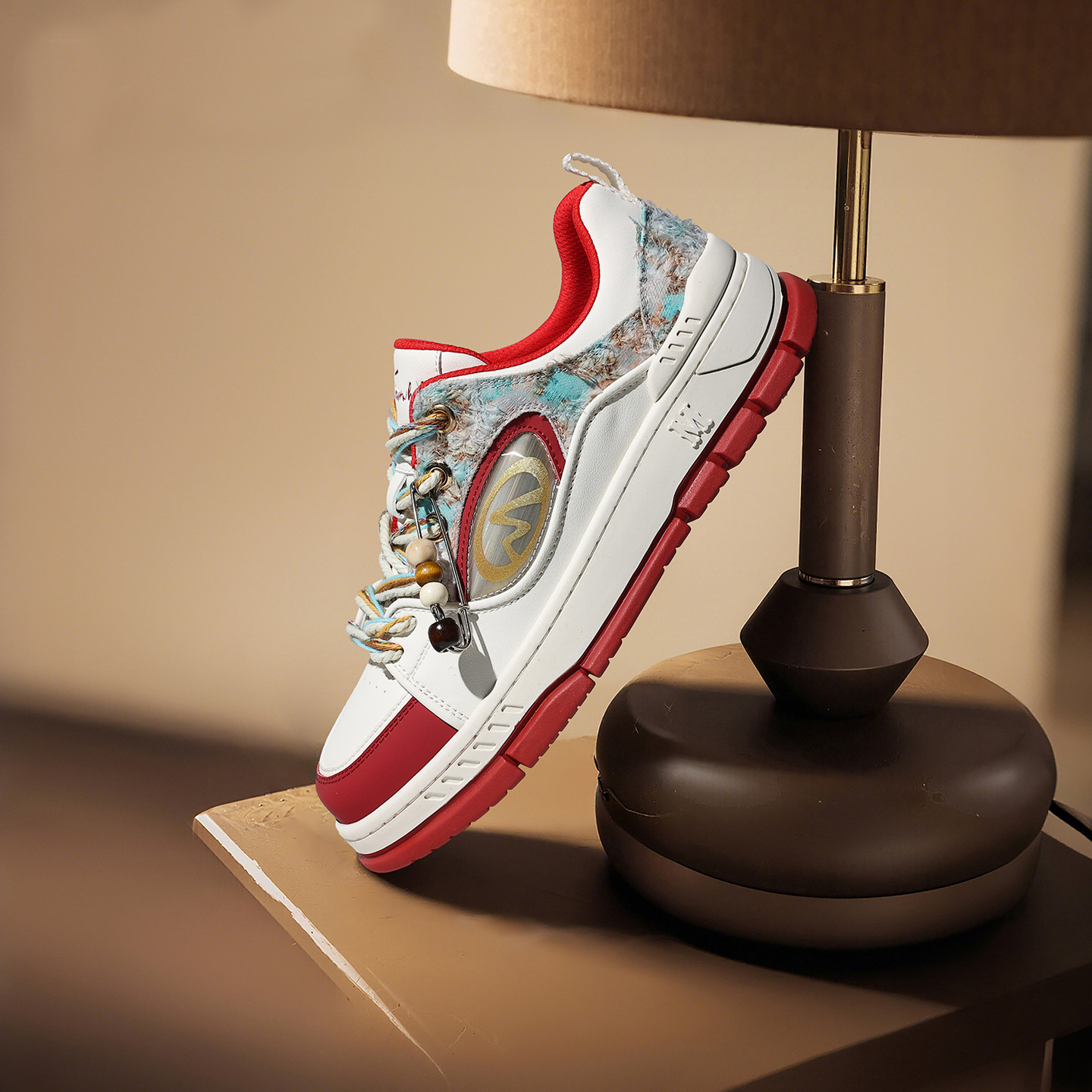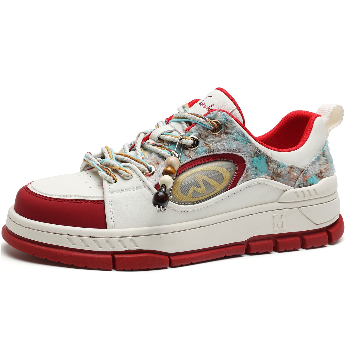 Mens Distressed Fuzzy Casual Sneakers with Bead Accents