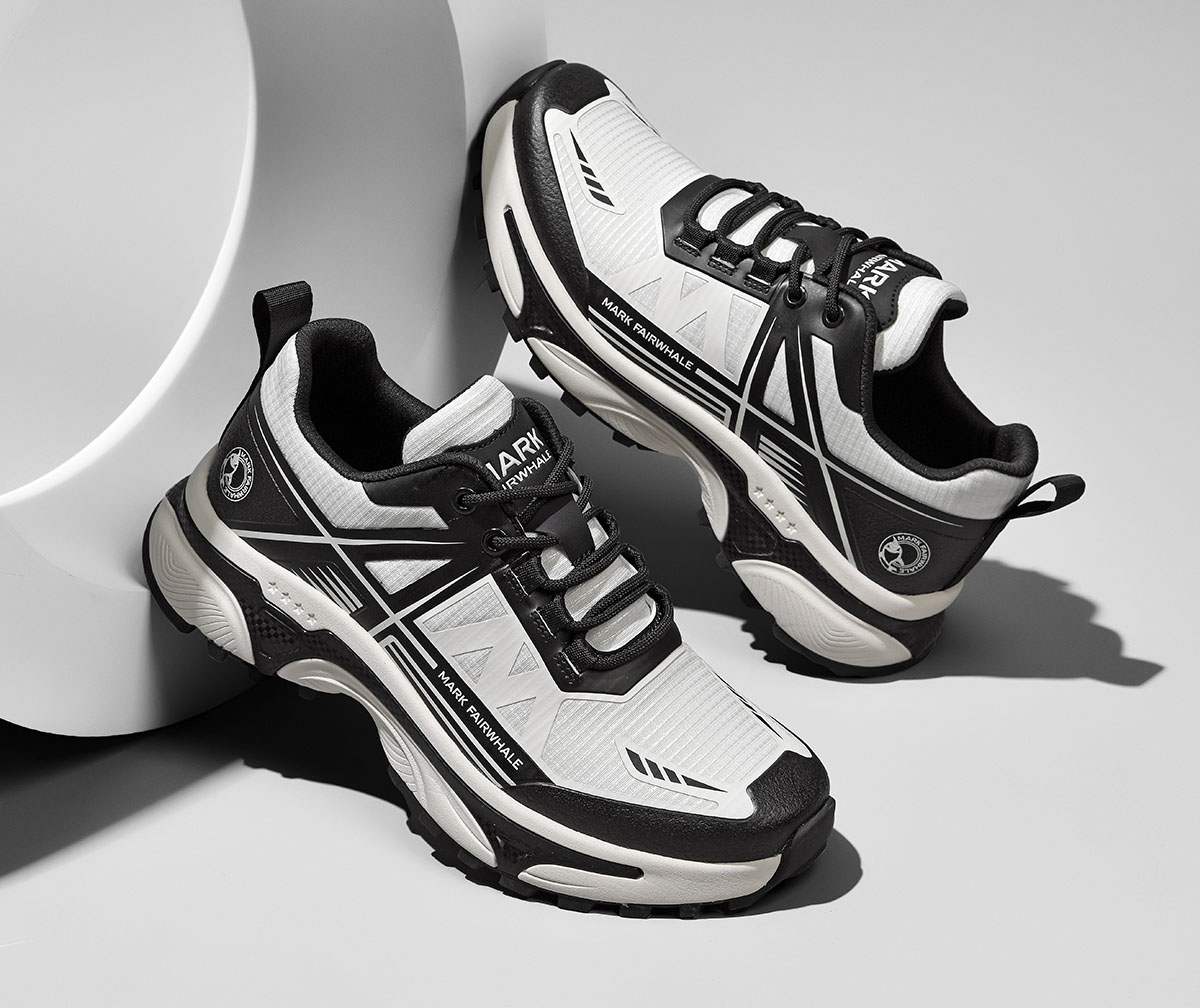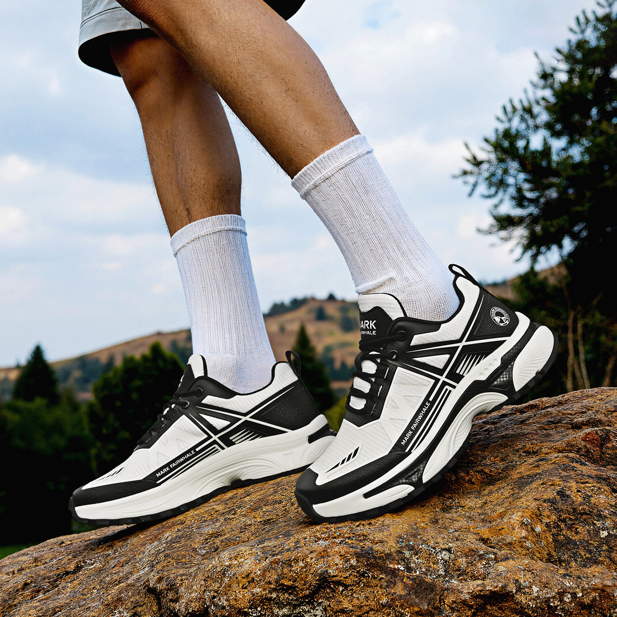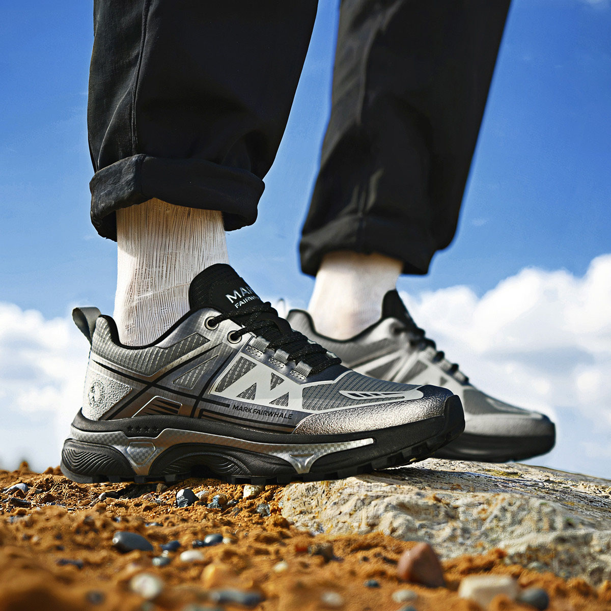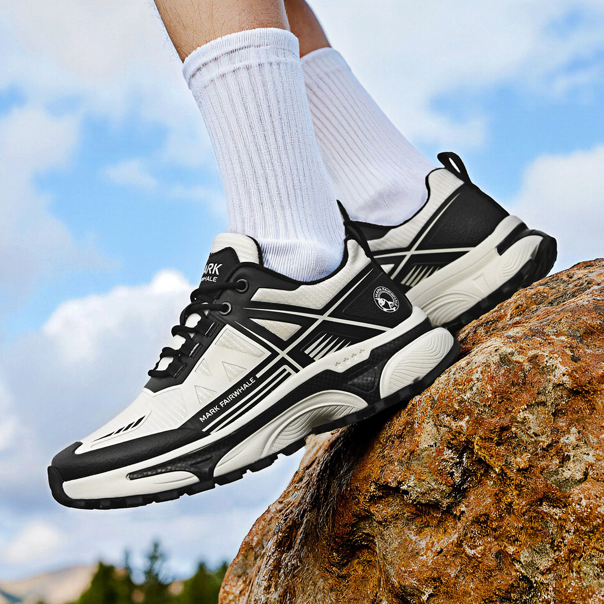 This mens geometric trail sneaker combines waterproof, durable and non-slip protection, shock-absorbing ankle support and sleek style, perfect for both hiking and daily commutes!