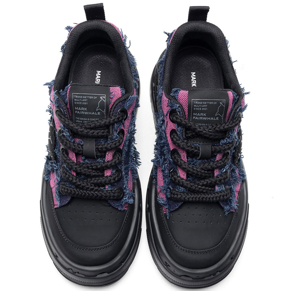 Mens Frayed Edge Patchwork Chunky Sneakers