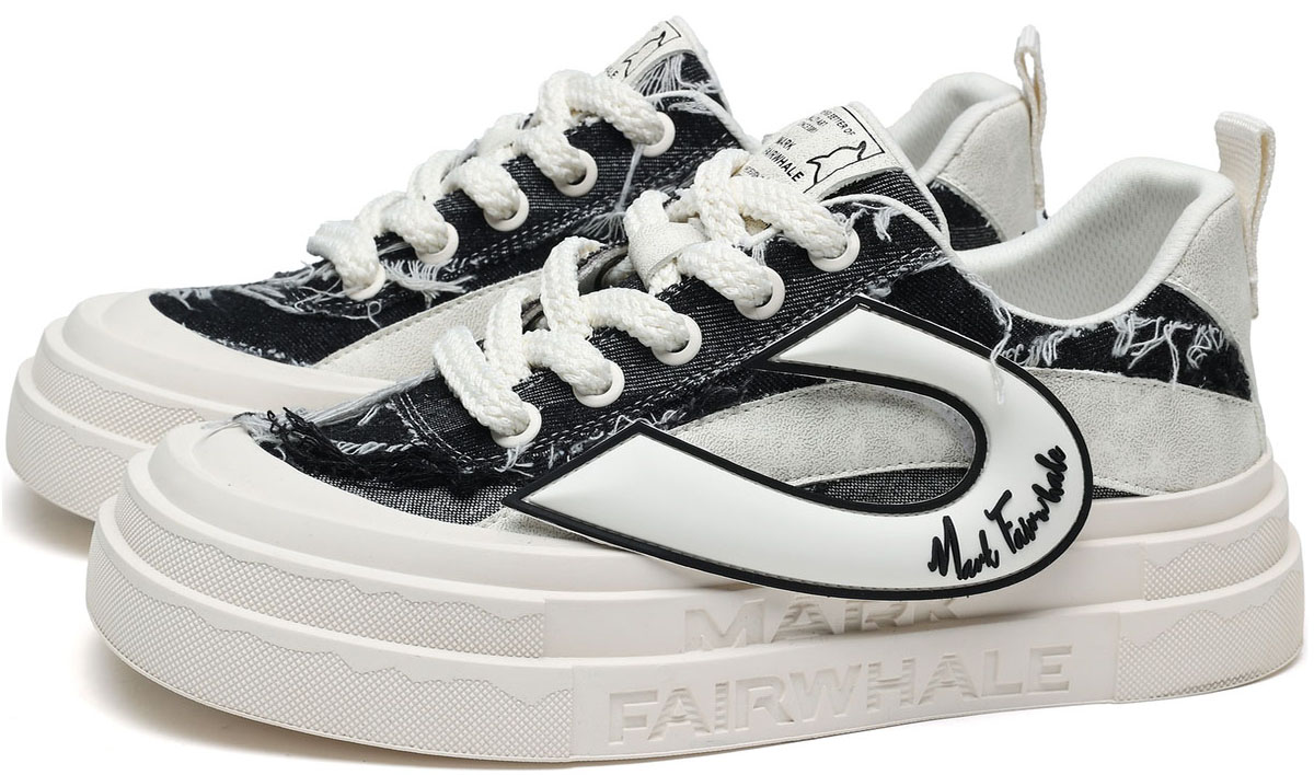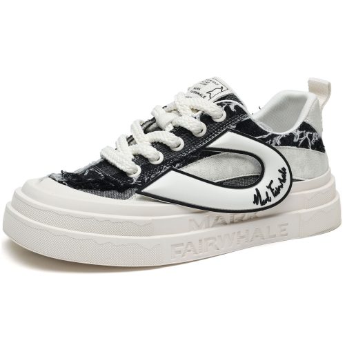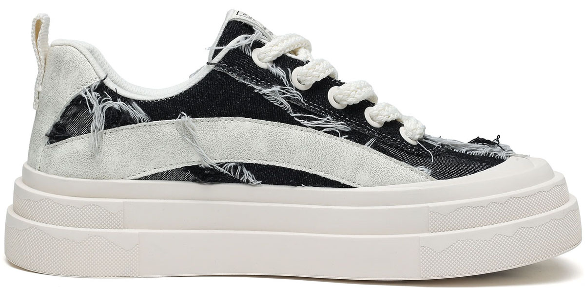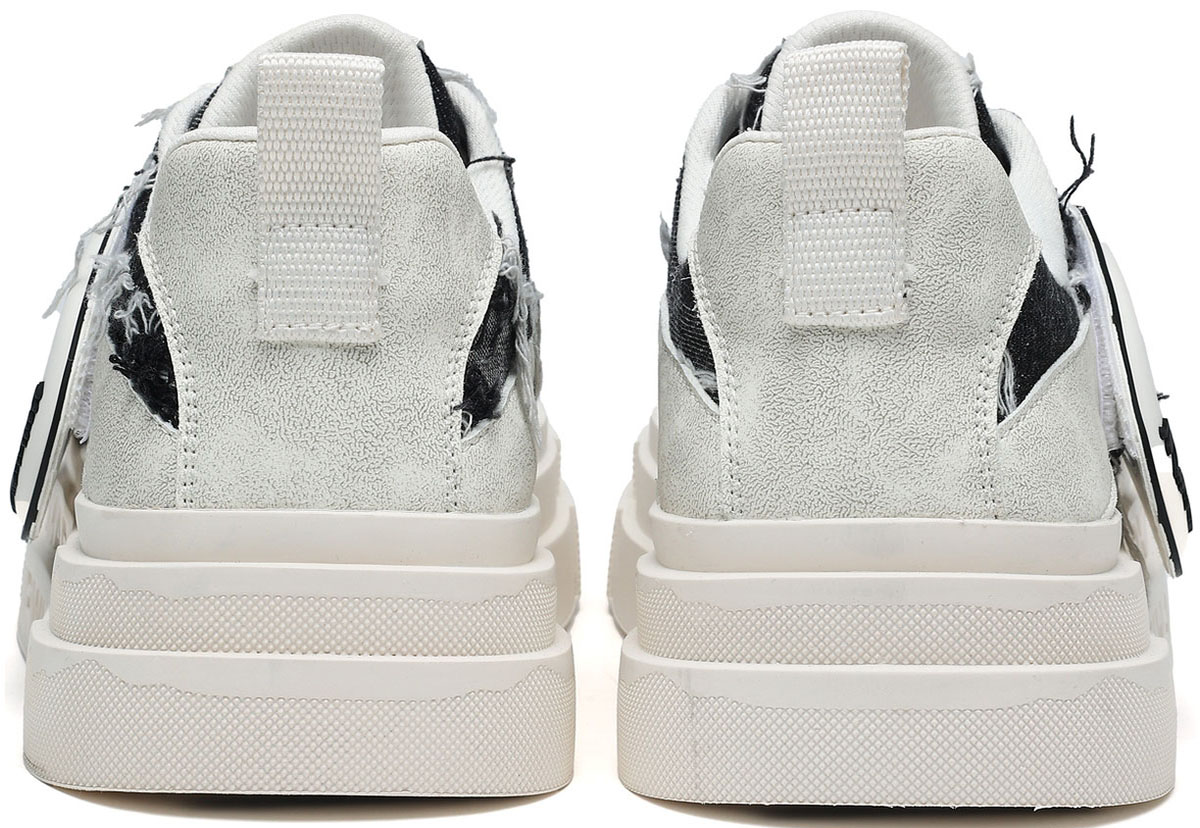 Mens Frayed Edge Skate Shoes with U Shaped Velcro Shoe Decorations