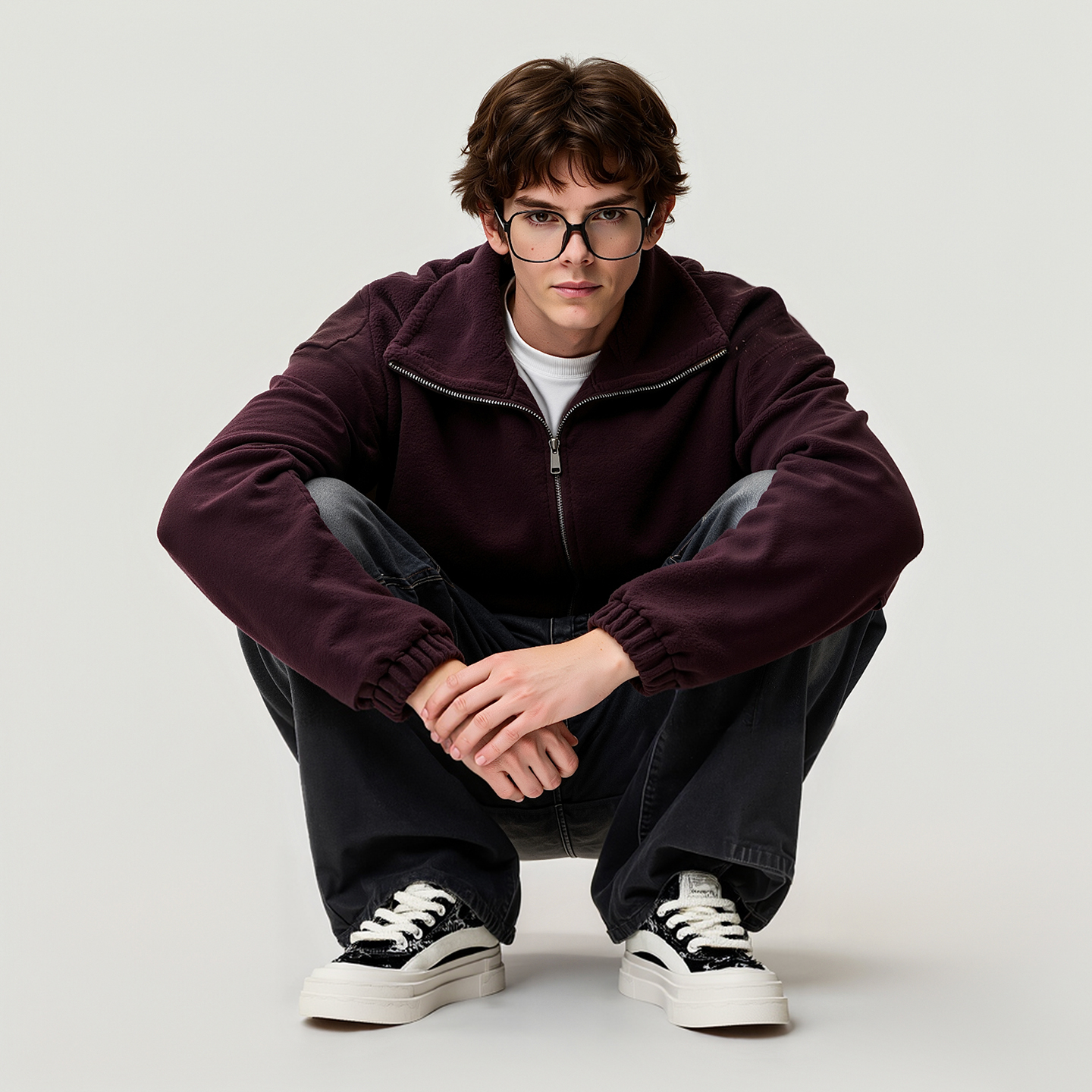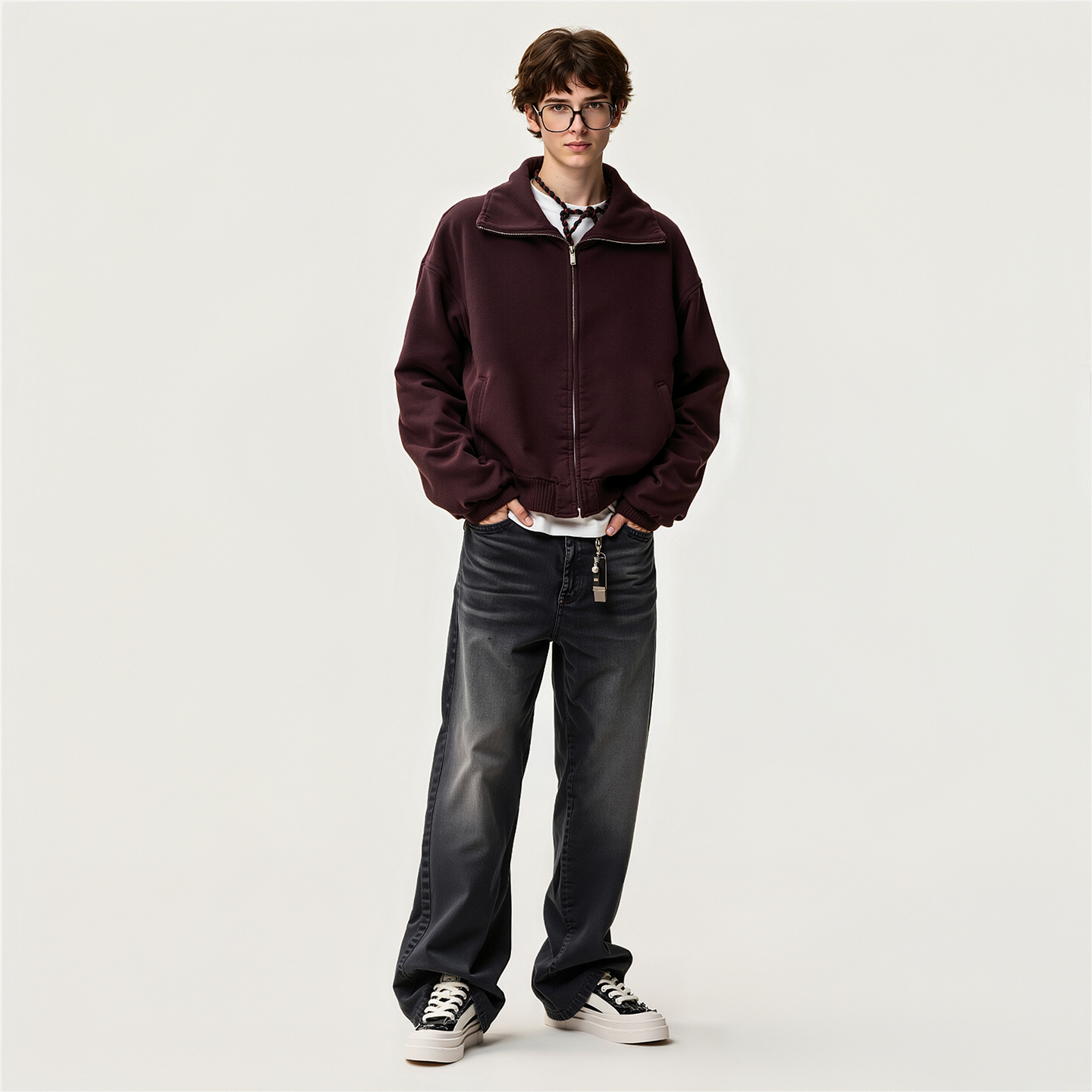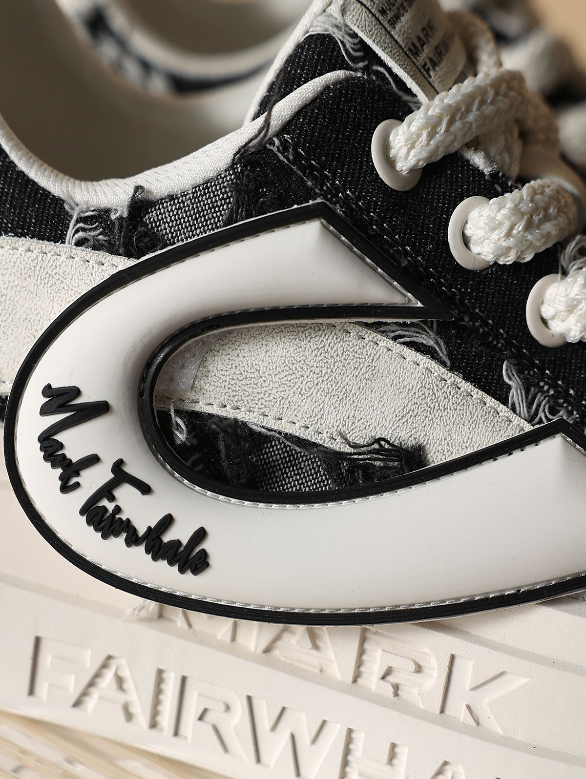 Mens Frayed Edge Skate Shoes with U Shaped Velcro Shoe Decorations