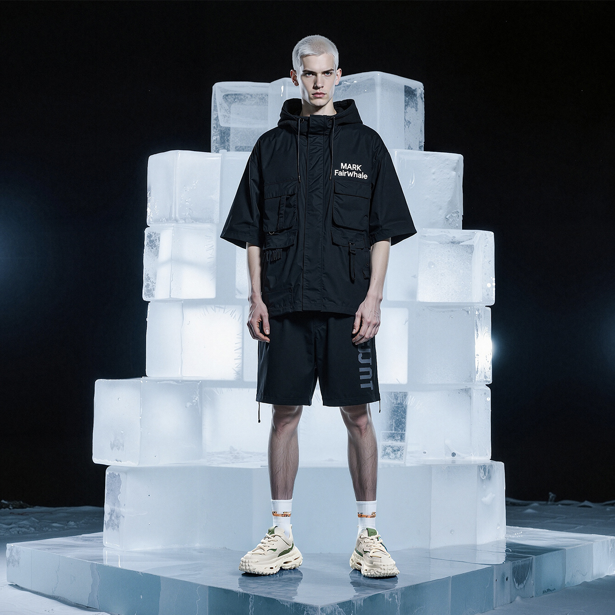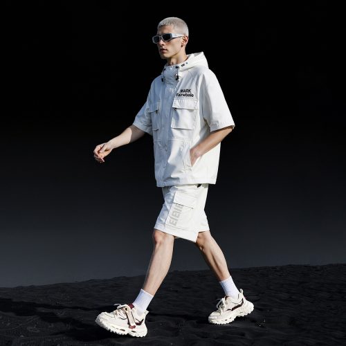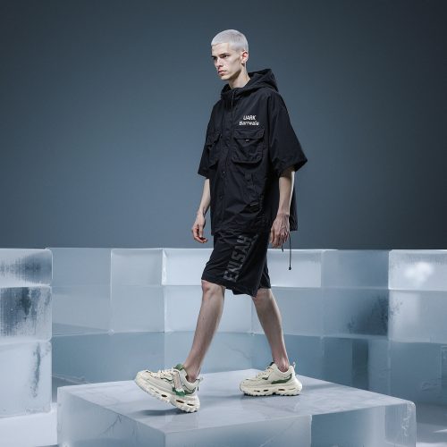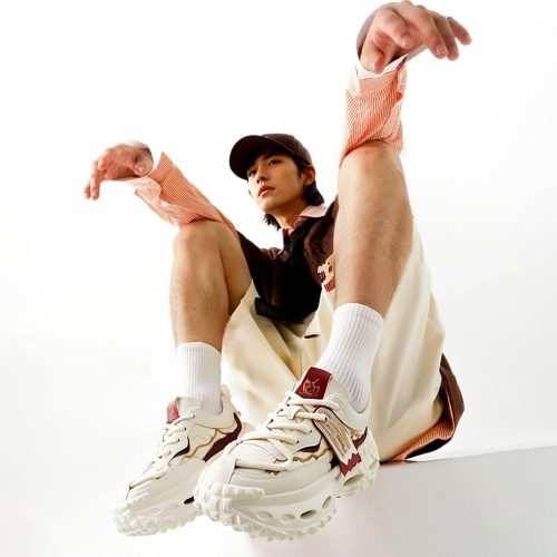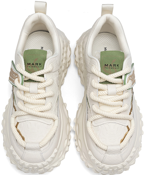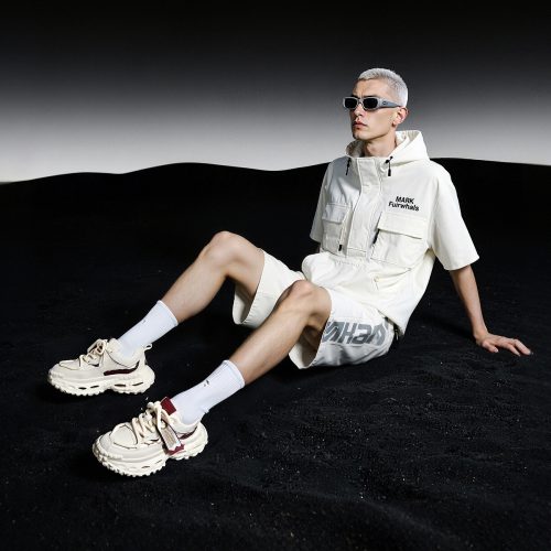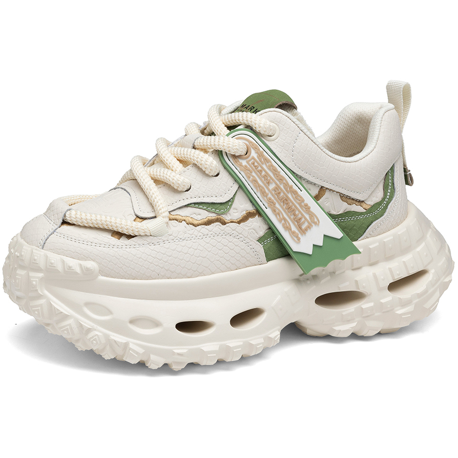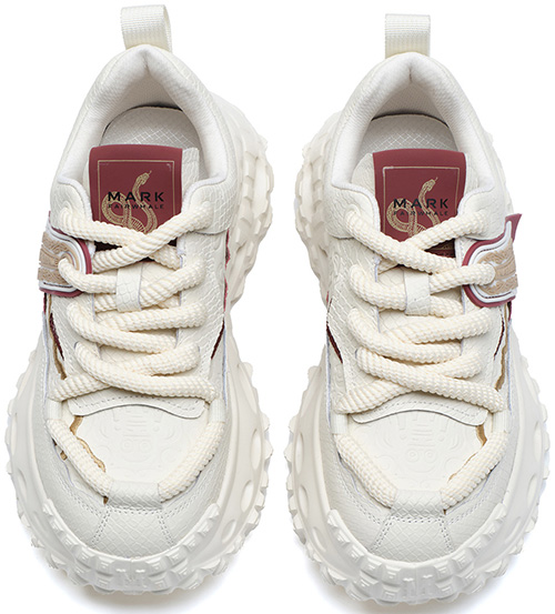 Mens Front Lacing Chunky Sneakers with Rubber Ribbon Ornament and Gold Trim Hollow Sole and Scale Texture