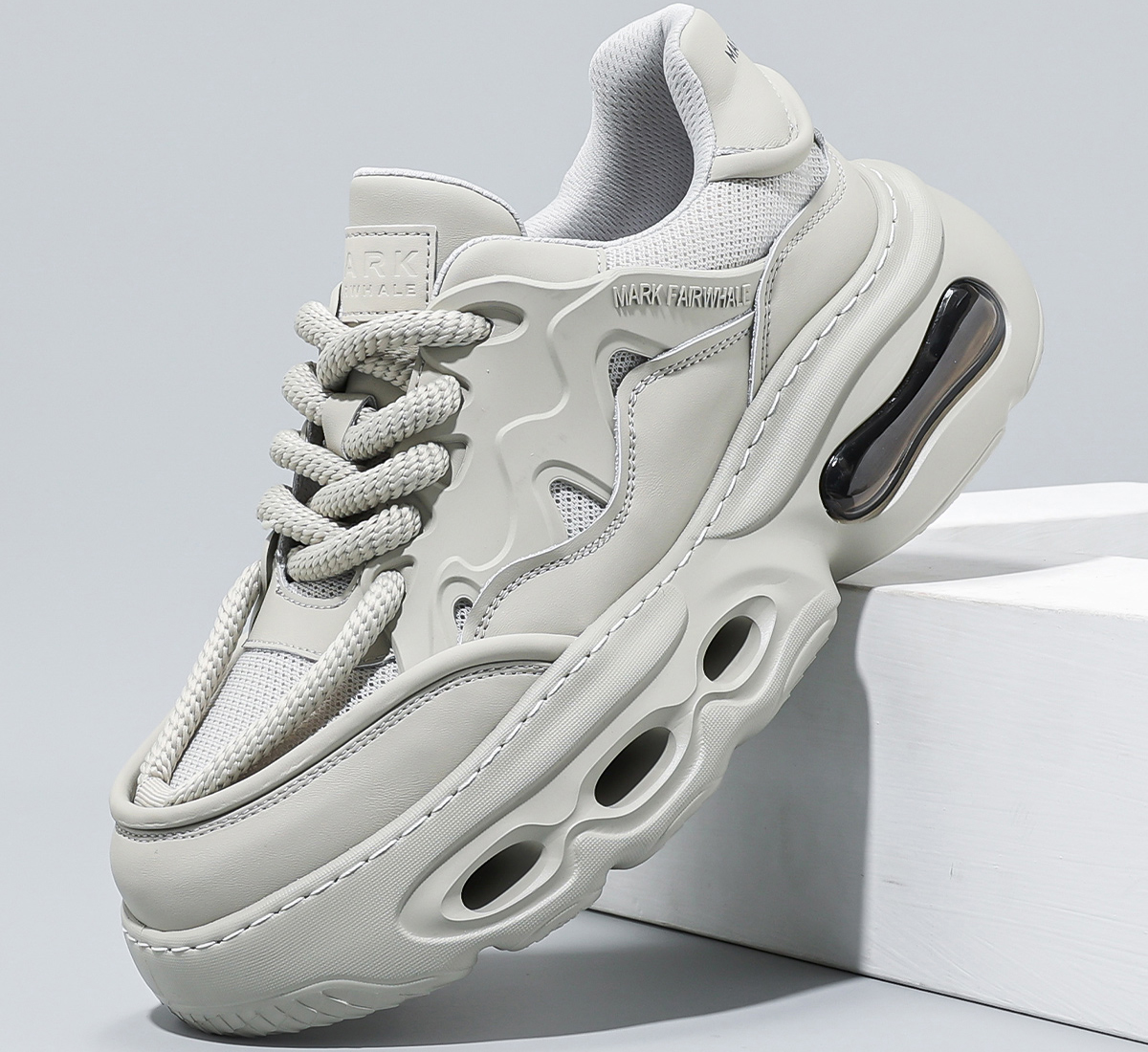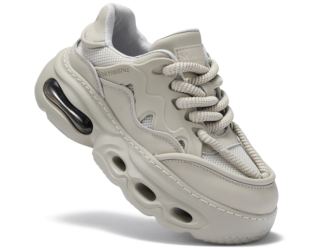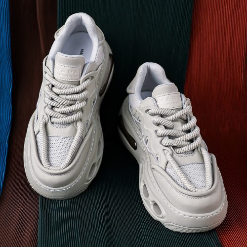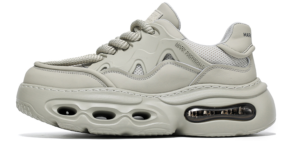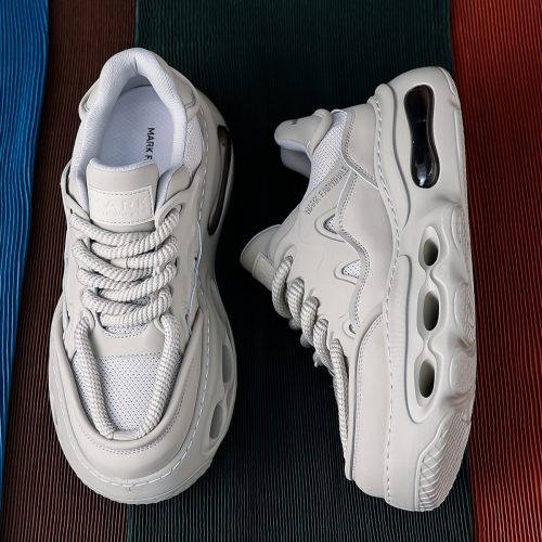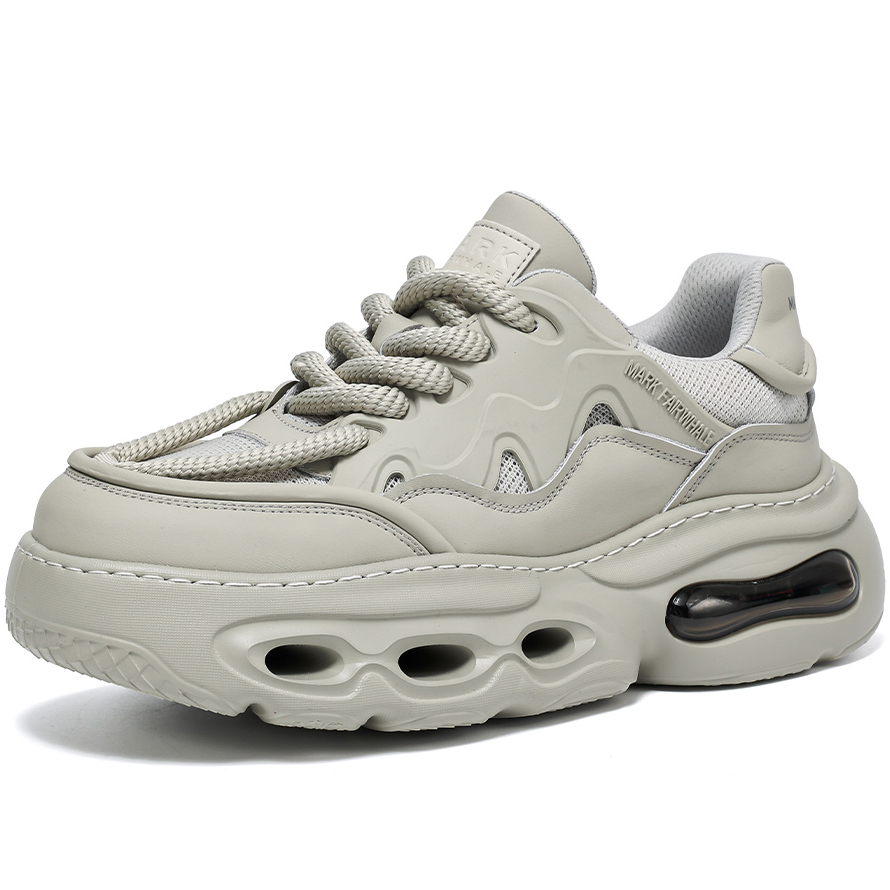 Mens Gray Hollow Sole Air Cushion Mesh Chunky Sneakers