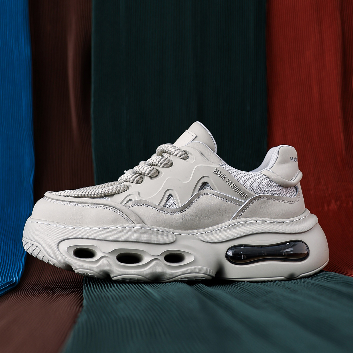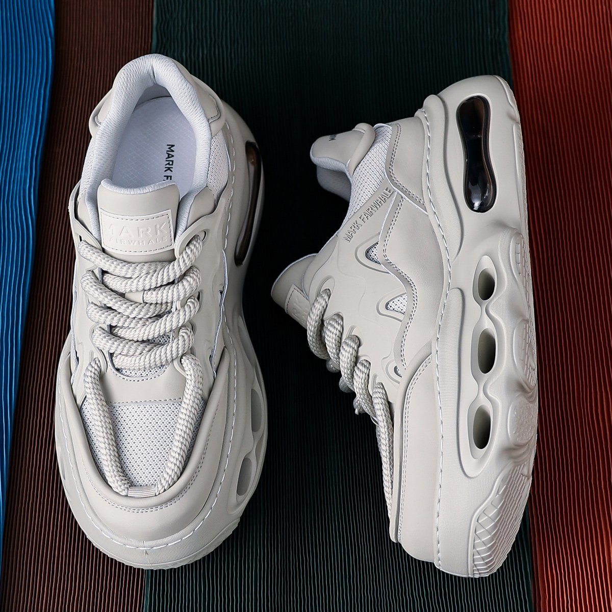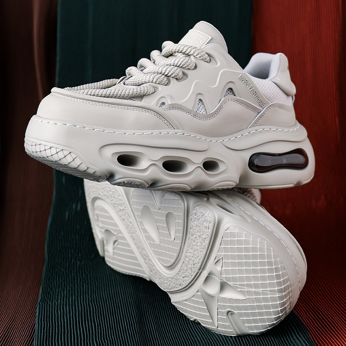Mens Gray Hollow Sole Air Cushion Mesh Chunky Sneakers