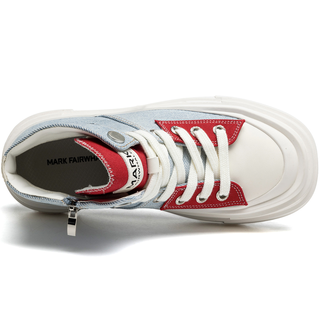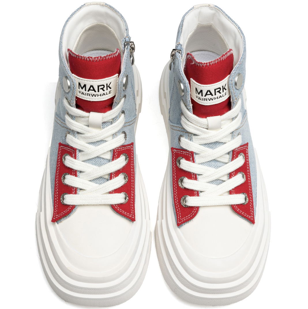 - Design: Color block, laces and side zipper, high top, platform sole.