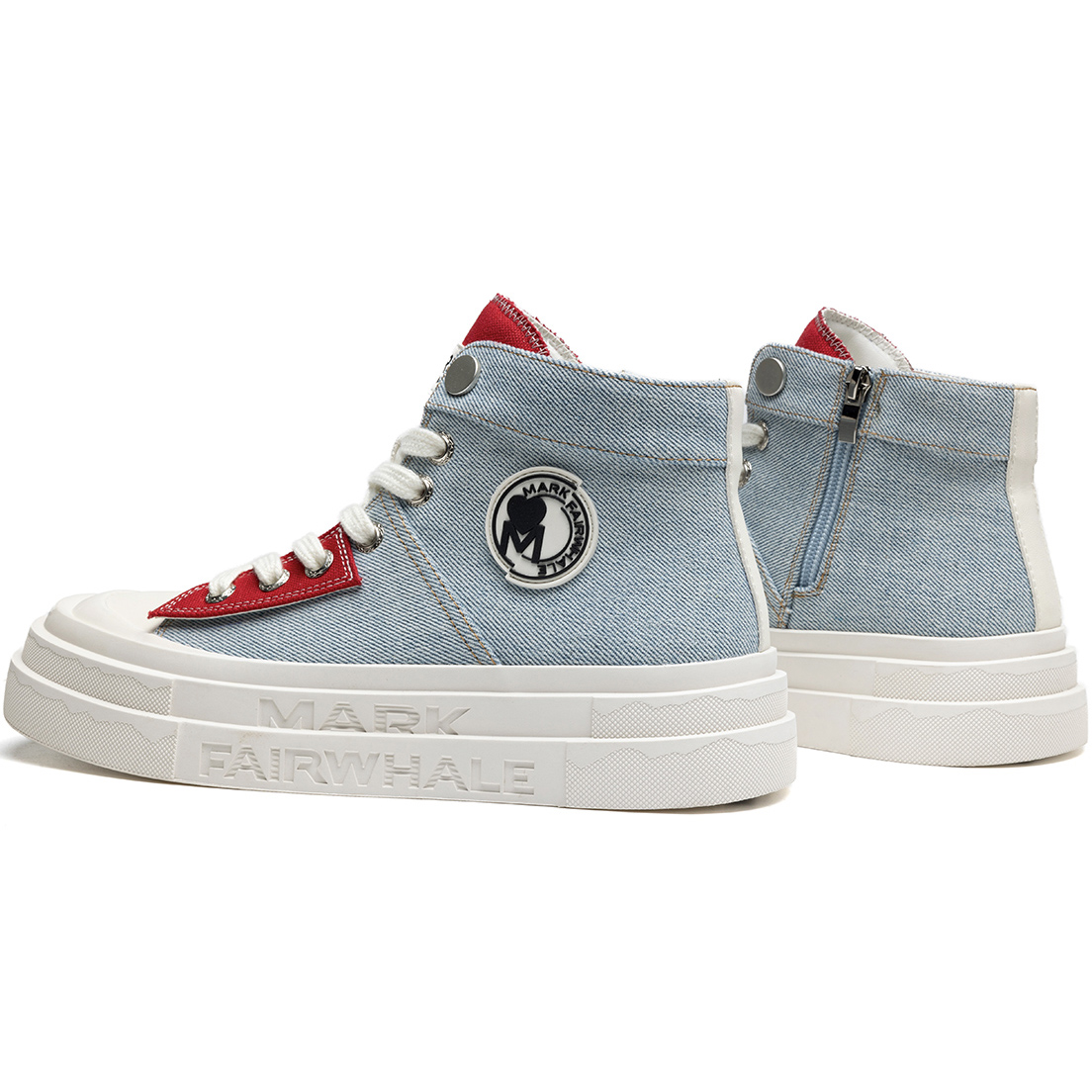 - Material: denim canvas upper, rubber sole, braided laces, metal side zipper.