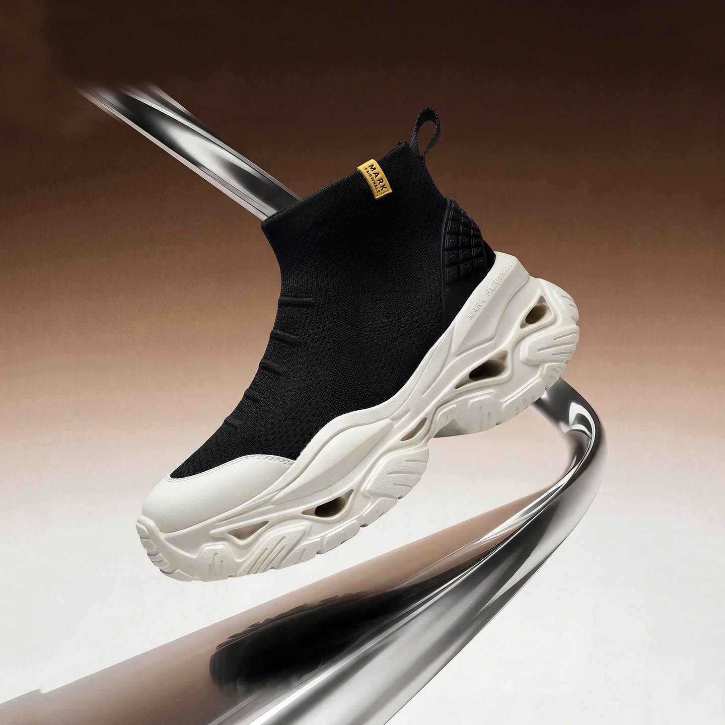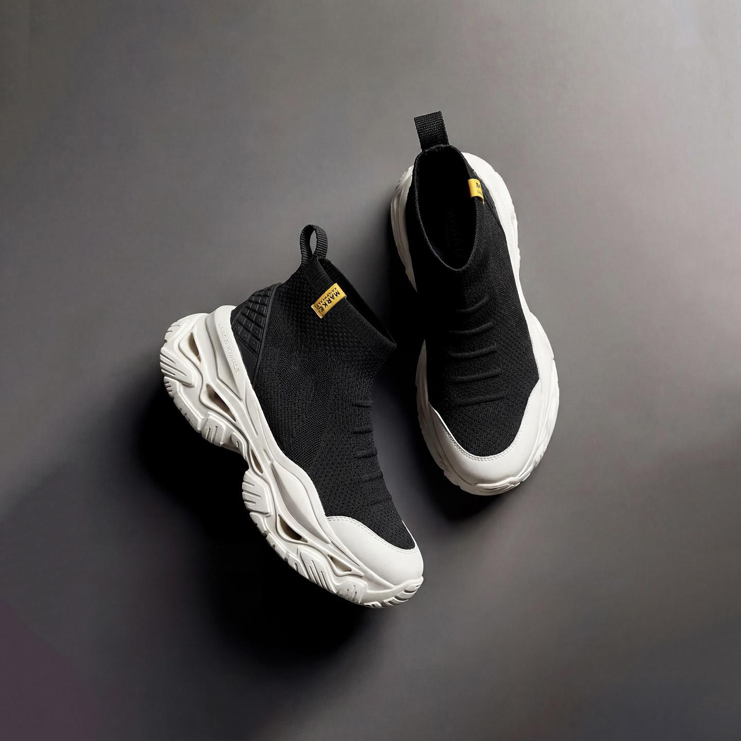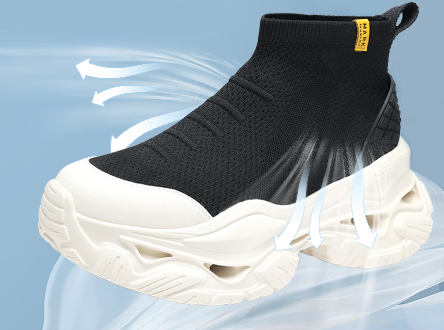 Mens Knit Sock Style High Top Dad Sneakers with Chunky Hollow Out Sole