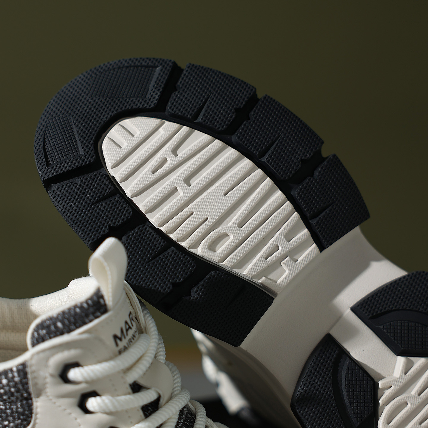The thick, contoured sole enhances stability and shock absorption while offering a visible yet refined 5.5 cm height boost, improving stance and confidence without an exaggerated look.