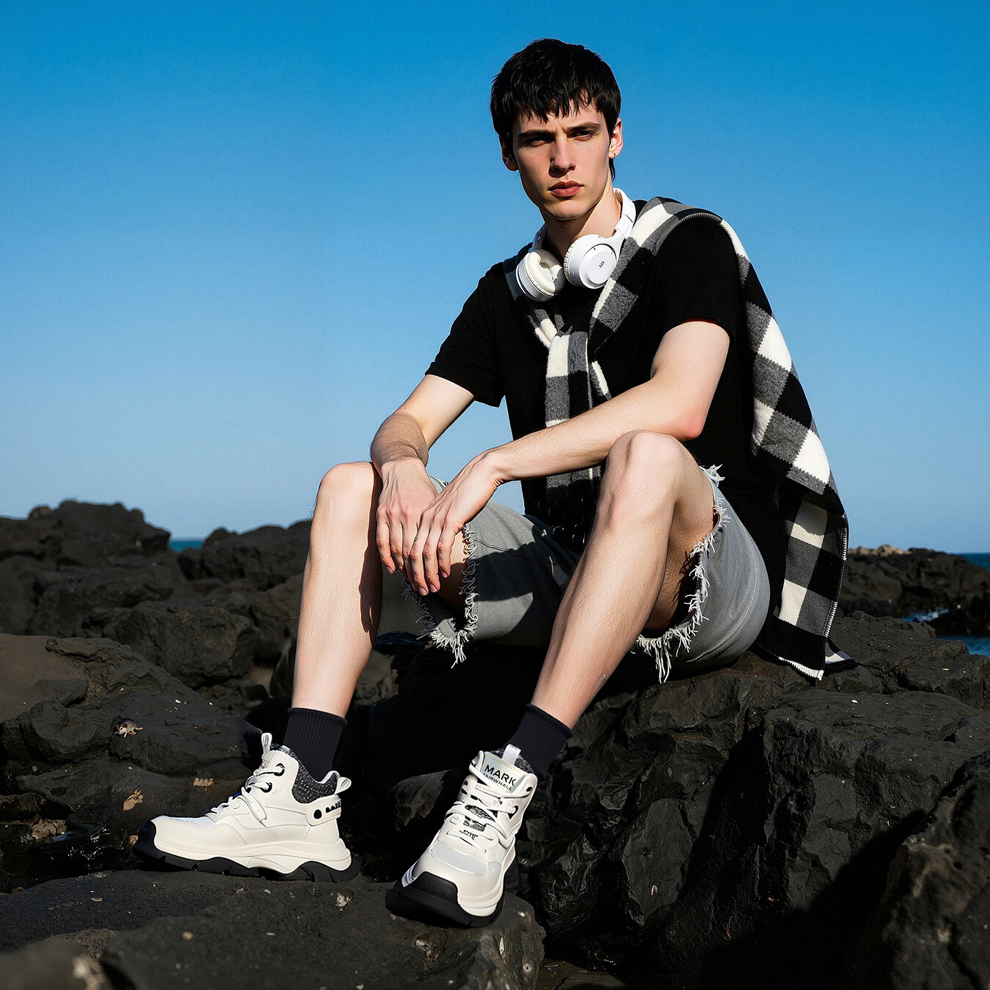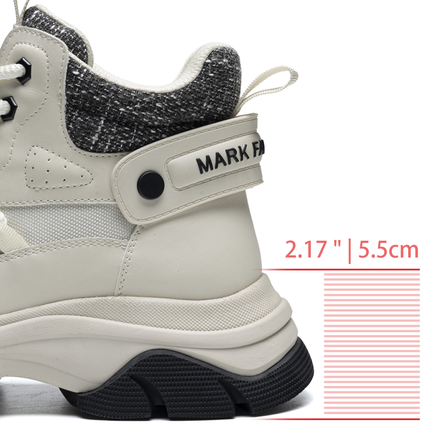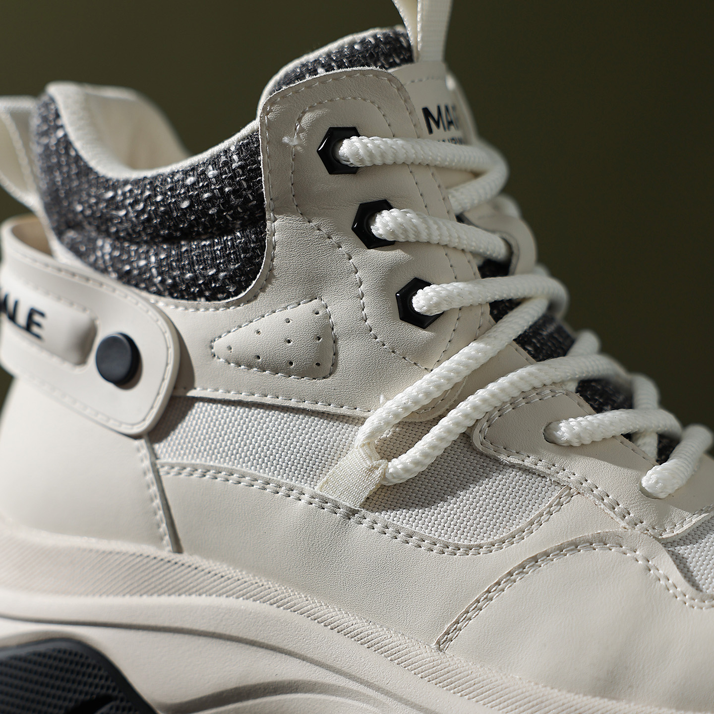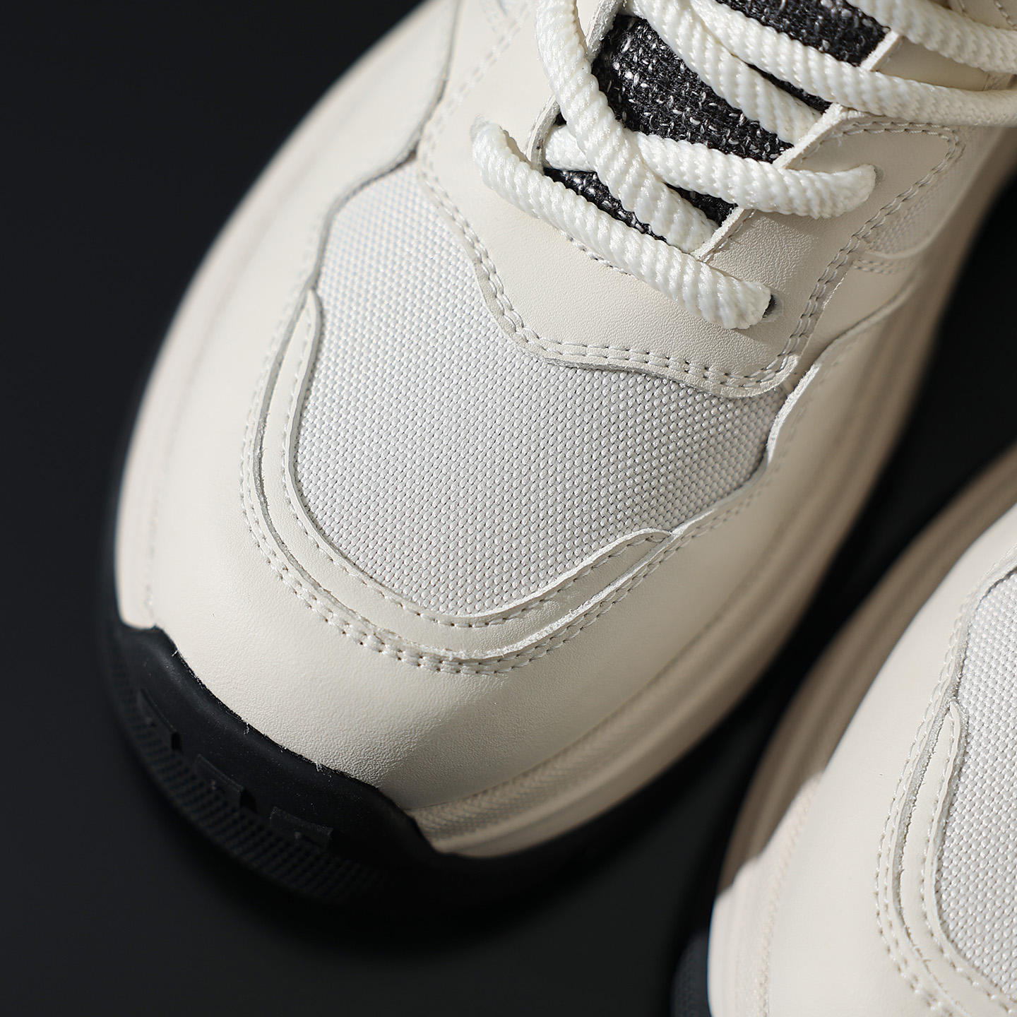 The sculpted chunky sole provides stable support, cushioning, and a natural 2.17”(5.5 cm) height lift, enhancing your posture and presence without looking bulky. The multi-material high-top upper adds subtle texture and depth, delivering a premium look that feels both modern and refined.