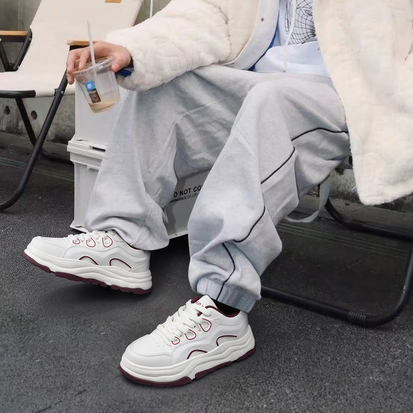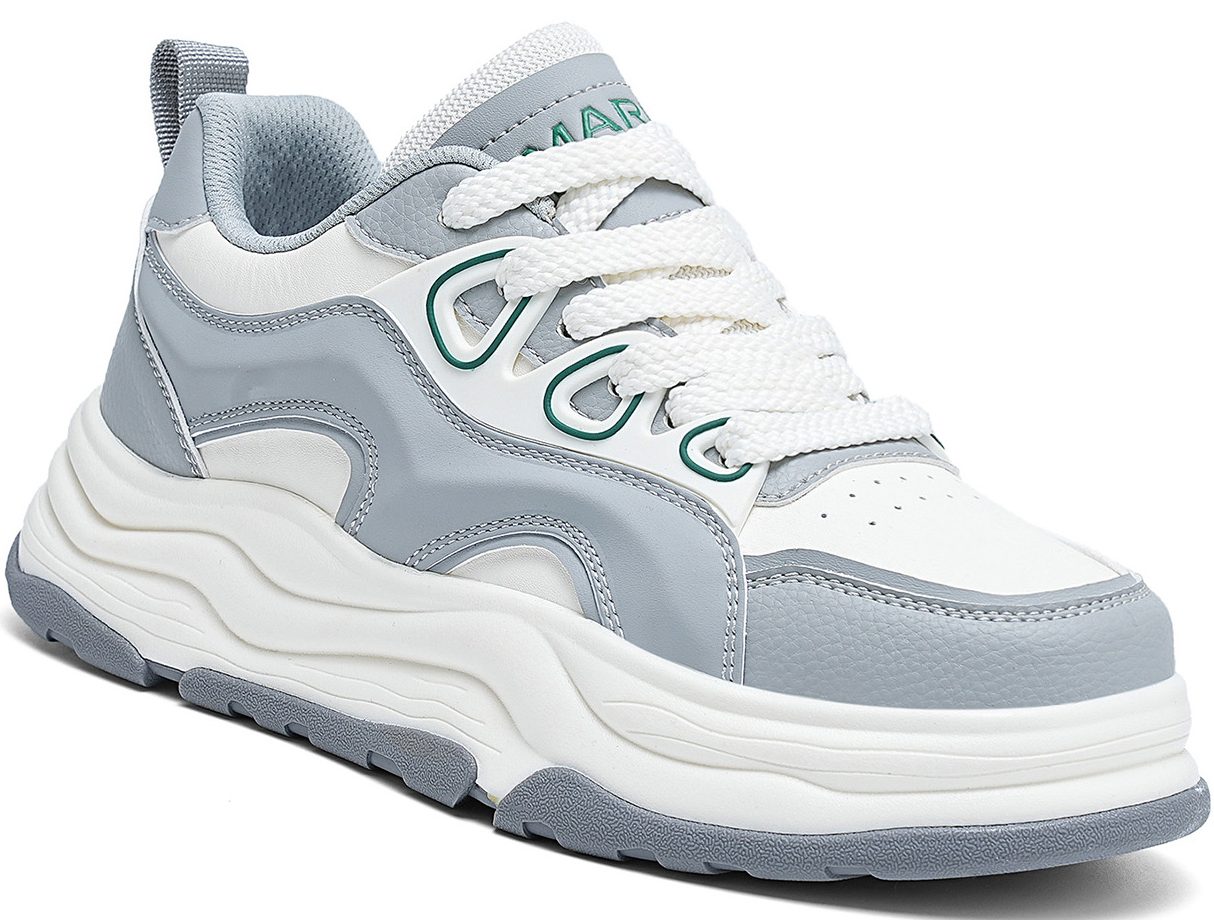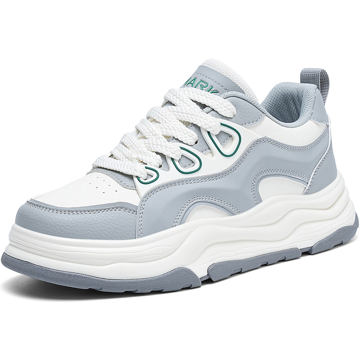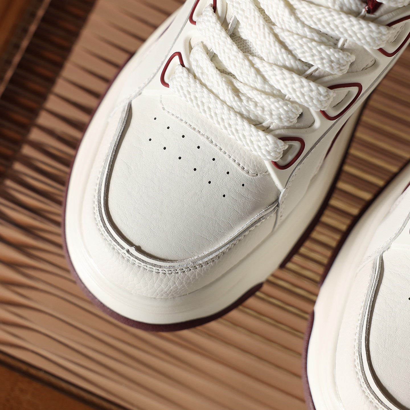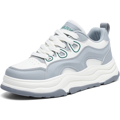 Mens Lace Up Leather Platform Skate Shoes with Contrast Curved Contour Stitching