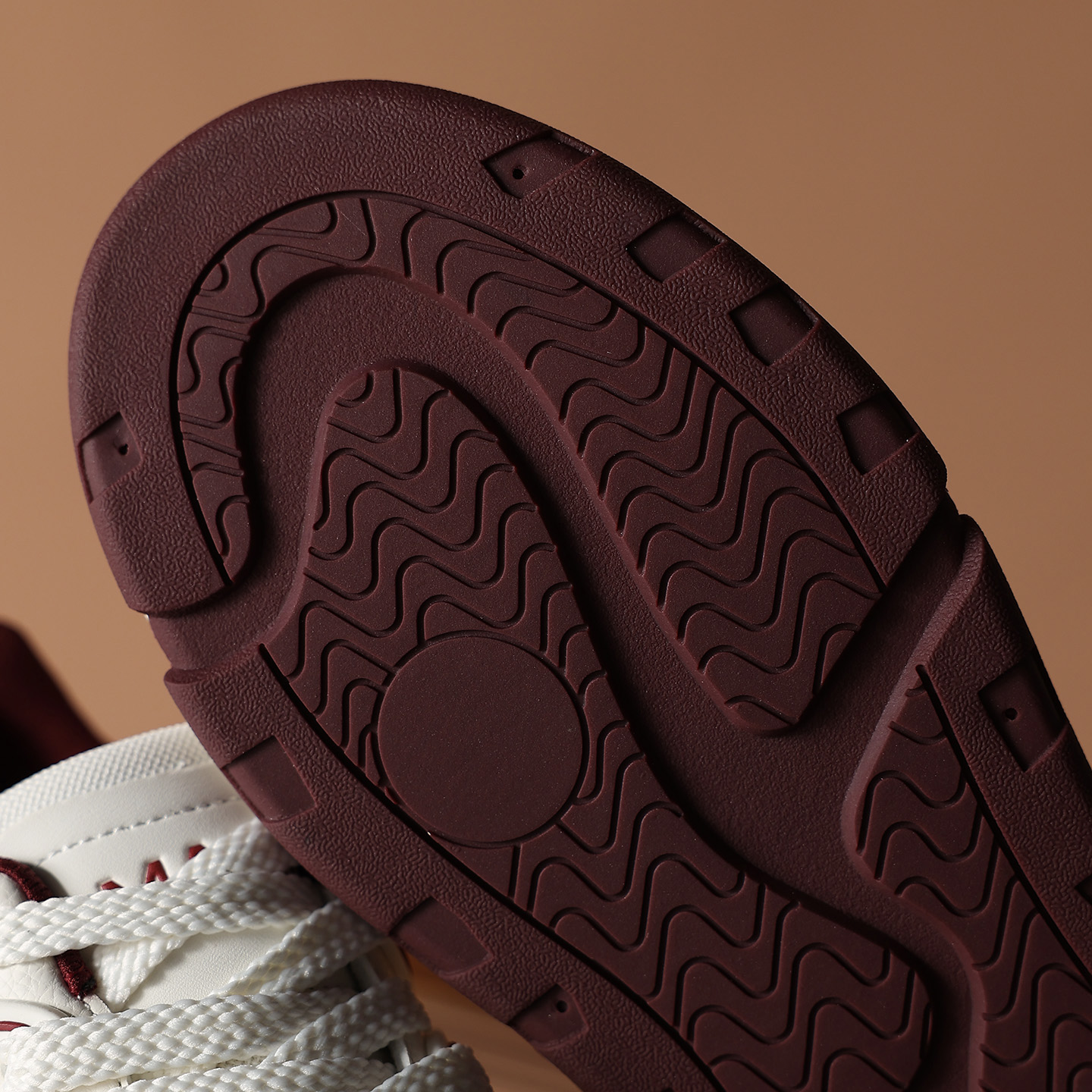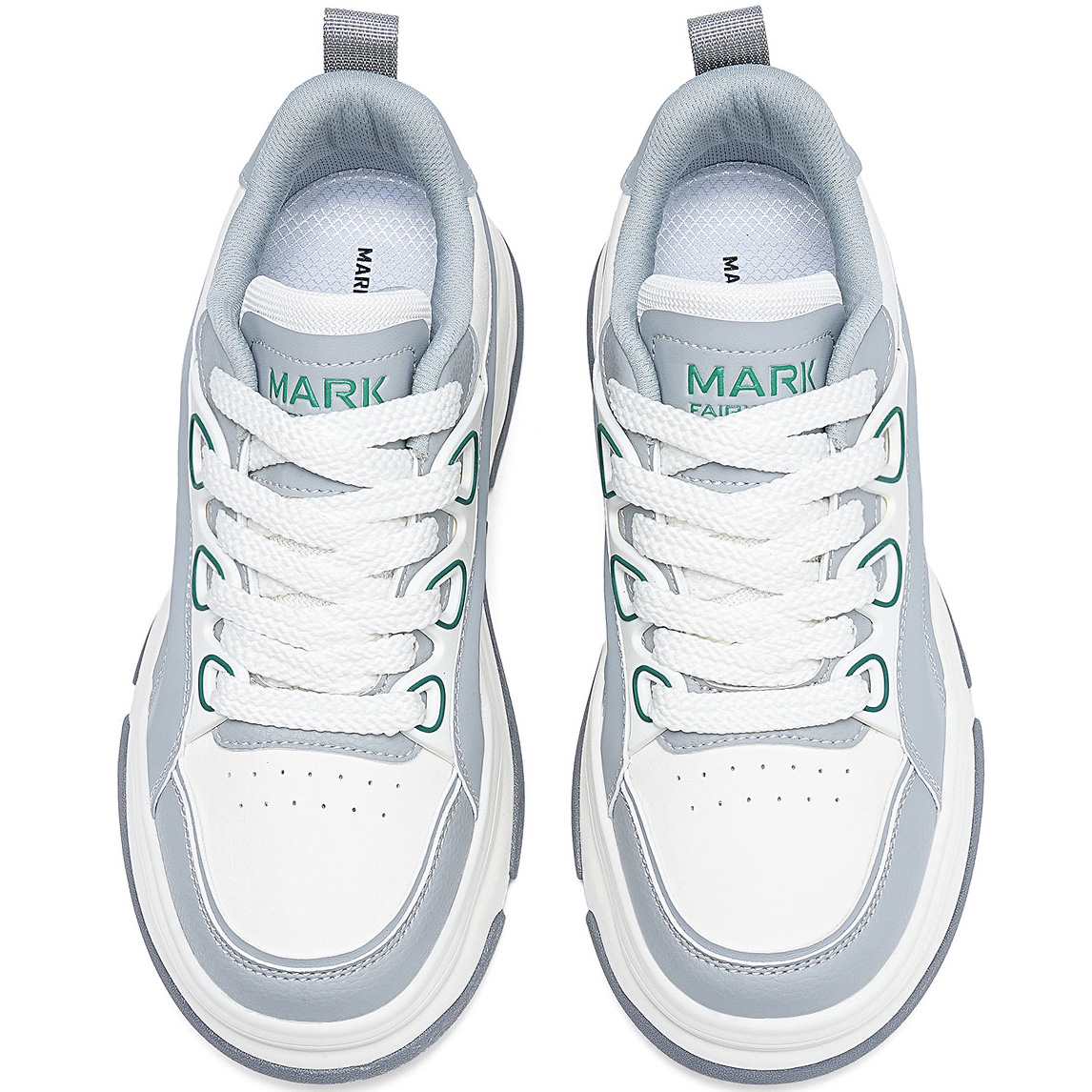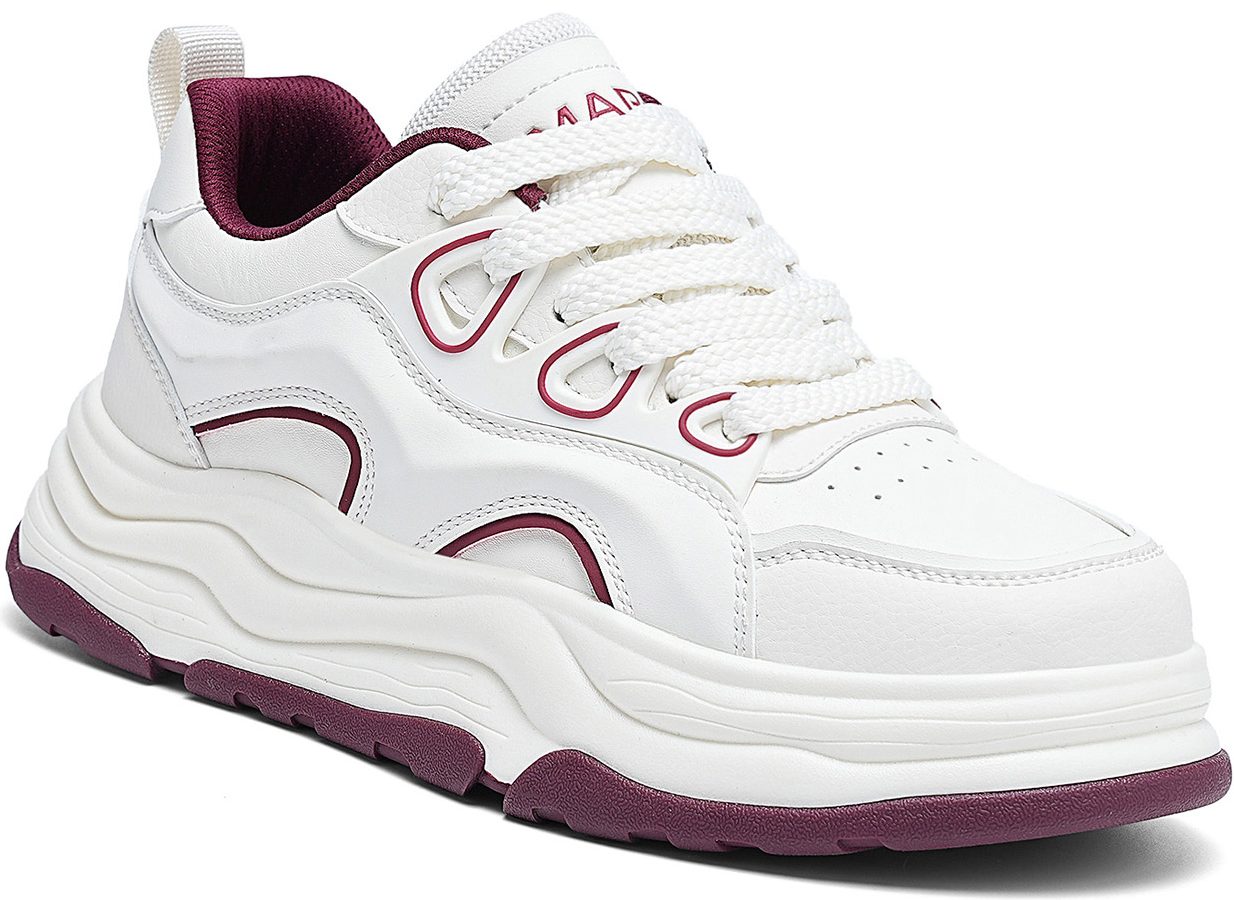 Mens Lace Up Leather Platform Skate Shoes with Contrast Curved Contour Stitching