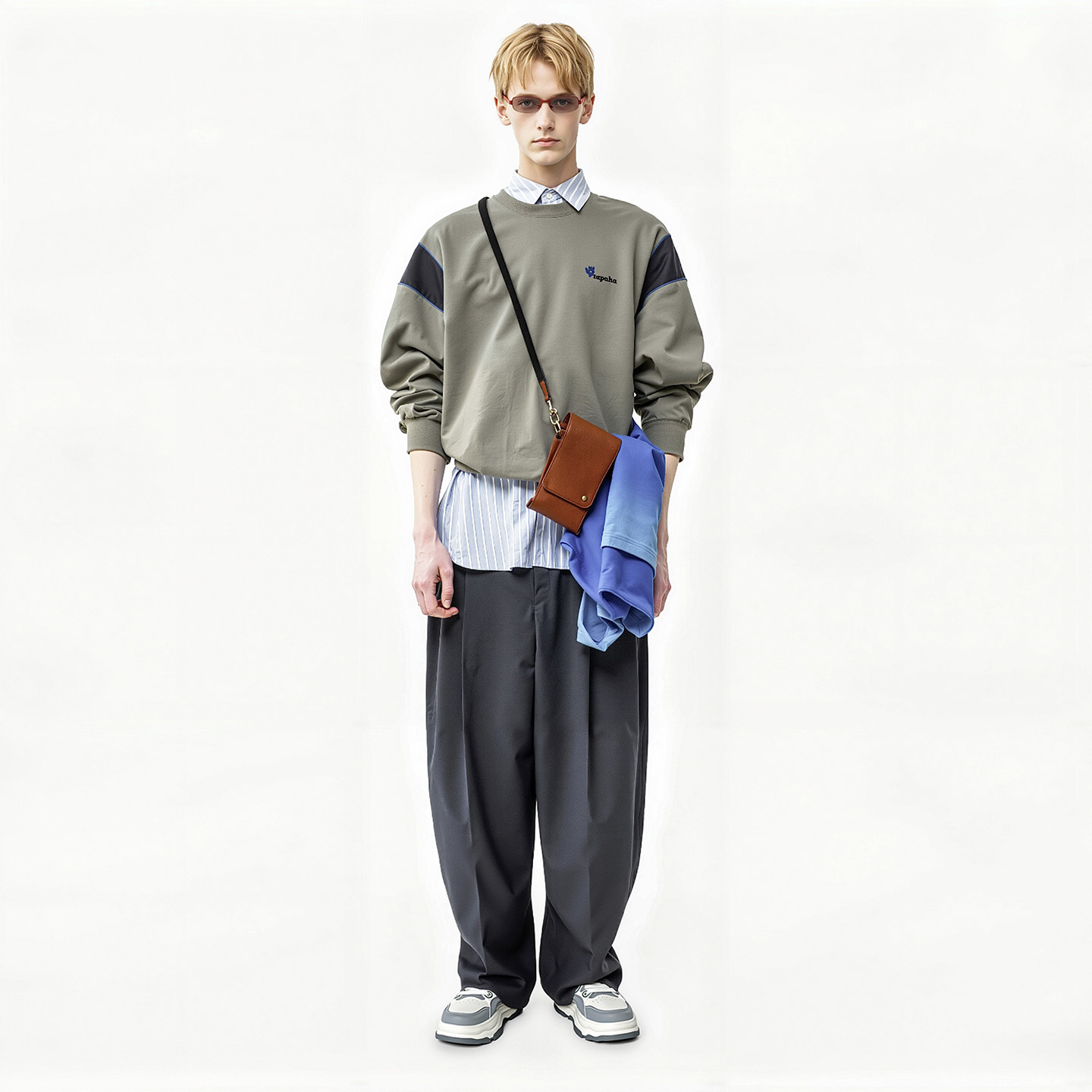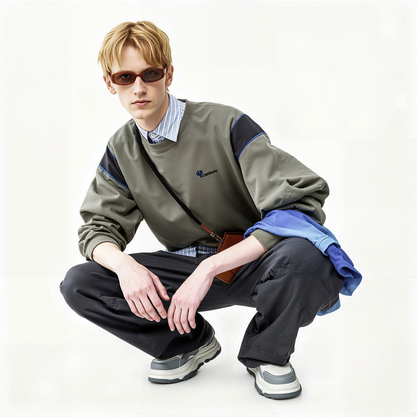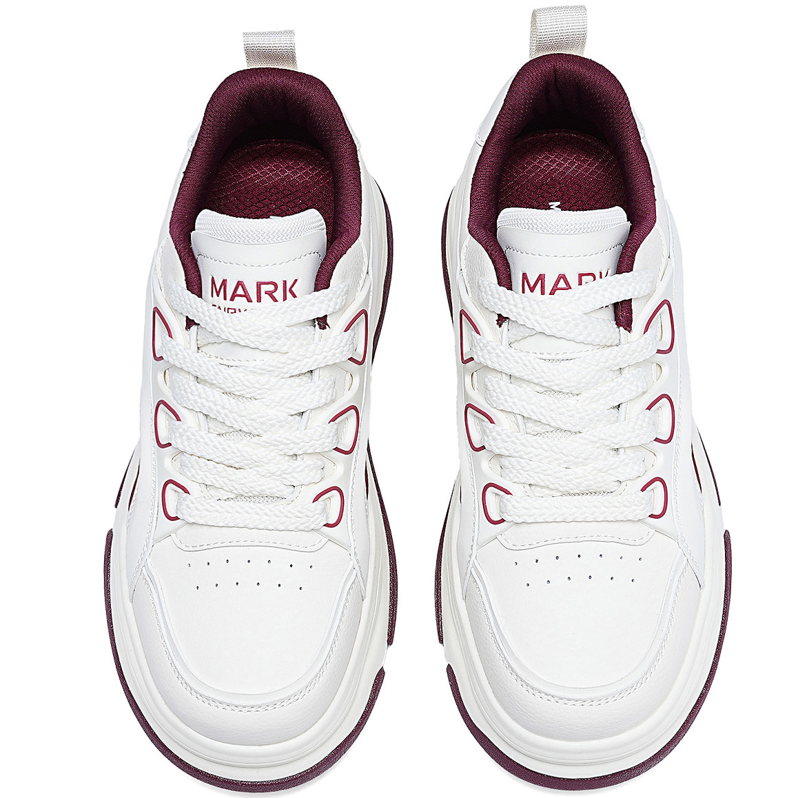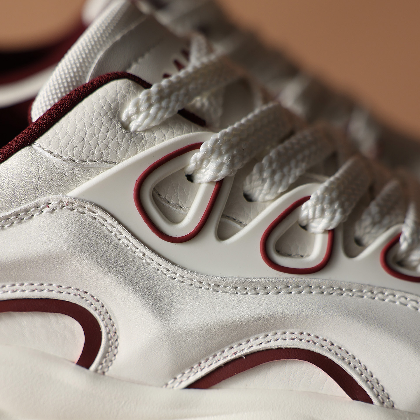 Mens Lace Up Leather Platform Skate Shoes with Contrast Curved Contour Stitching