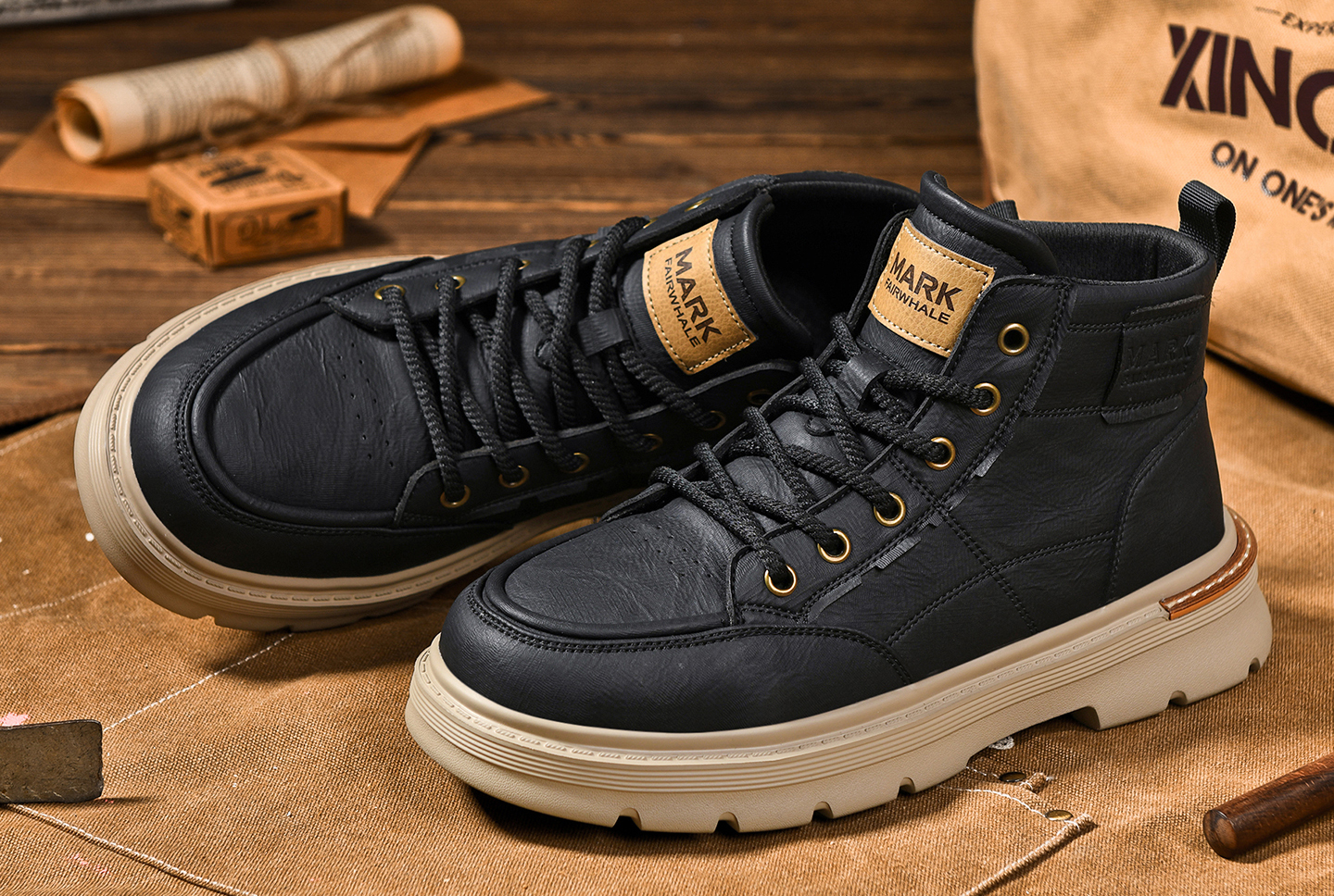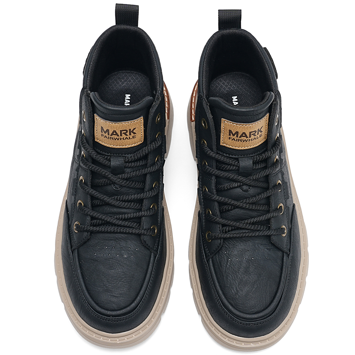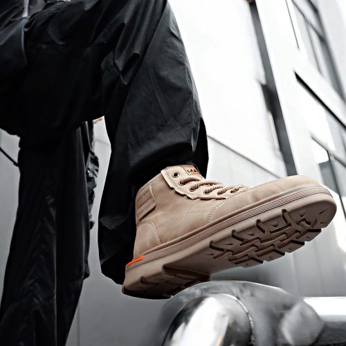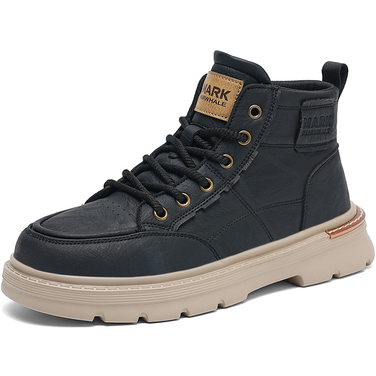 Mens Lace Up Moc Toe Black Leather Boots with Lugged Sole