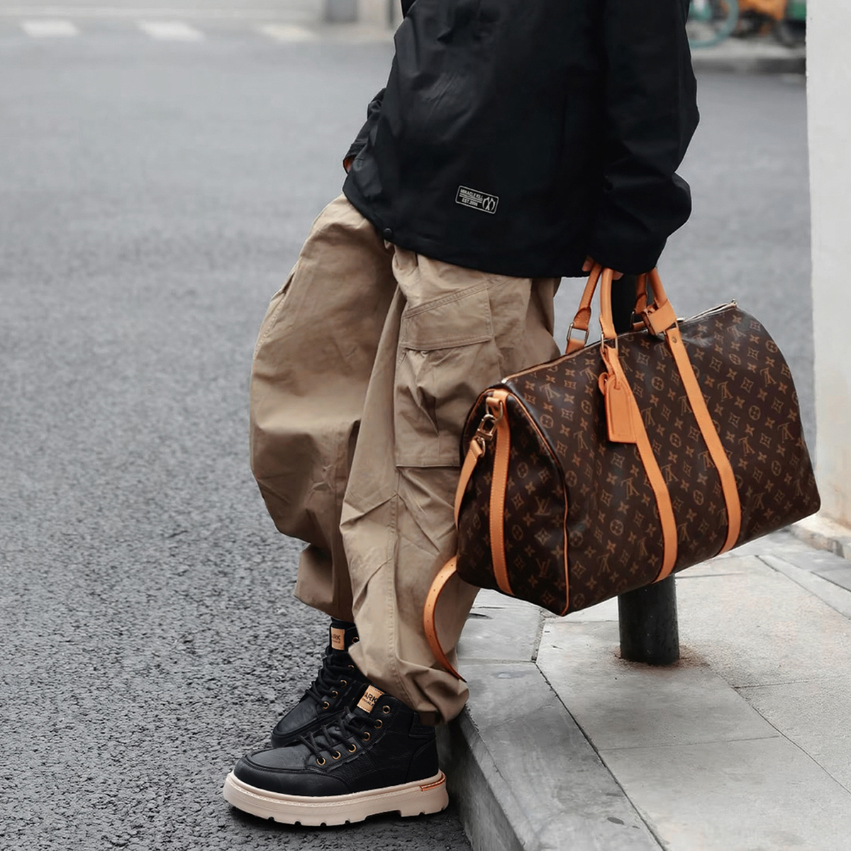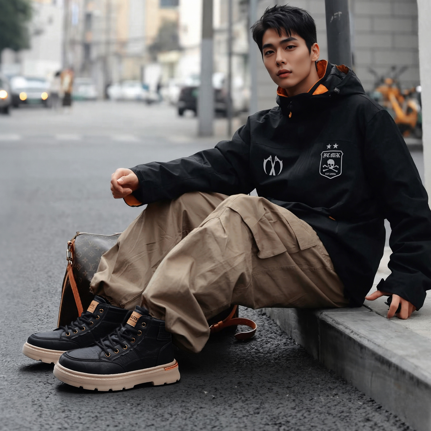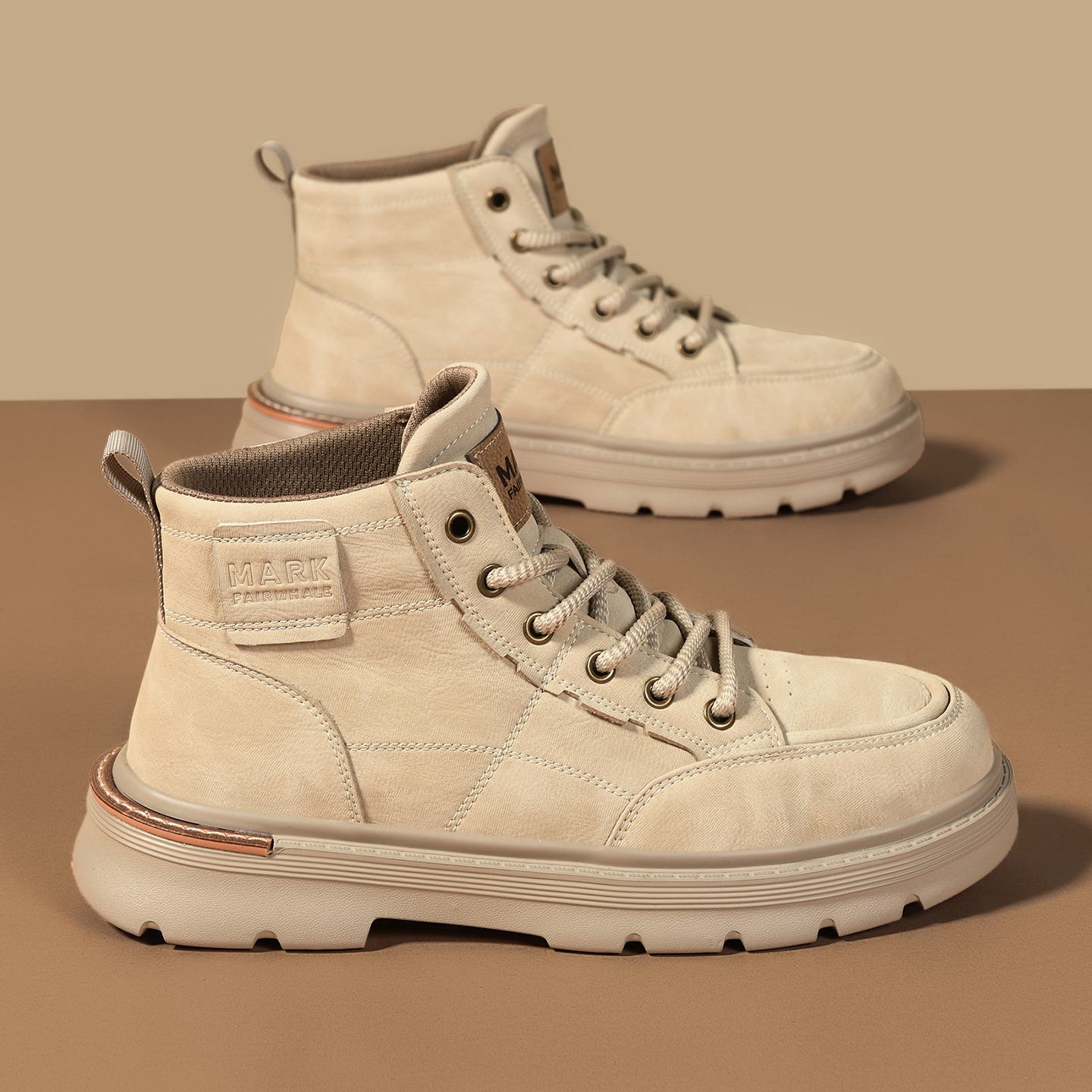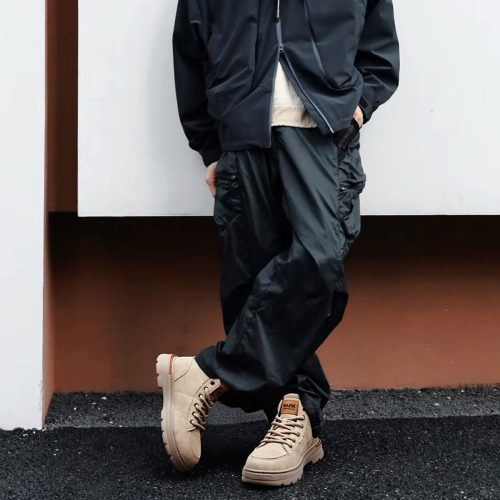 Mens Lace Up Moc Toe Black Leather Boots with Lugged Sole