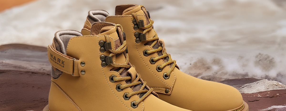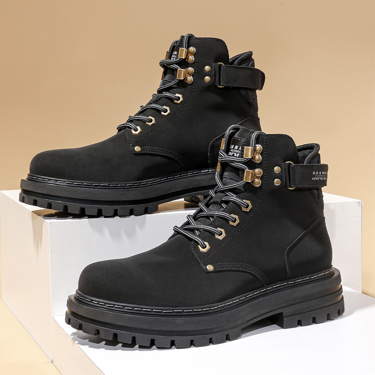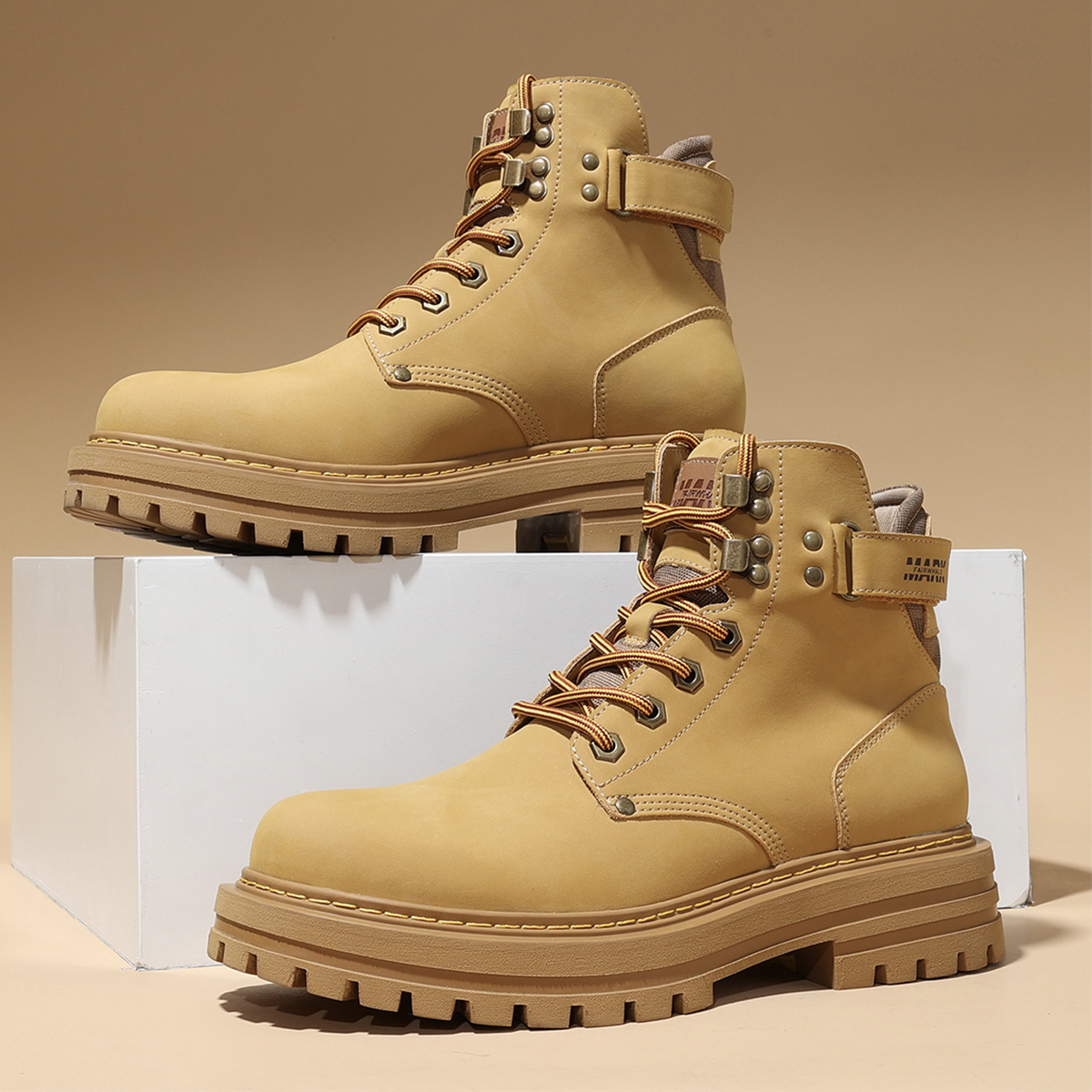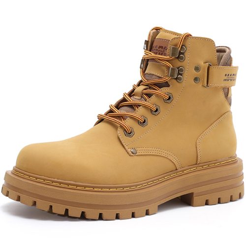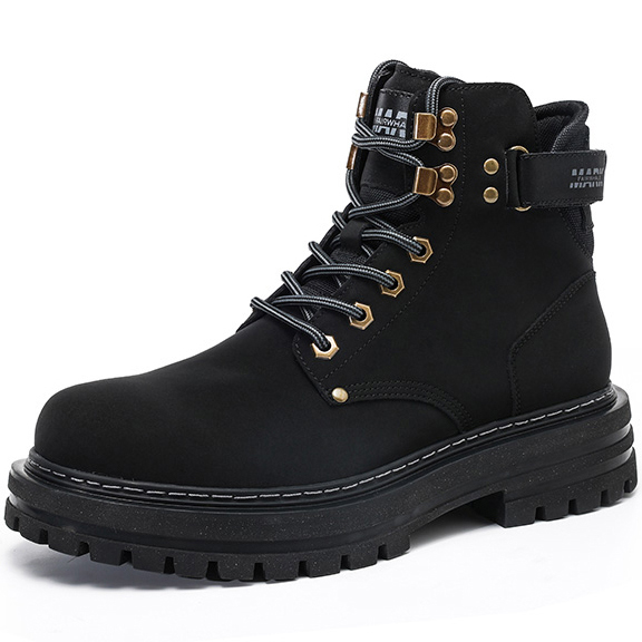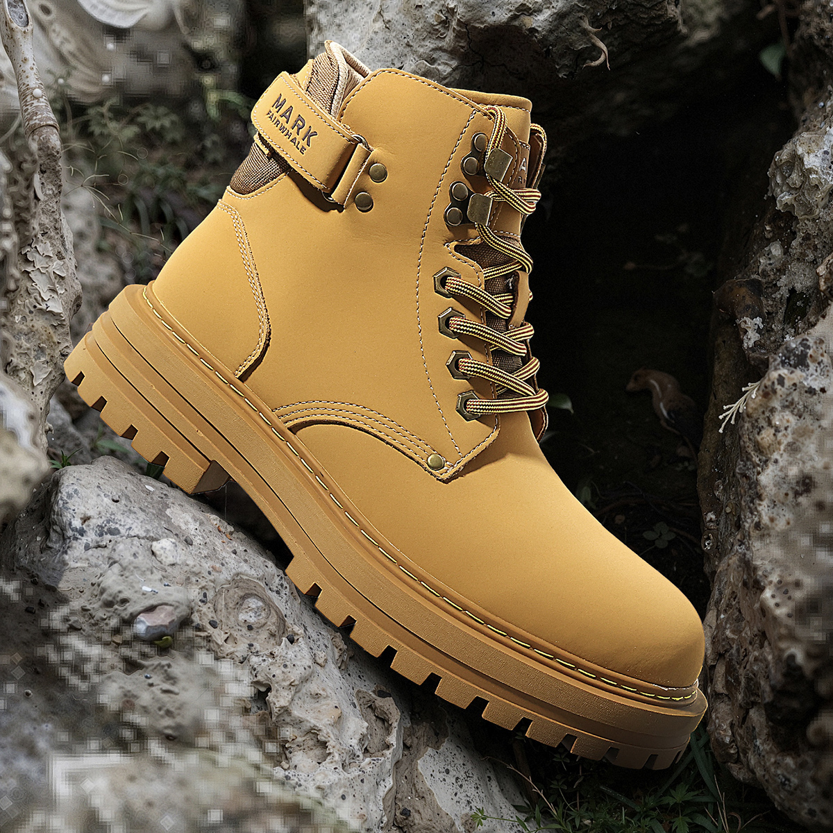 Mens Lace Up Work Boots with Back Ankle Strap Velcro