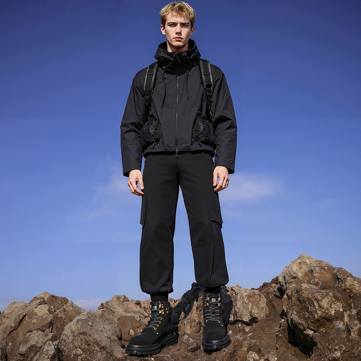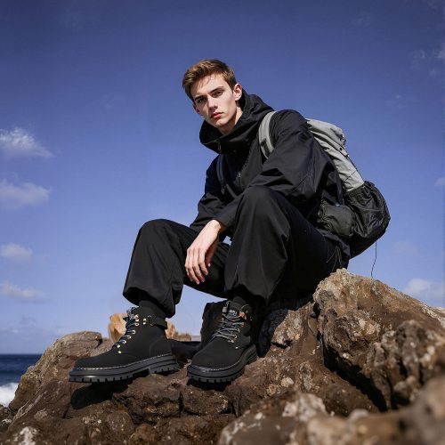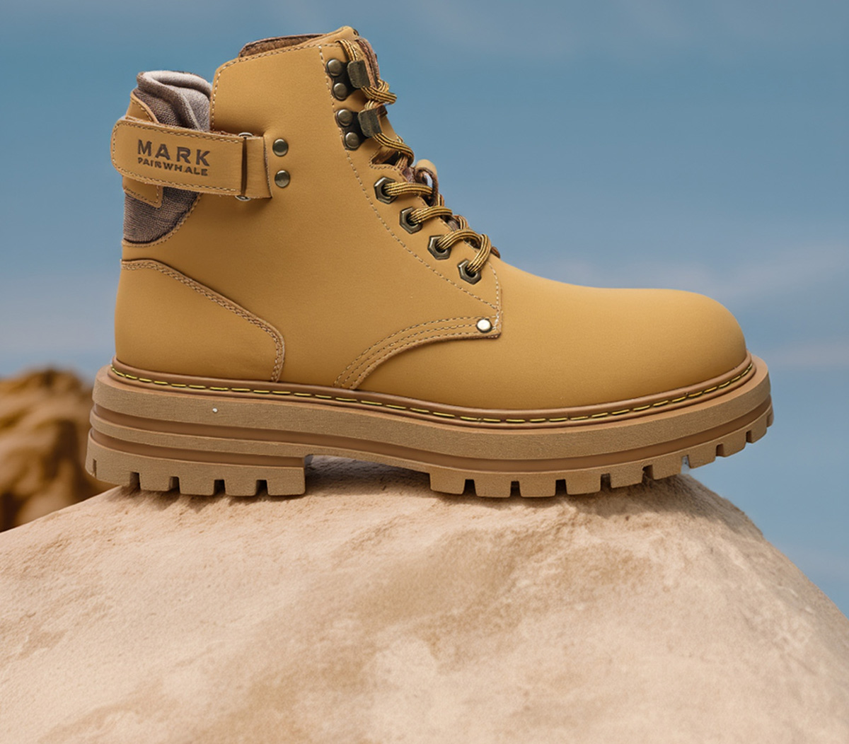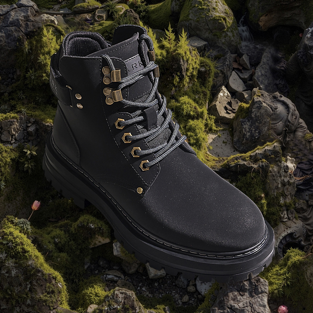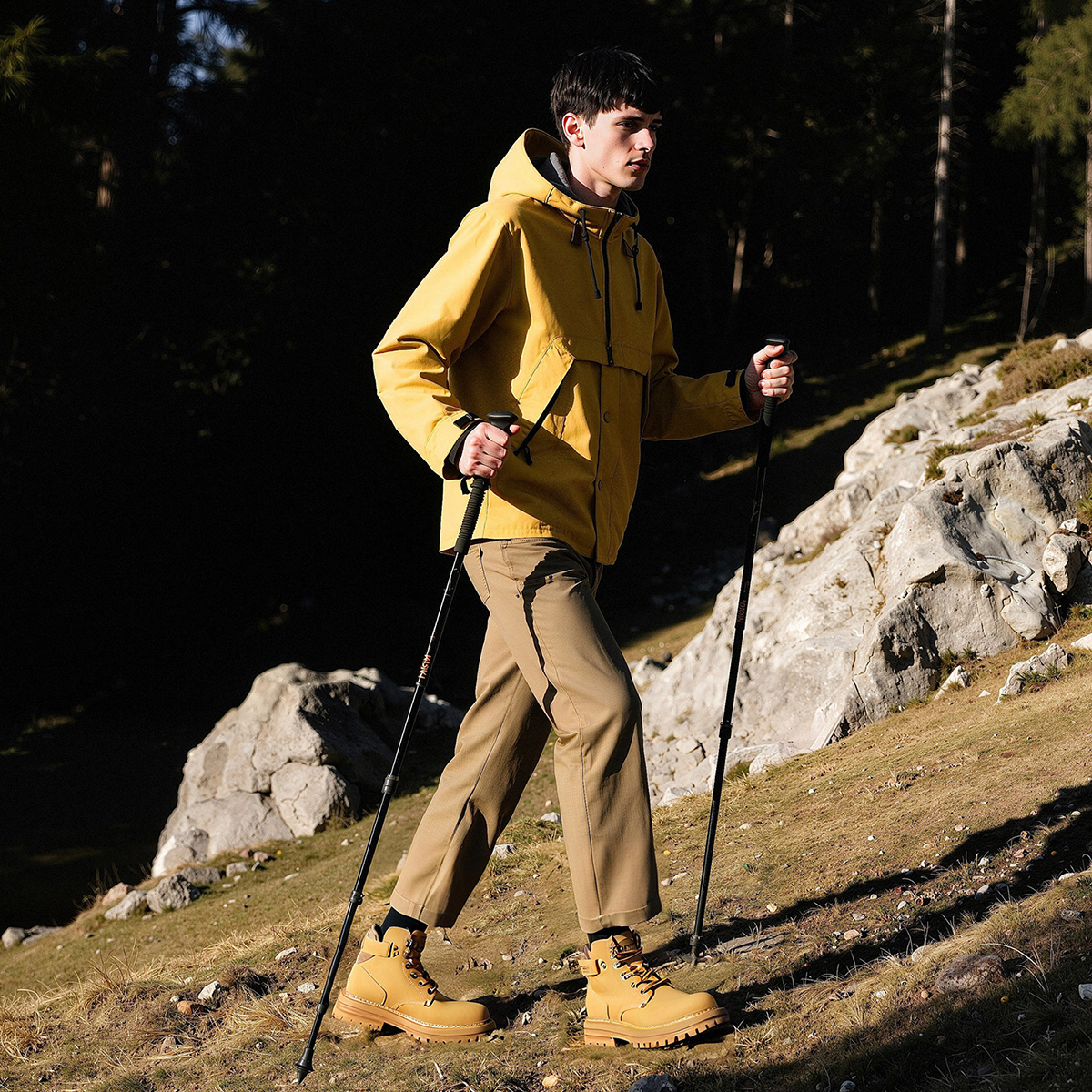 Mens Lace Up Work Boots with Back Ankle Strap Velcro