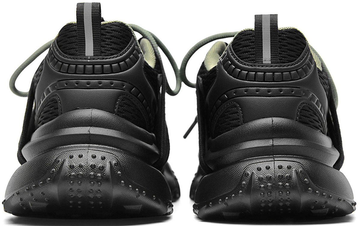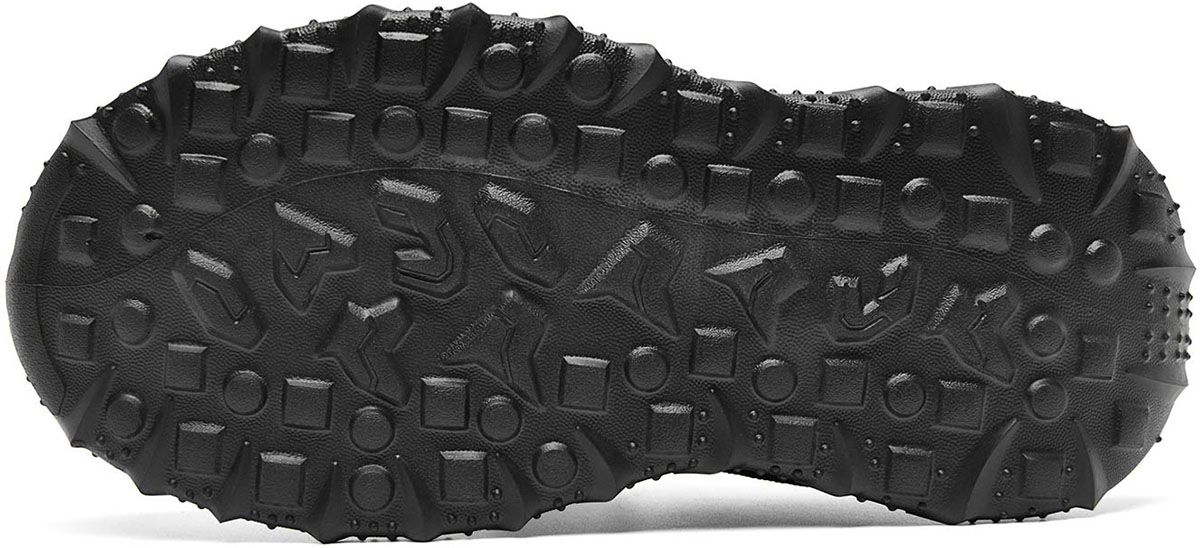 - The upper blends breathable mesh, wear-resistant rubber, and textured fabric. Mesh panels promote air circulation to keep feet dry; rubber reinforcements at the toe and sole boost abrasion resistance; fabric overlays add structural support and 3D visual appeal.