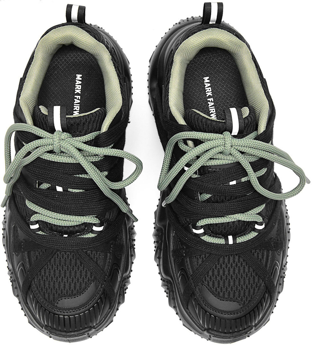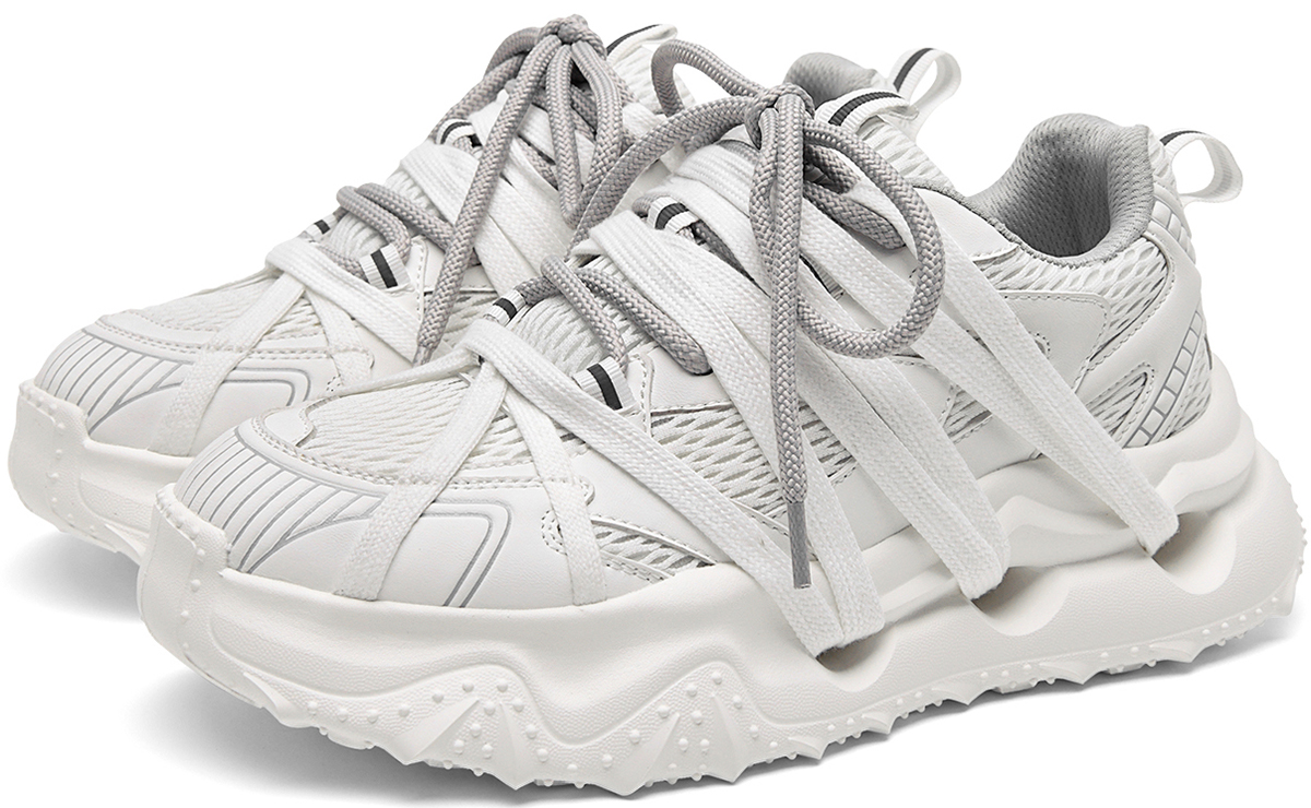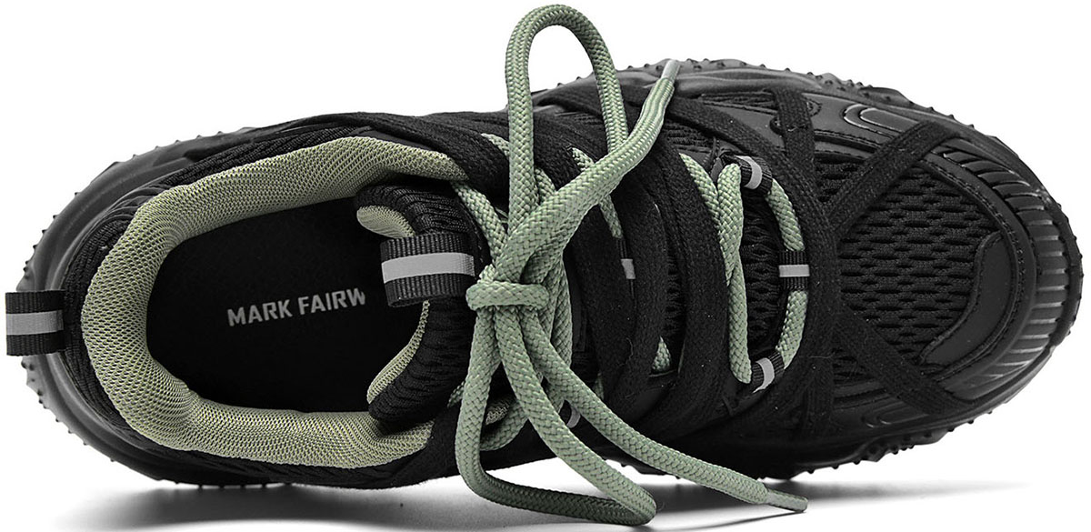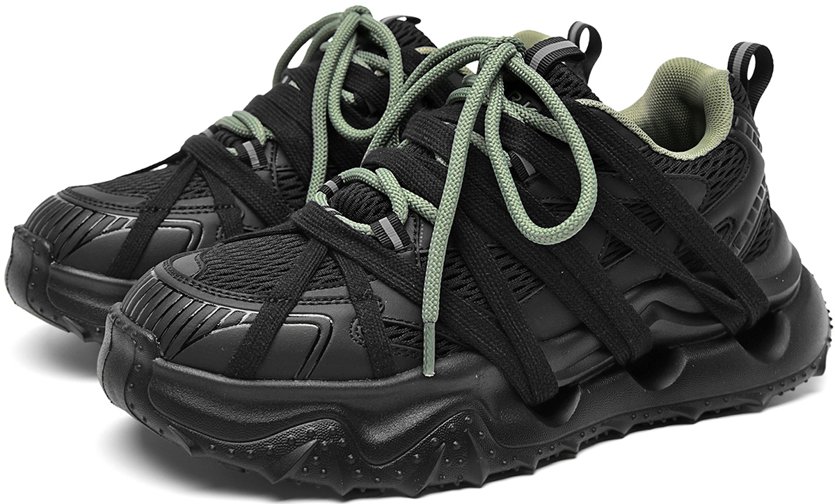 - Available in two stylish color options: black with sage green accents for a sleek, edgy look, and white with light gray detailing for a minimalist, versatile style. The chunky silhouette and geometric line design align with modern dad shoe fashion trends, pairing well with casual and streetwear outfits.