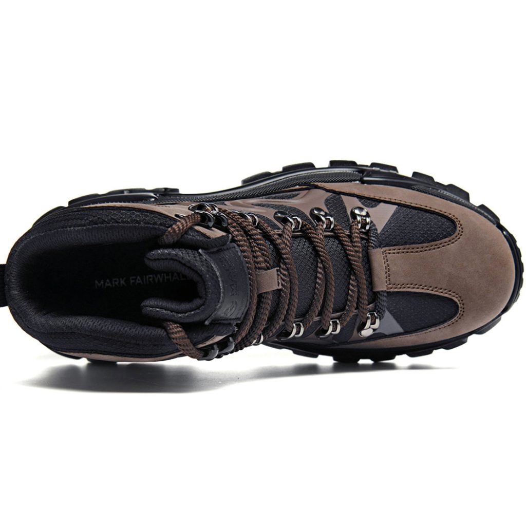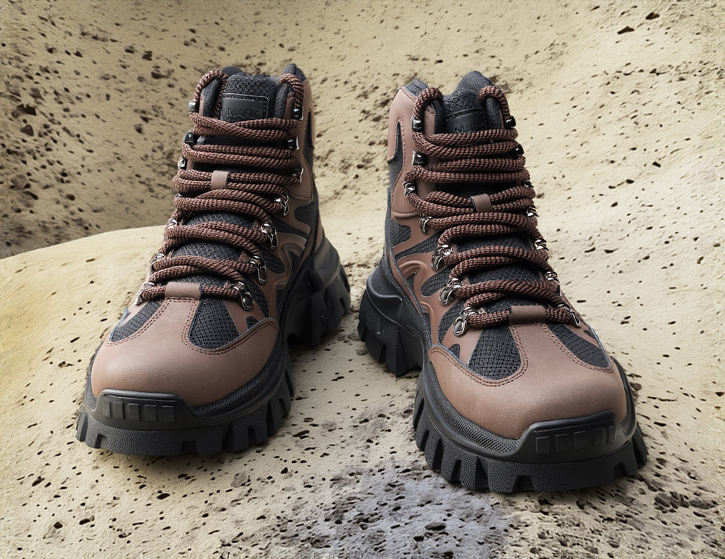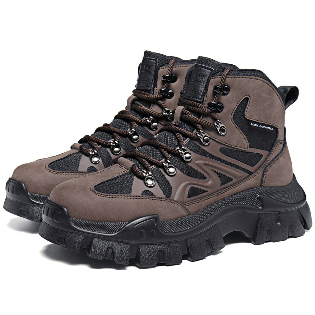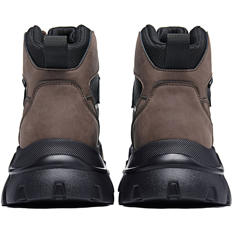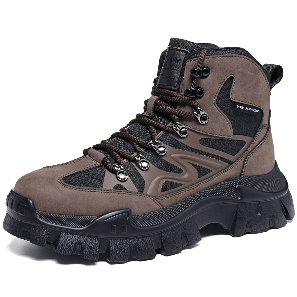 Mens Leather and Fabric Paneling Lace Up Ankle Boots with Platform Lug Sole