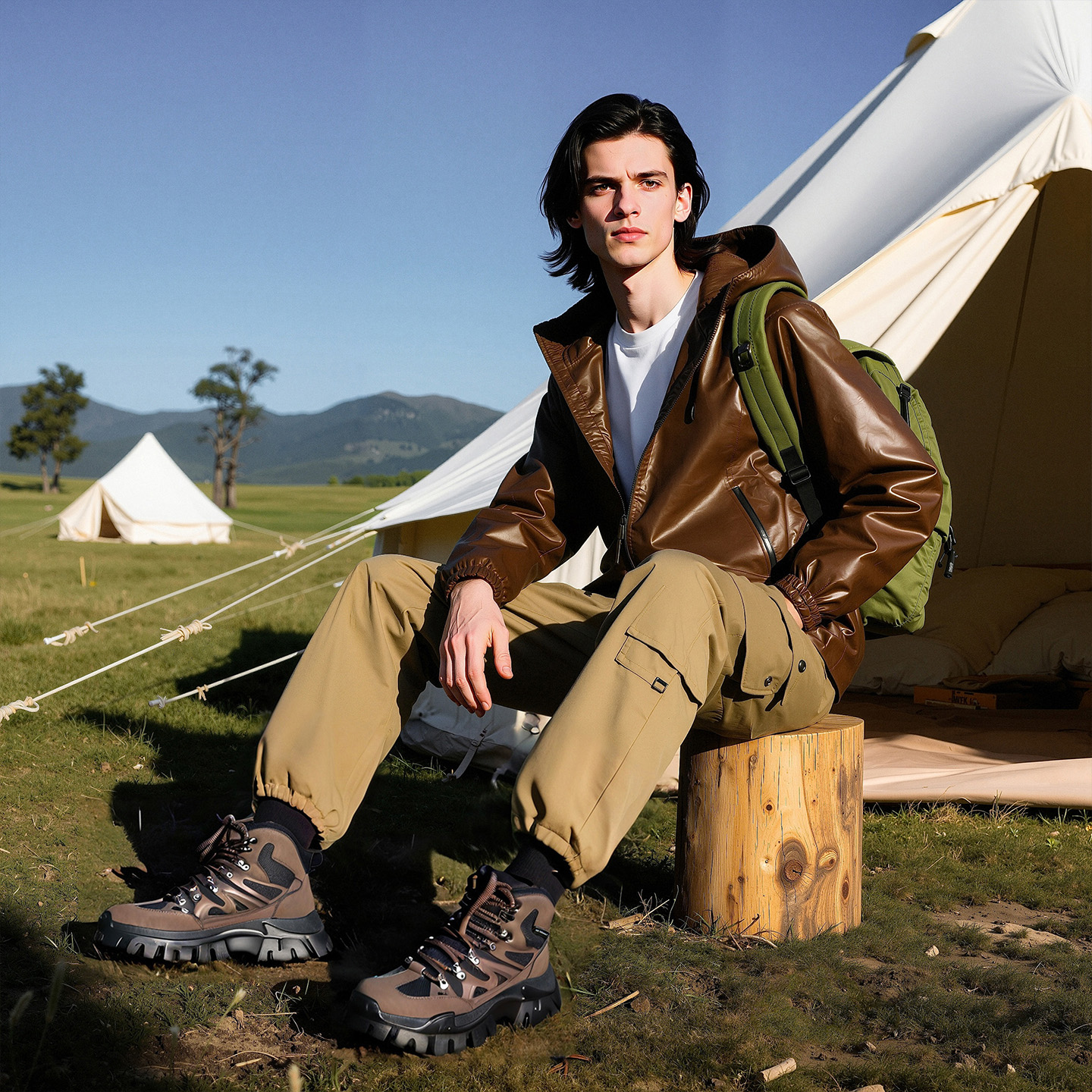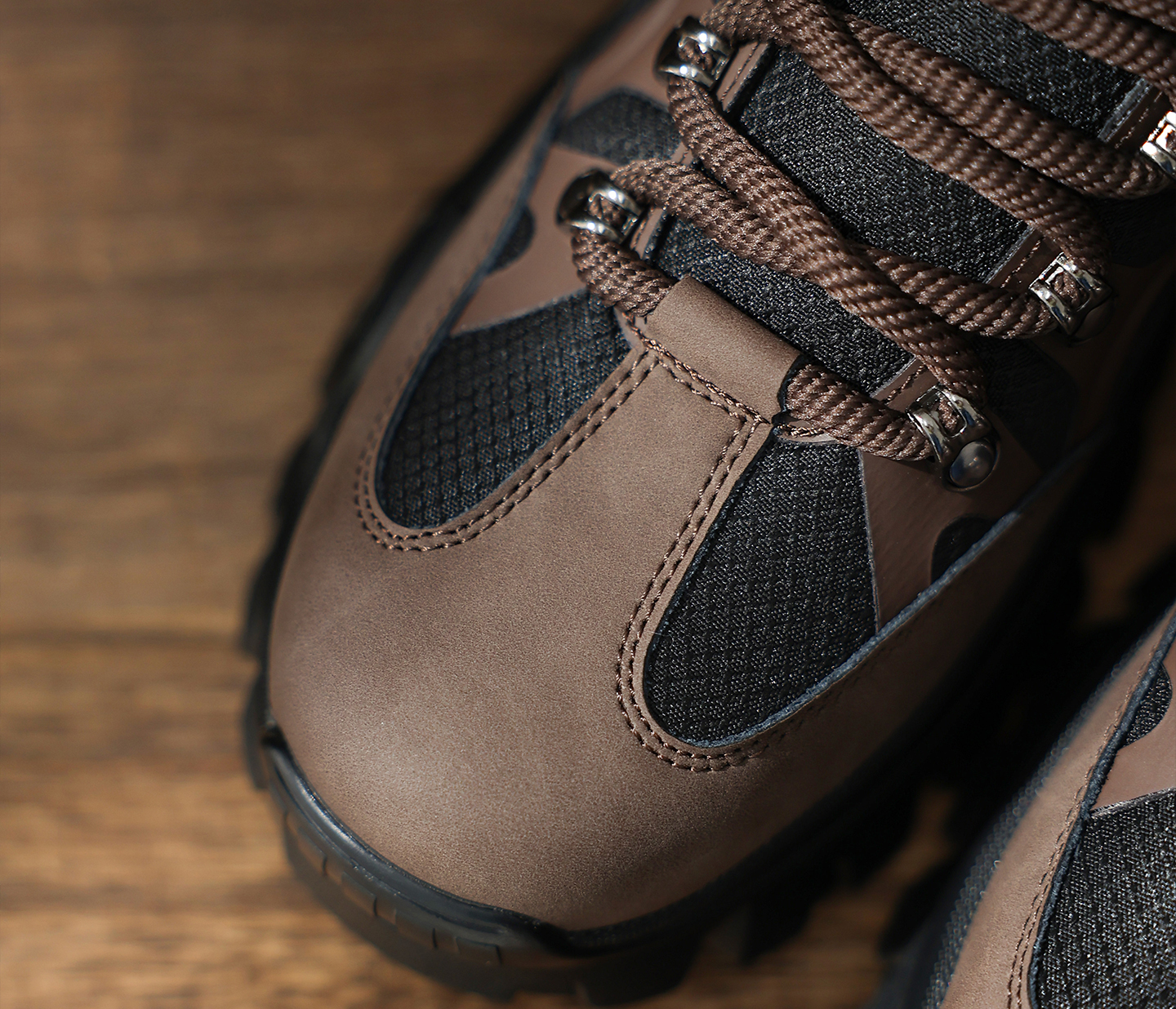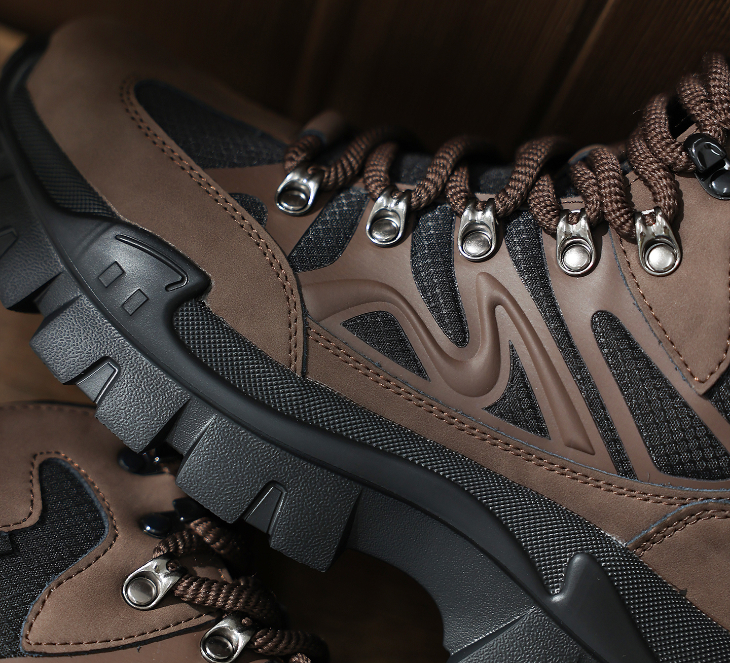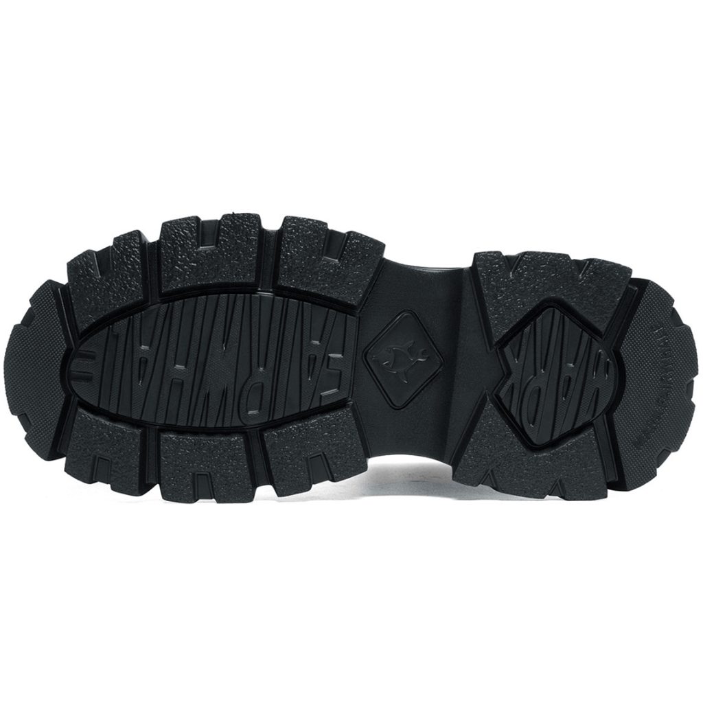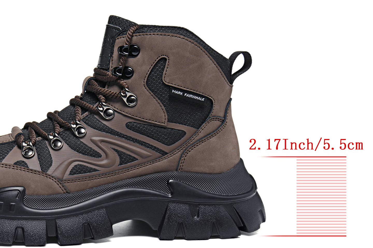 Mens Leather and Fabric Paneling Lace Up Ankle Boots with Platform Lug Sole