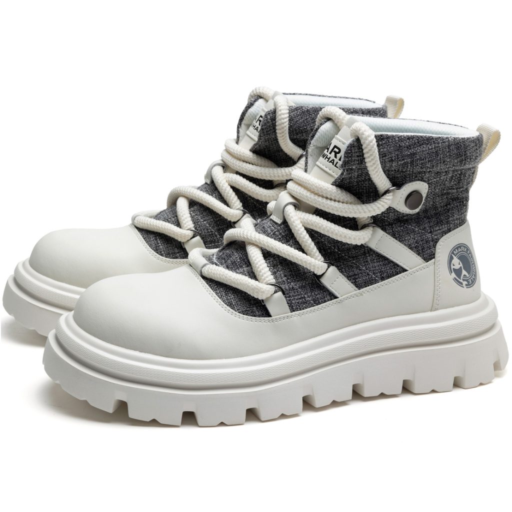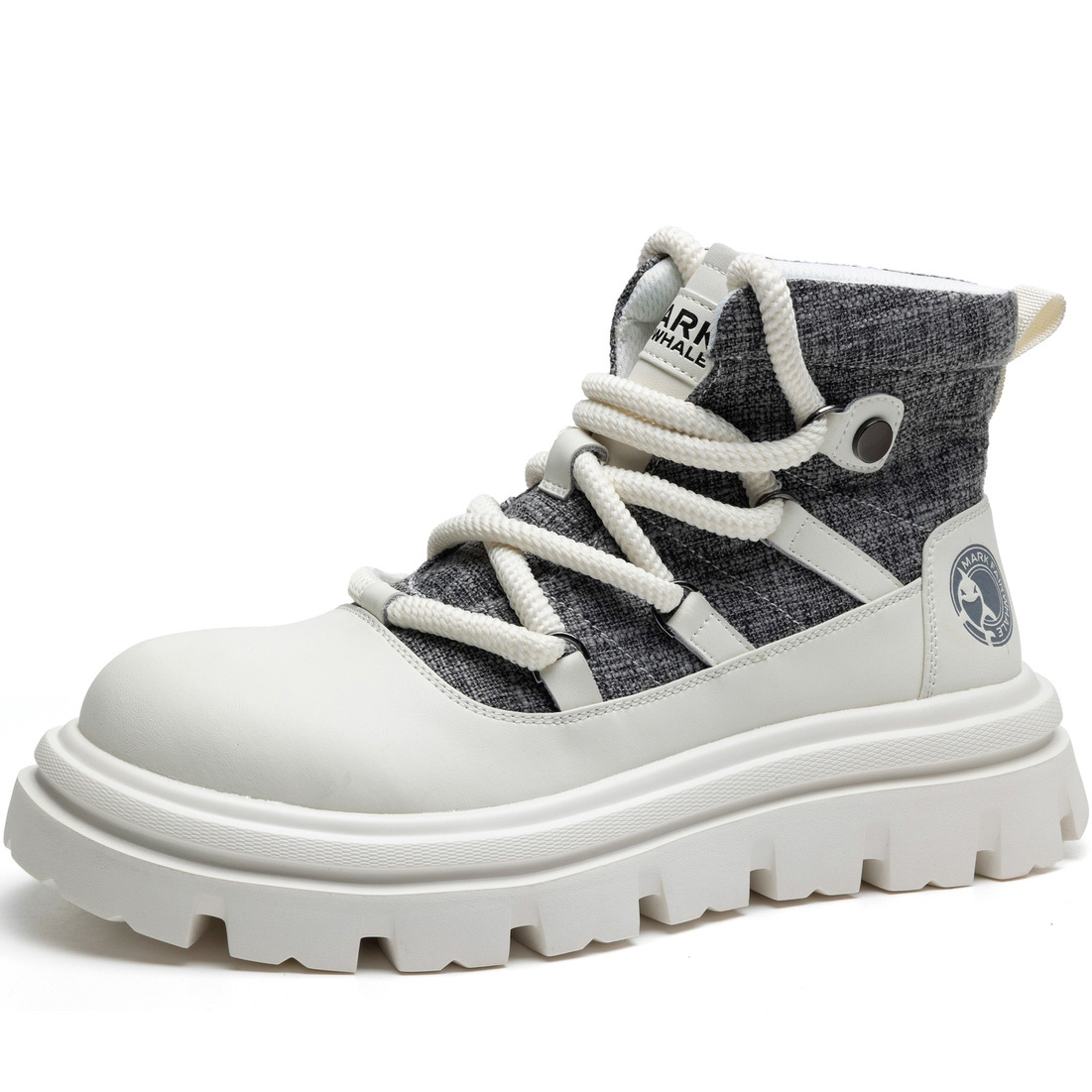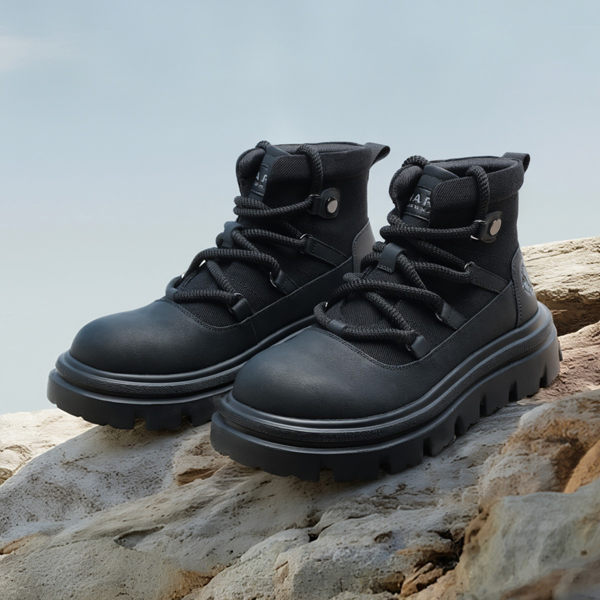 When leather and heathered fabric mixed on one work boots, it is blended with a crisp silhouette and breathable wearing experience. The type of boots is blocked in leather and fabric, wealthy tiers break the rule of traditional leather boots, making it more modern, stylish and comfortable to everyday wear.
