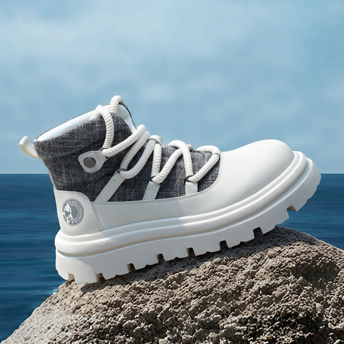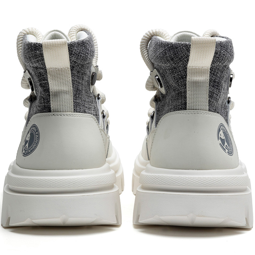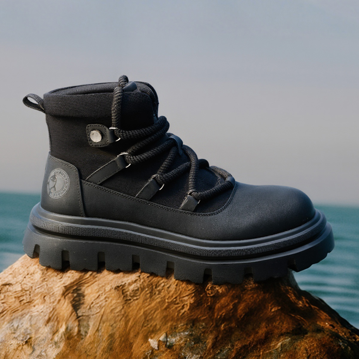 When leather and heathered fabric mixed on one work boots, it is blended with a crisp silhouette and breathable wearing experience. The type of boots is blocked in leather and fabric, wealthy tiers break the rule of traditional leather boots, making it more modern, stylish and comfortable to everyday wear.