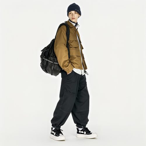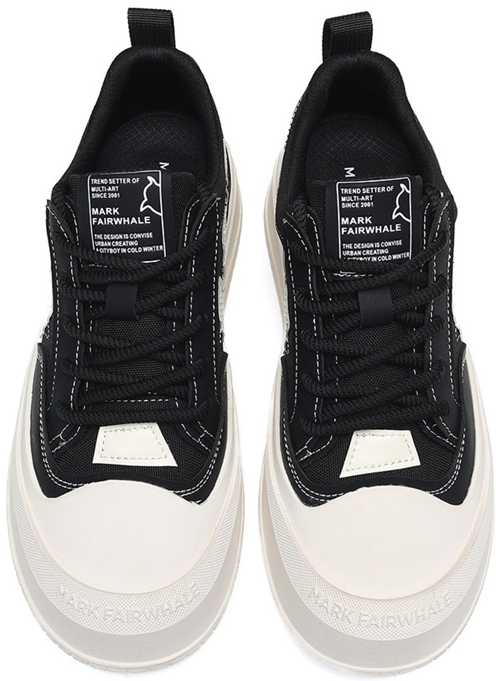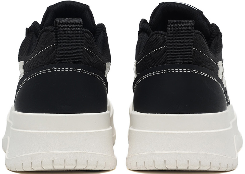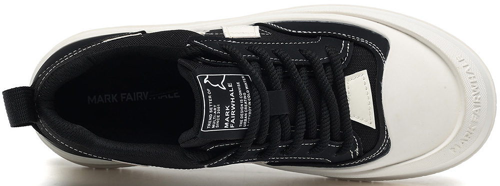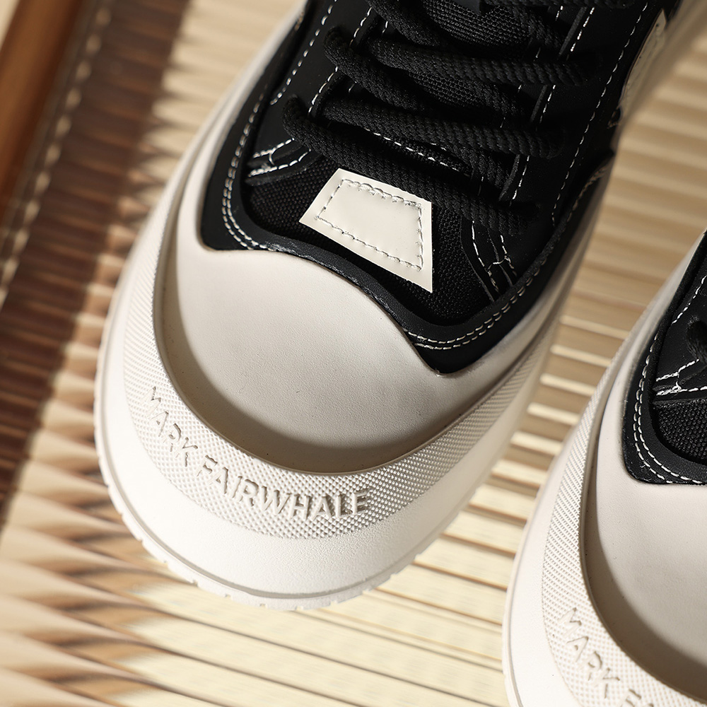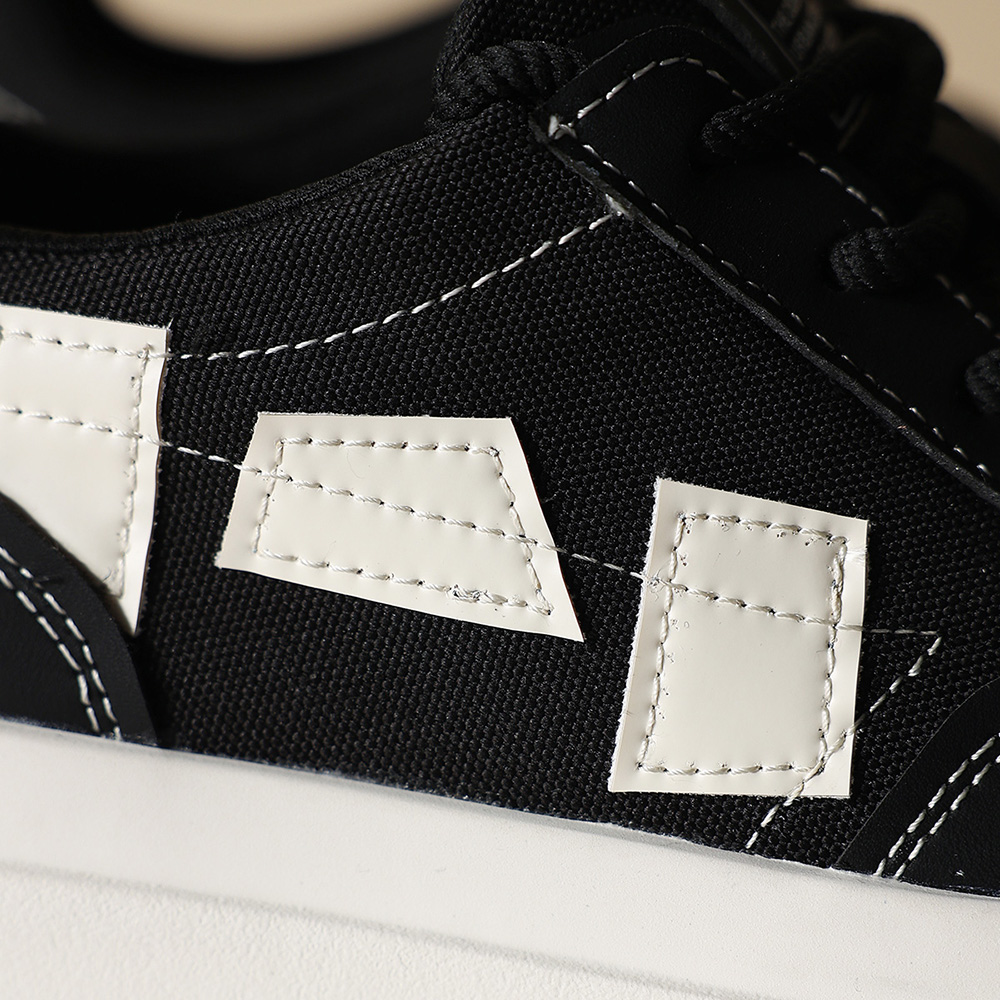 Mens Leather Canvas Stylish Geometric Patchwork Round Toe Platform Skate Shoes