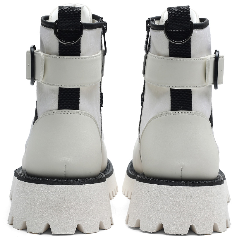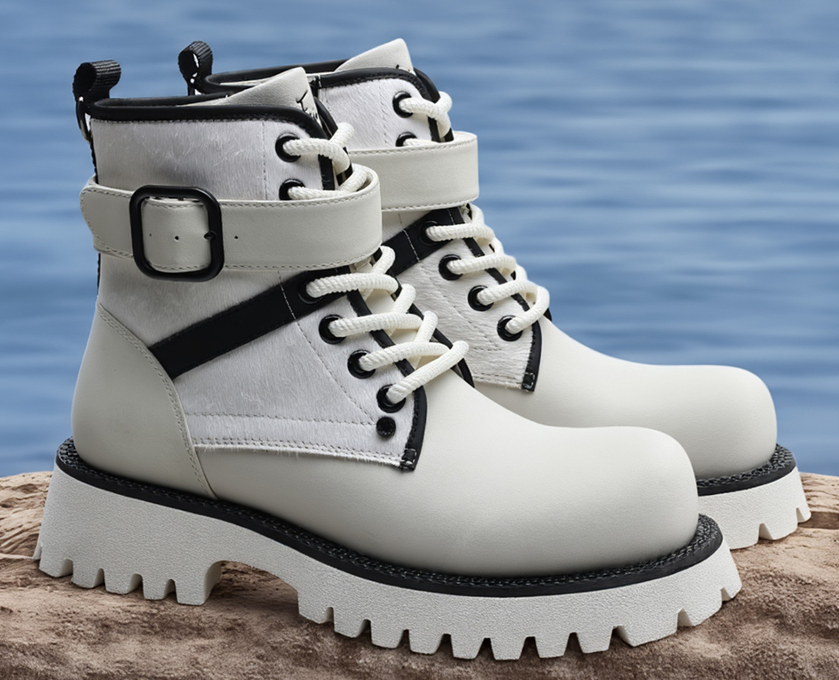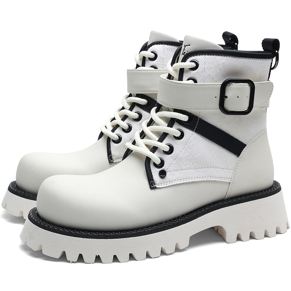 Mens Lugged Outsole Buckle Strap Chunky Boots with Side Zipper