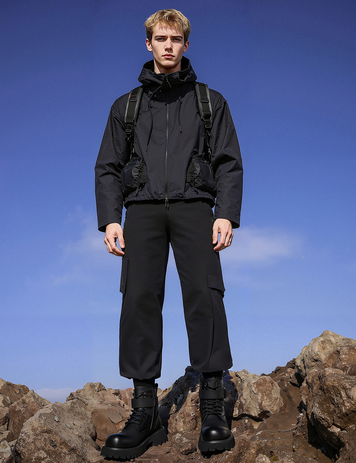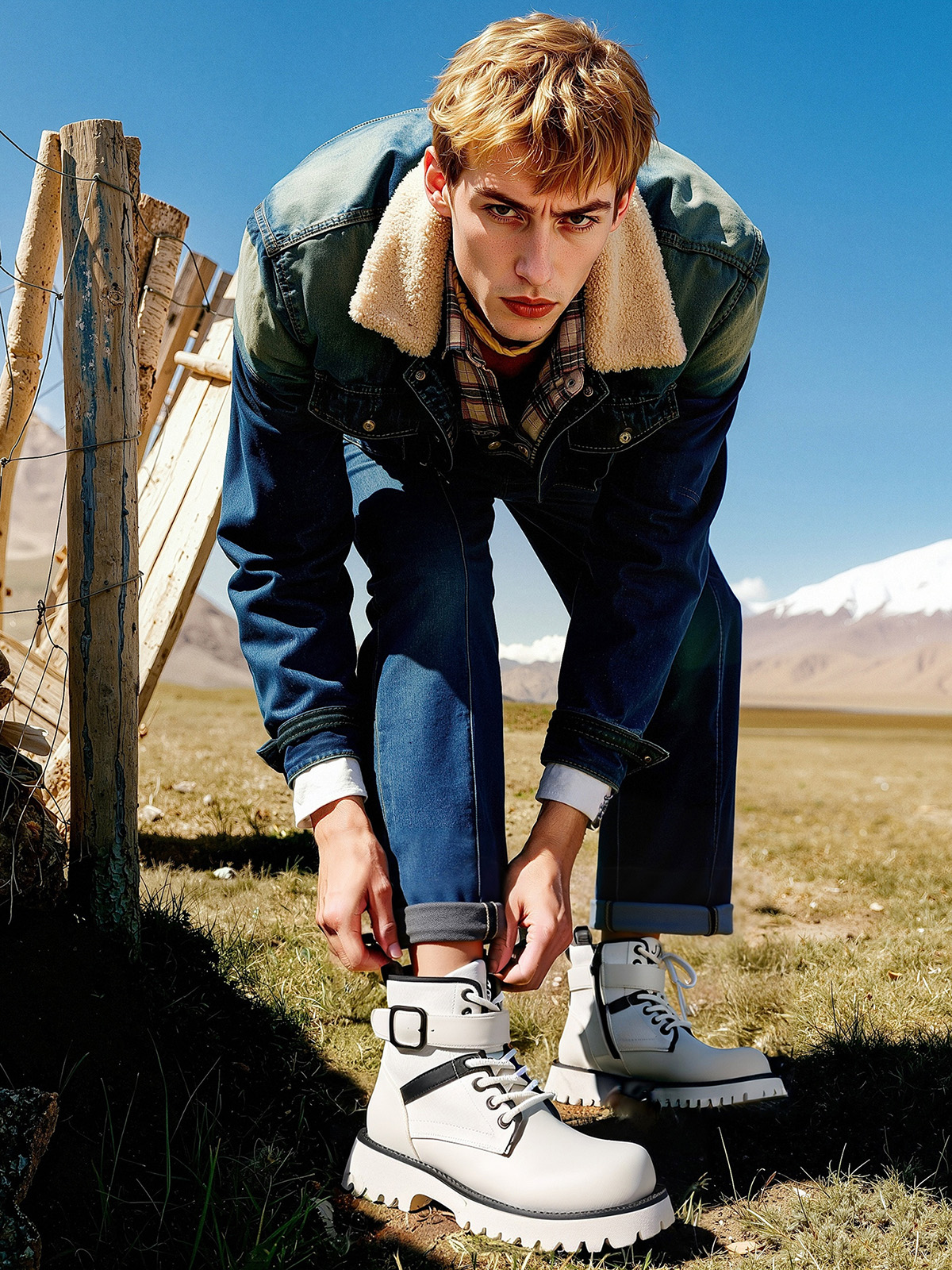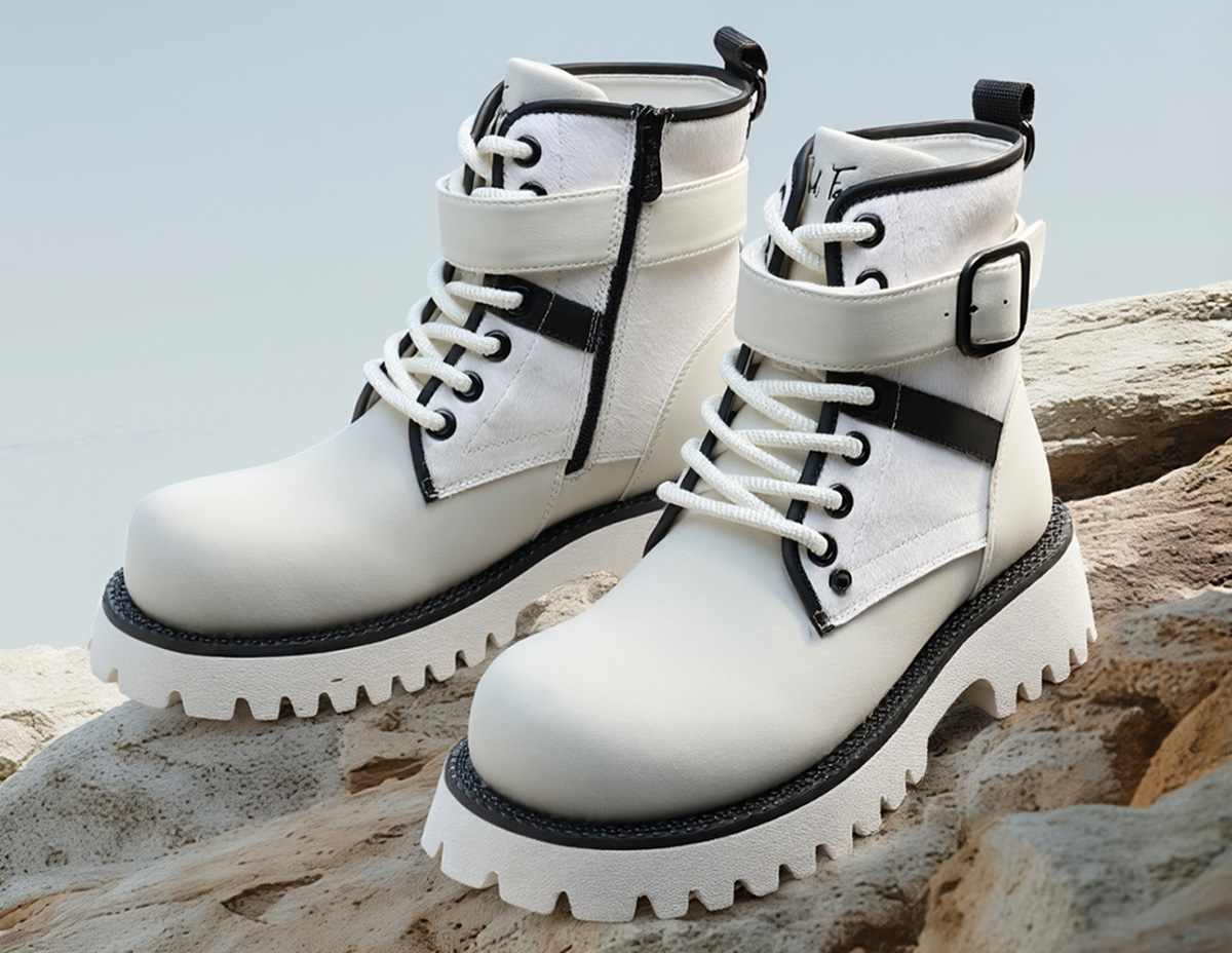 Mens Lugged Outsole Buckle Strap Chunky Boots with Side Zipper