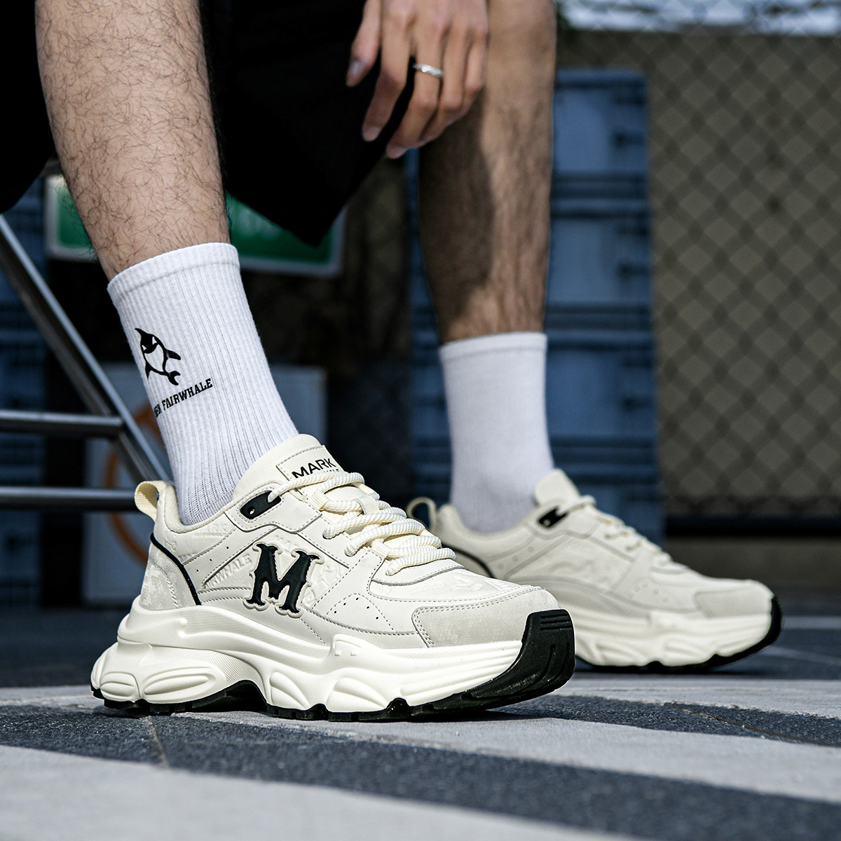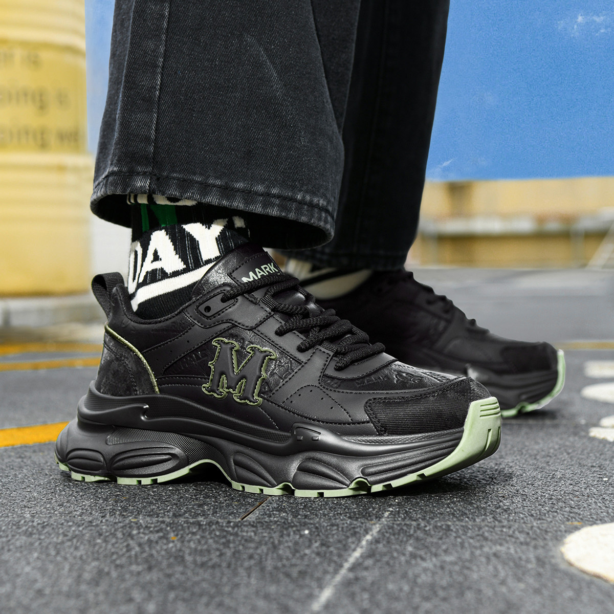 Mens M Emblem Leather Platform Dad Shoes