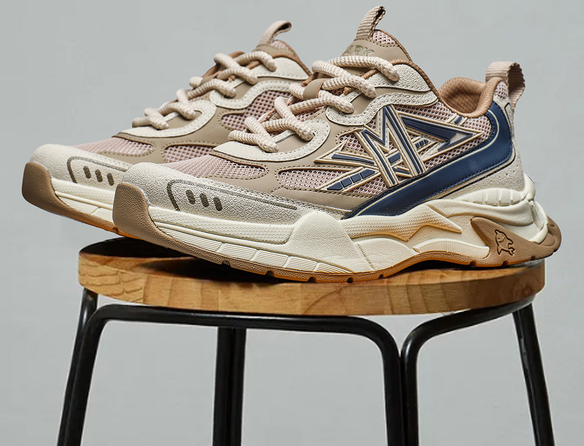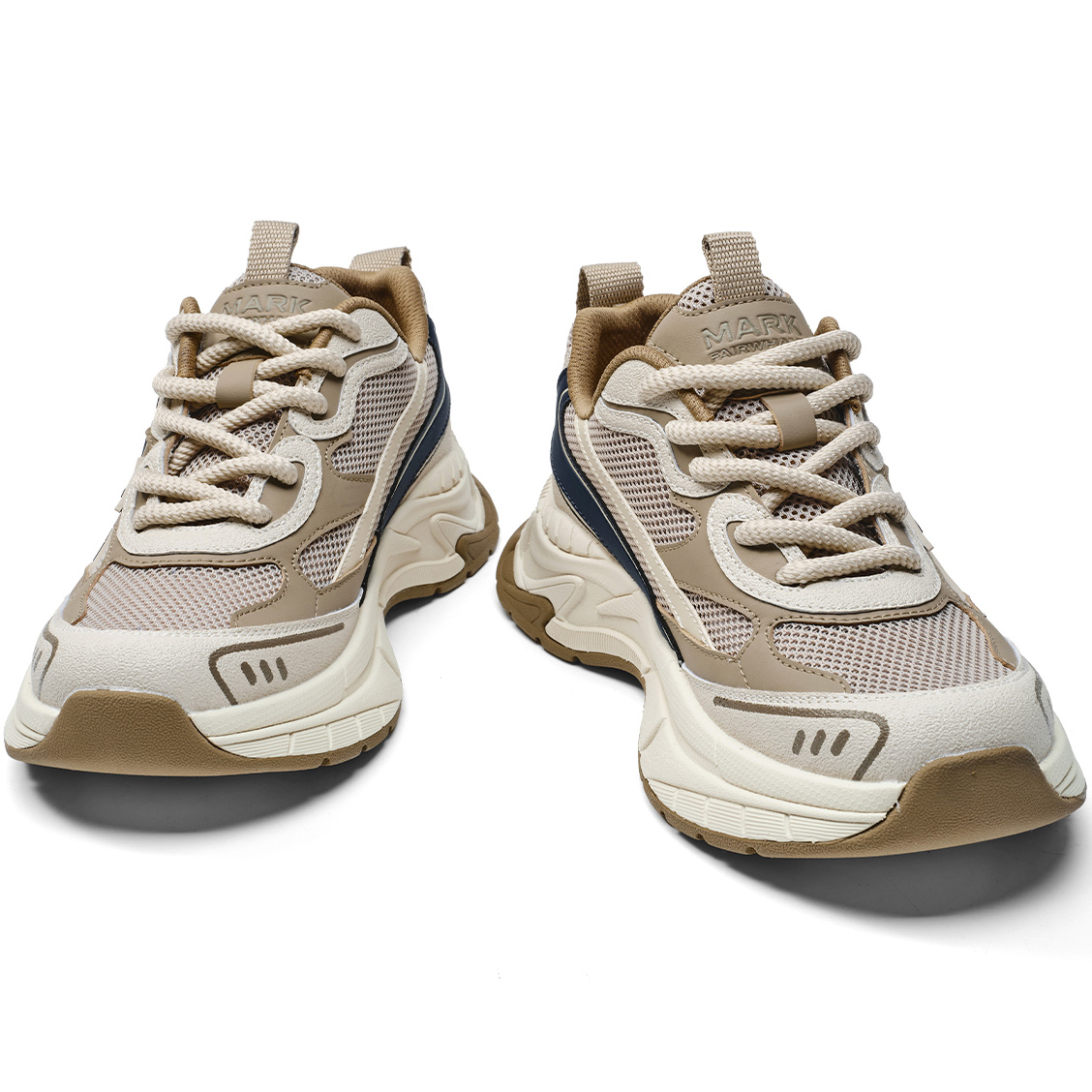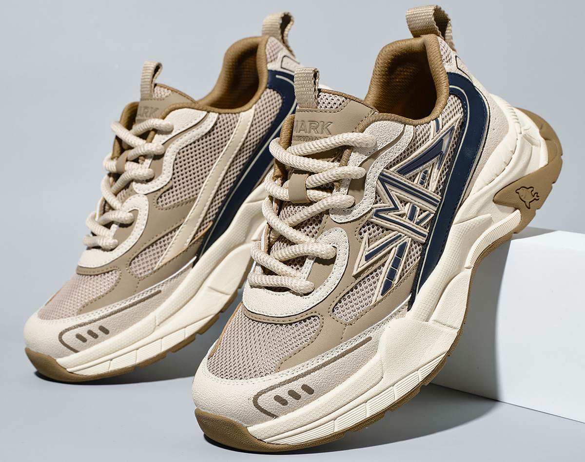 Mens M Pattern Overlays Colorblock Platform Sneakers with Sculpting Outsole