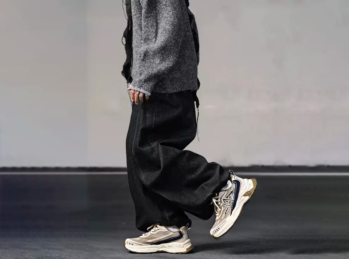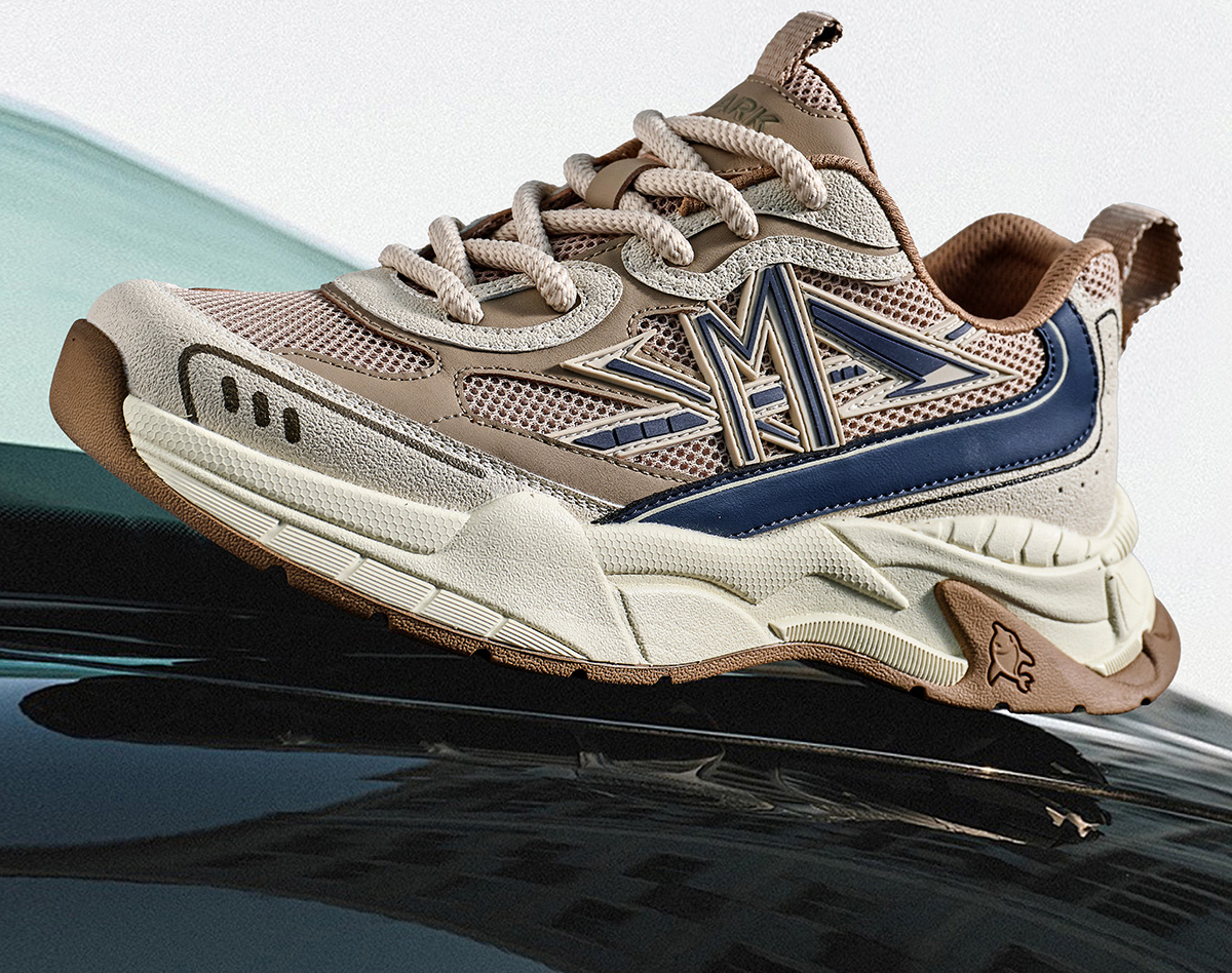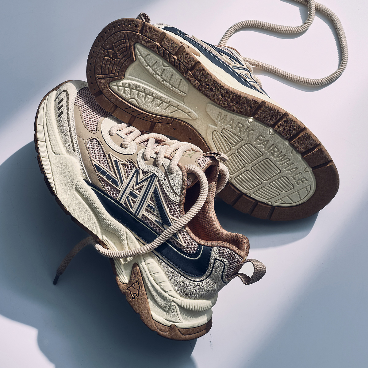 Mens M Pattern Overlays Colorblock Platform Sneakers with Sculpting Outsole