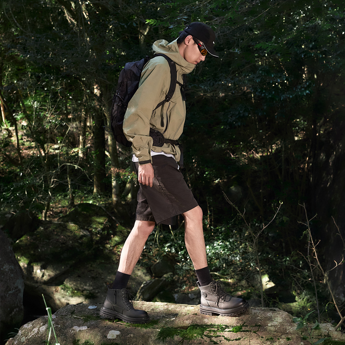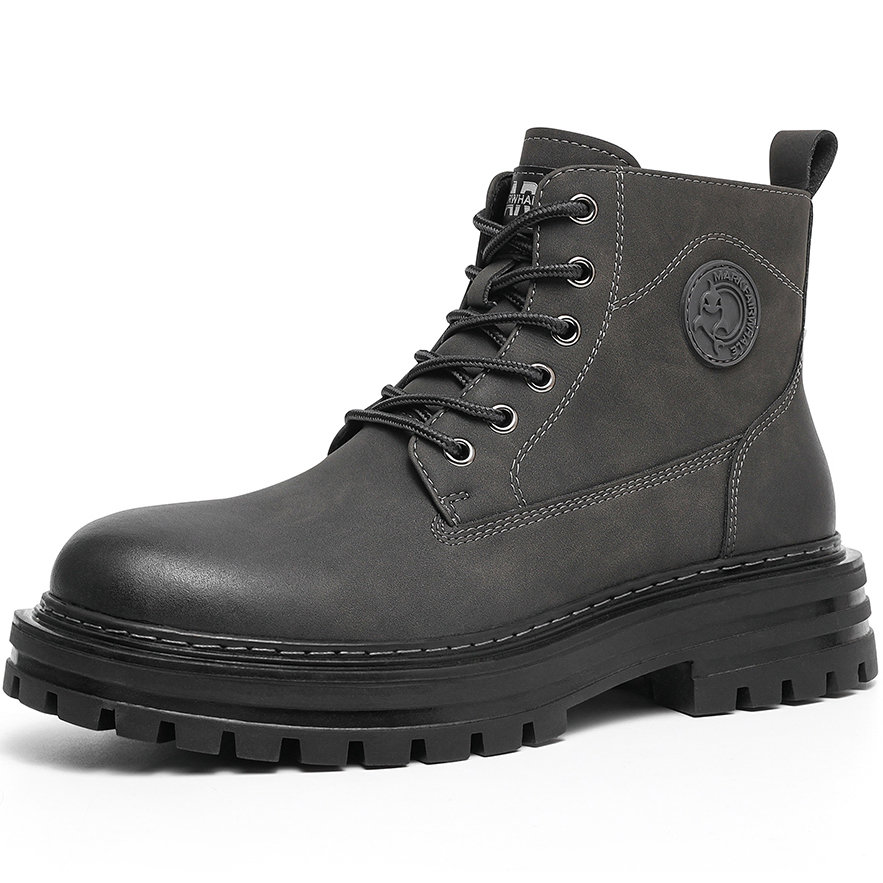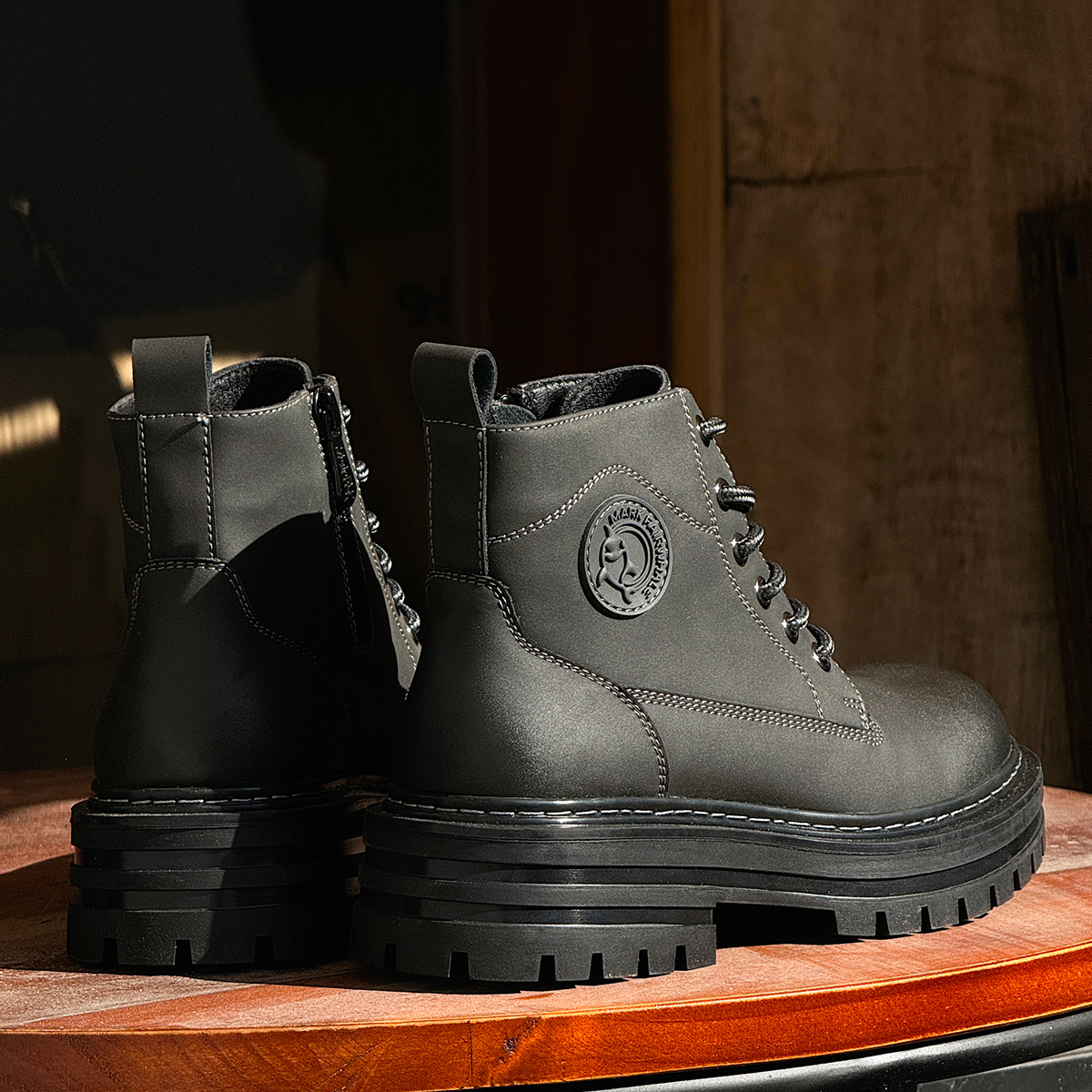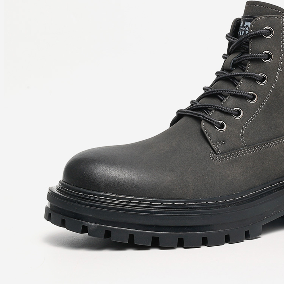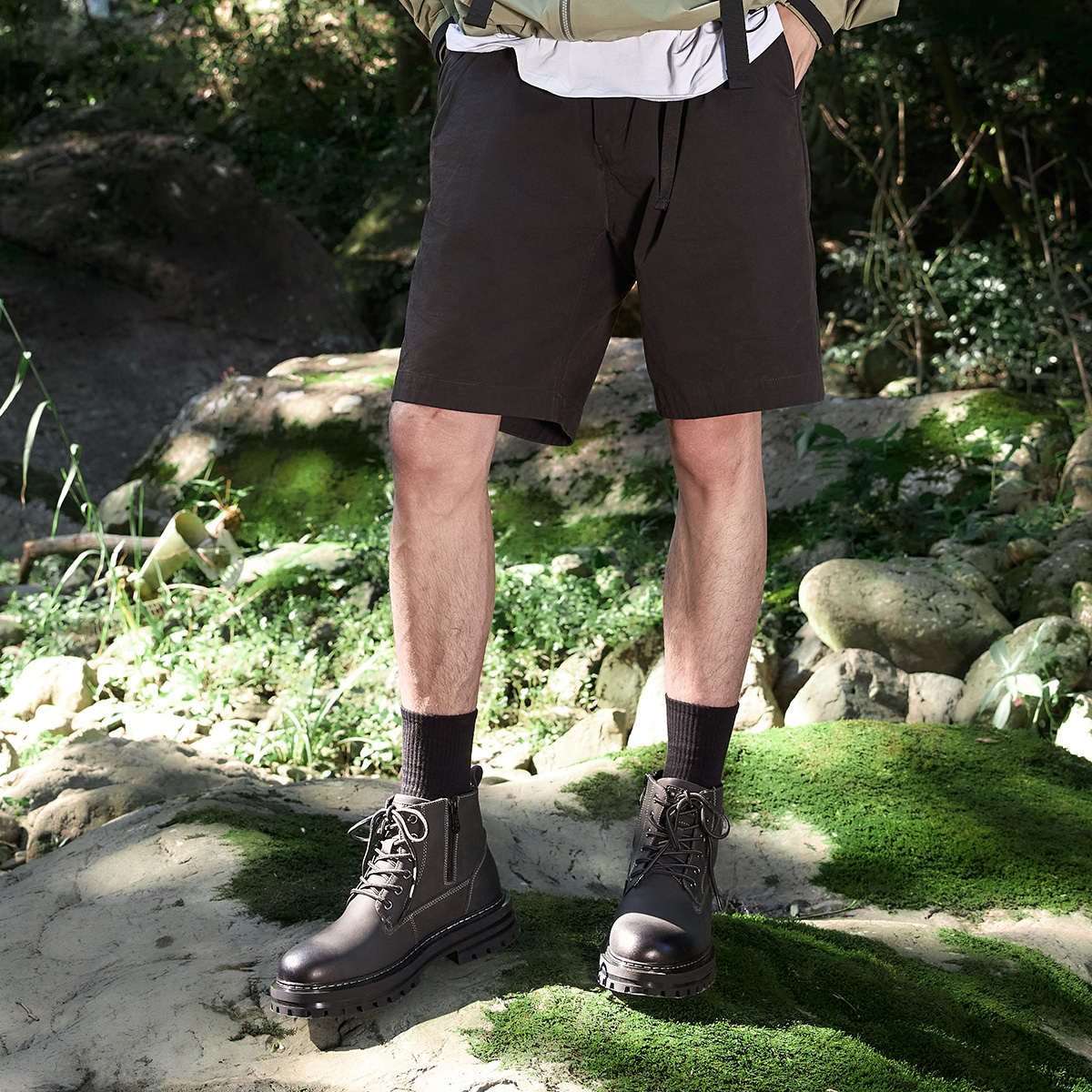 Mens Minimalist Lace Up 6 Eyelets Leather Boots with Side Zipper