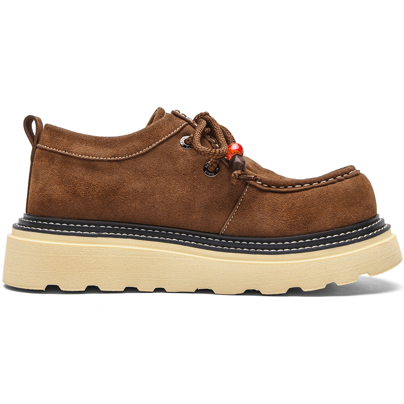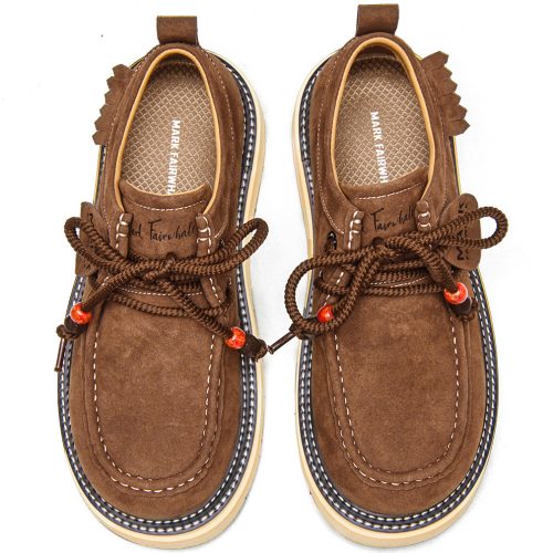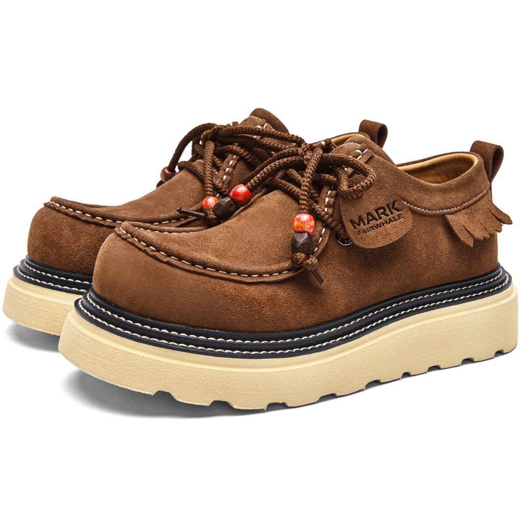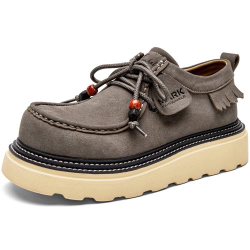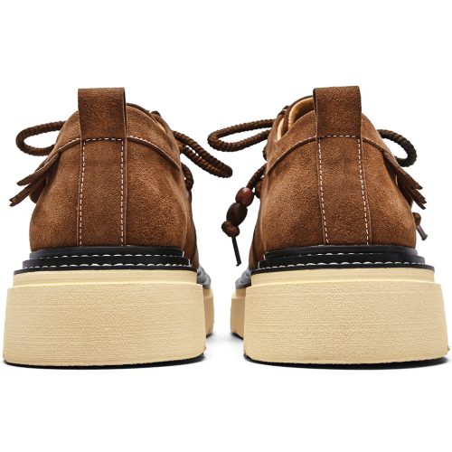 If you would like to get one pair of casual leather shoes, this one may be perfect! Shoes upper is made of suede leather, classic and timeless; moc toe style, full of retro-inspired touch; round braided laces with exquisite porcelain beads, fashionable and pretty; sole is made from EVA, lightweight and good shock absorption performance.