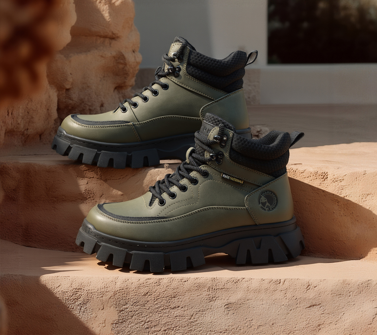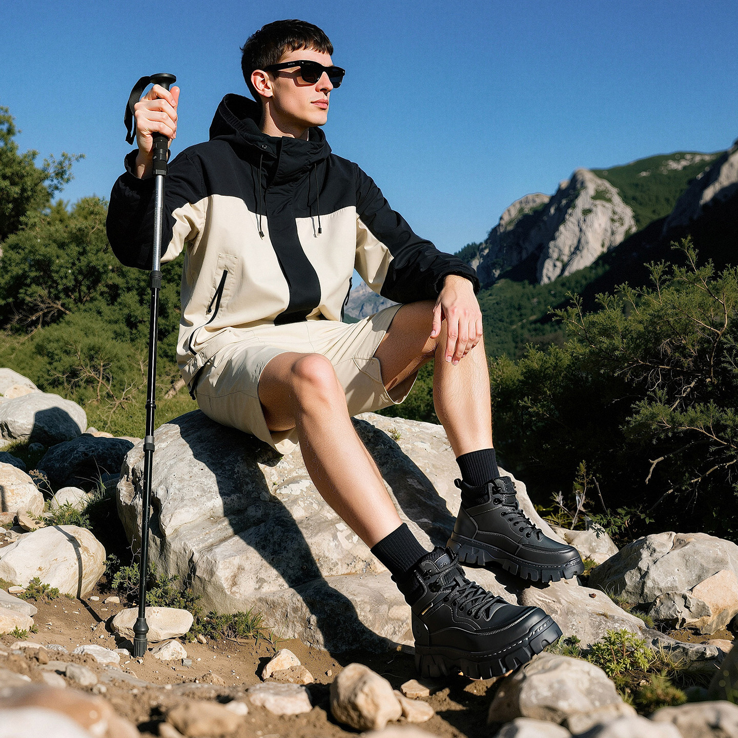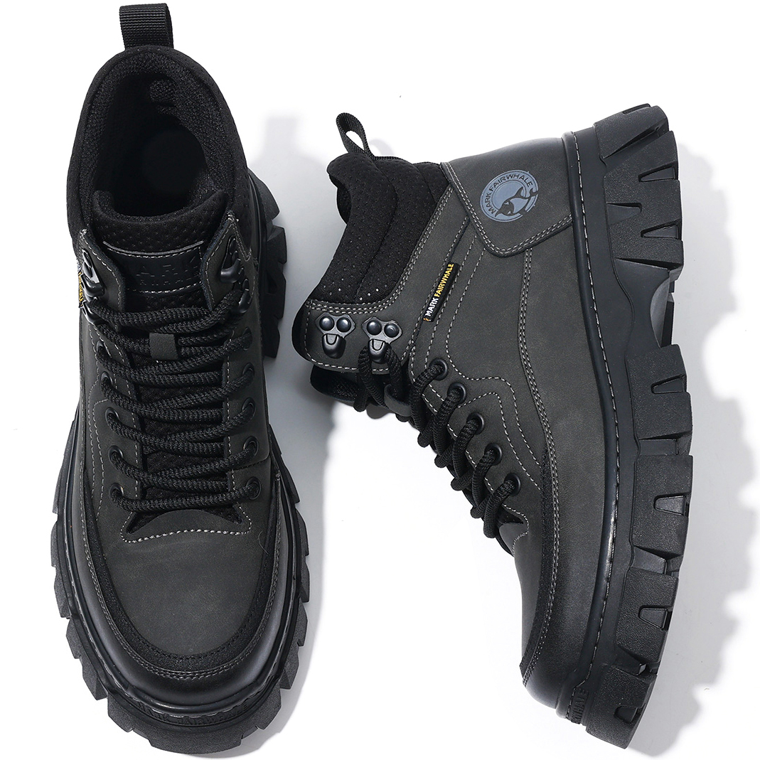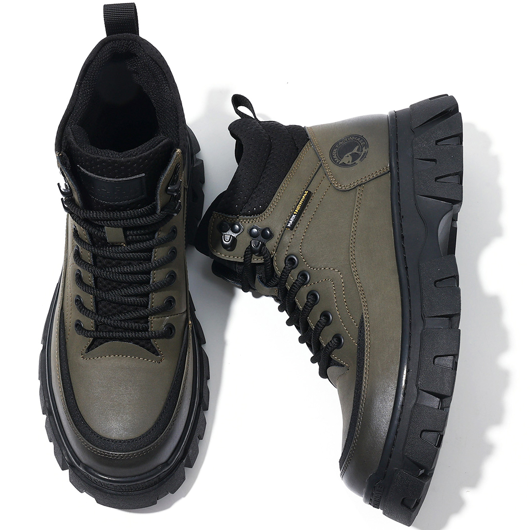 This shoe is available in two colors: black grey, military green. Its thick sole is wear-resistant and non-slip, and the high-top ankle support is comfortable.It is suitable for various styling options, making the style naturally suited for commuting, leisure and other occasions.
