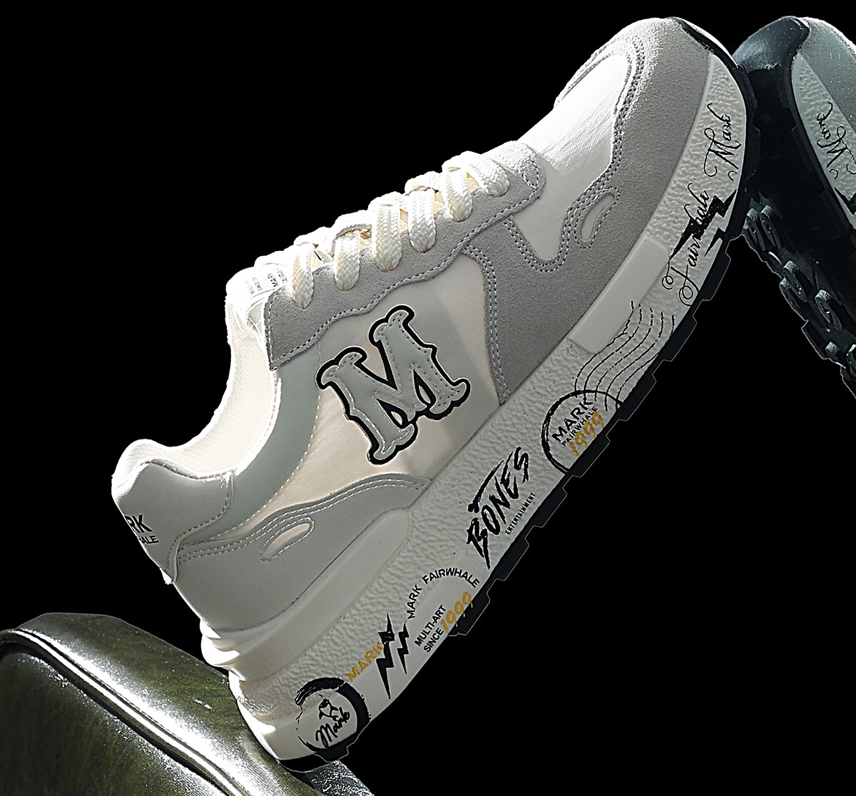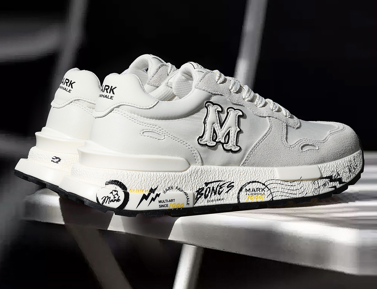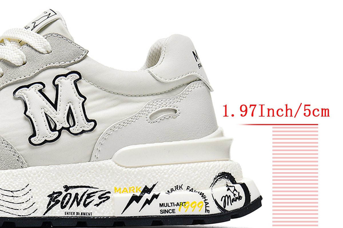 This sneaker features a white-gray color-blocking design paired with distinctive print elements, delivering a soft, elastic and breathable wearing experience while satisfying height-increasing needs and suiting diverse styling scenarios.