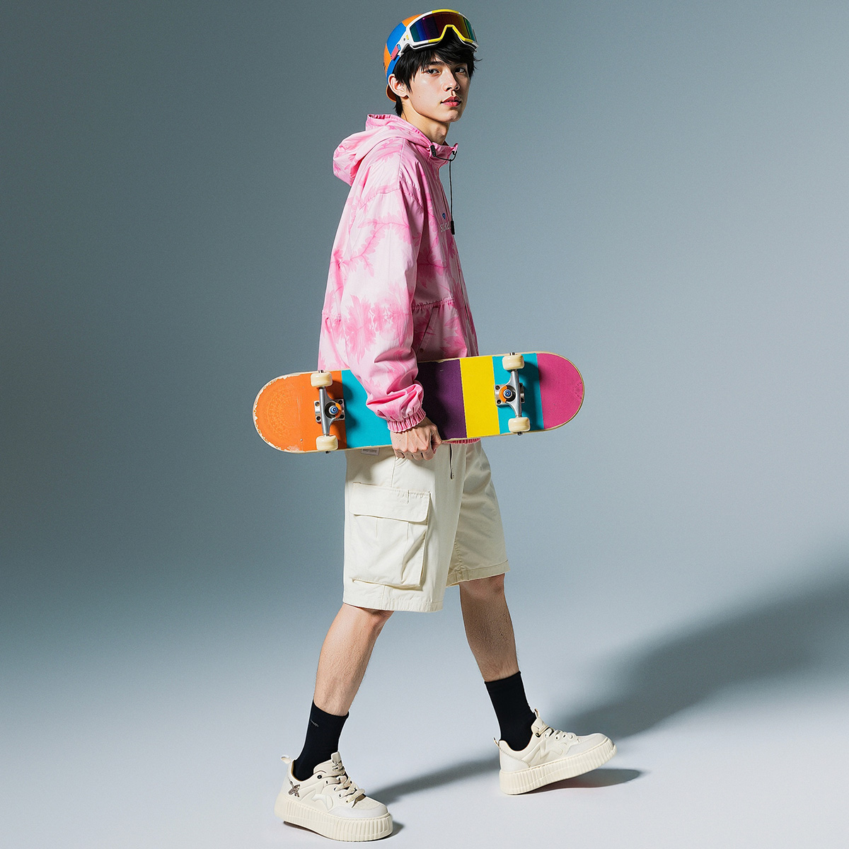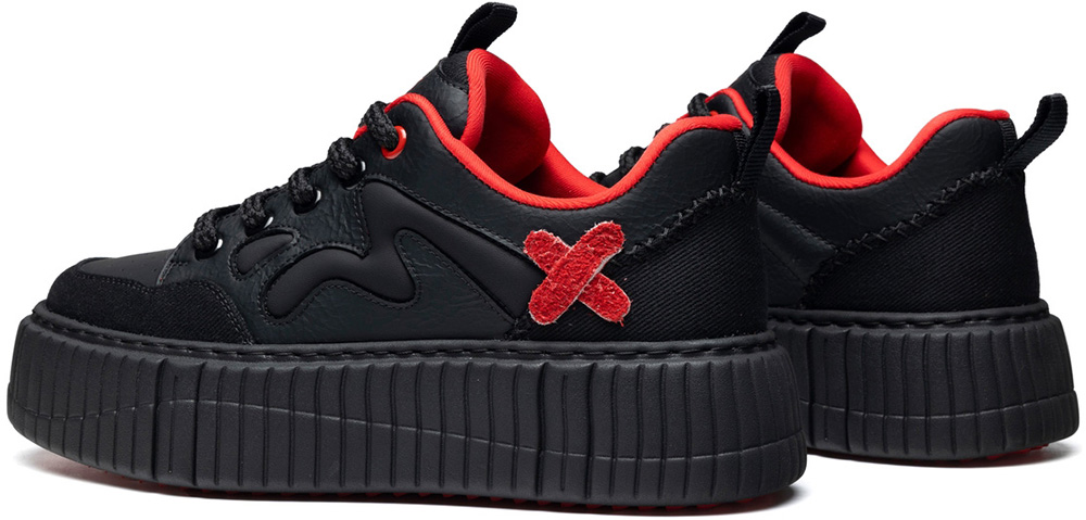 Mens Patchwork Upper and X Pattern Platform Skate Shoes With M Logo