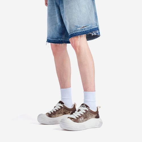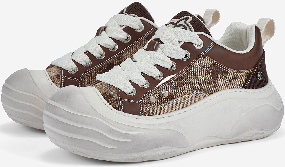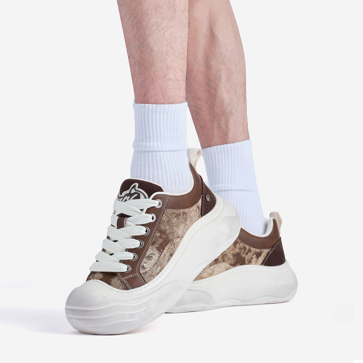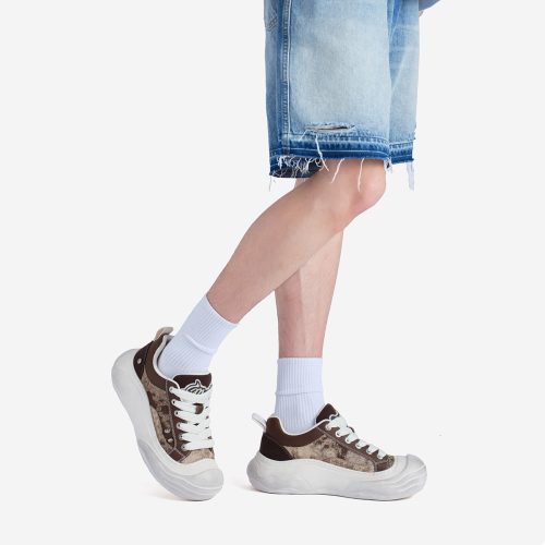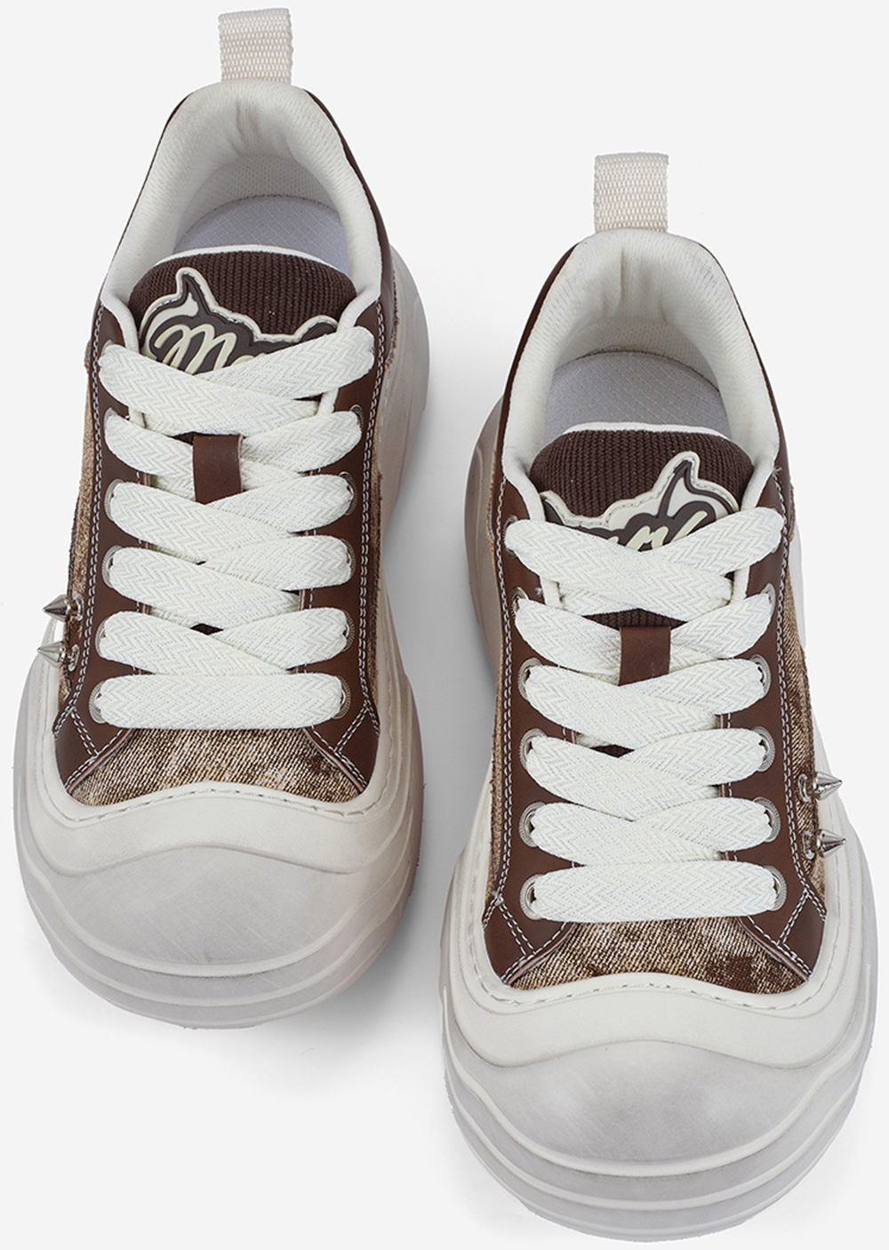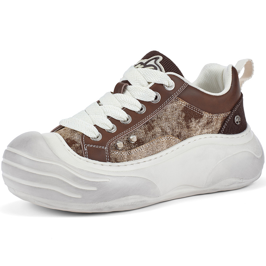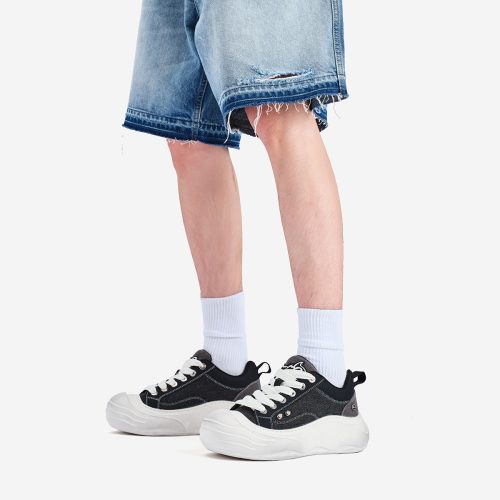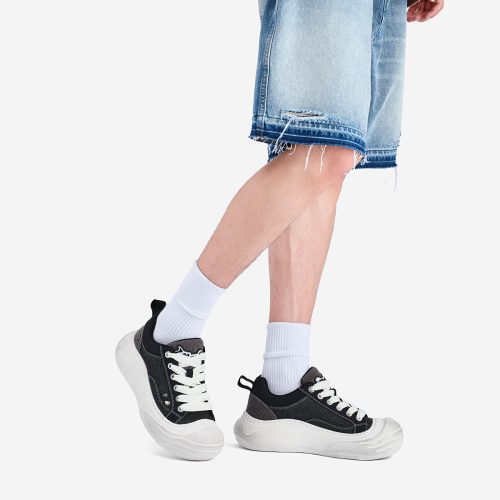 Mens Platform Canvas Skate Shoes Distressed with Two Rivets