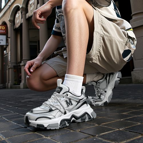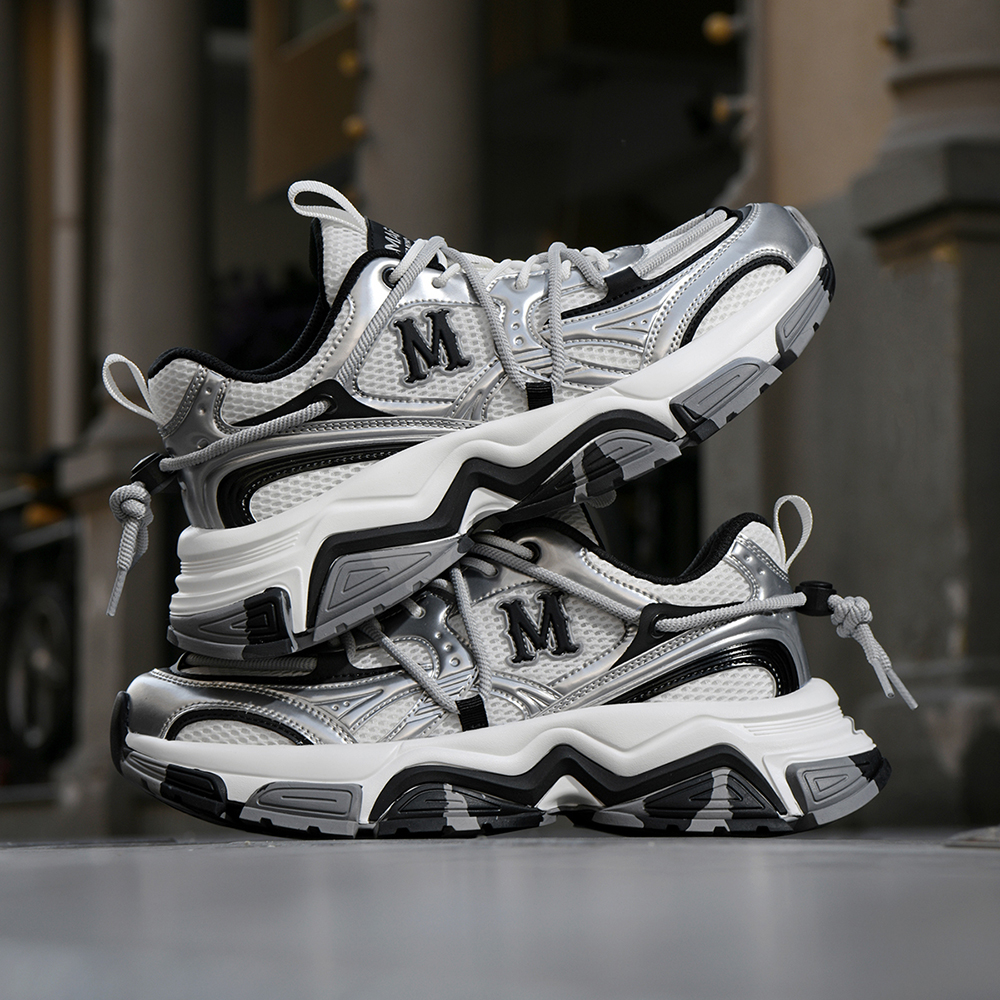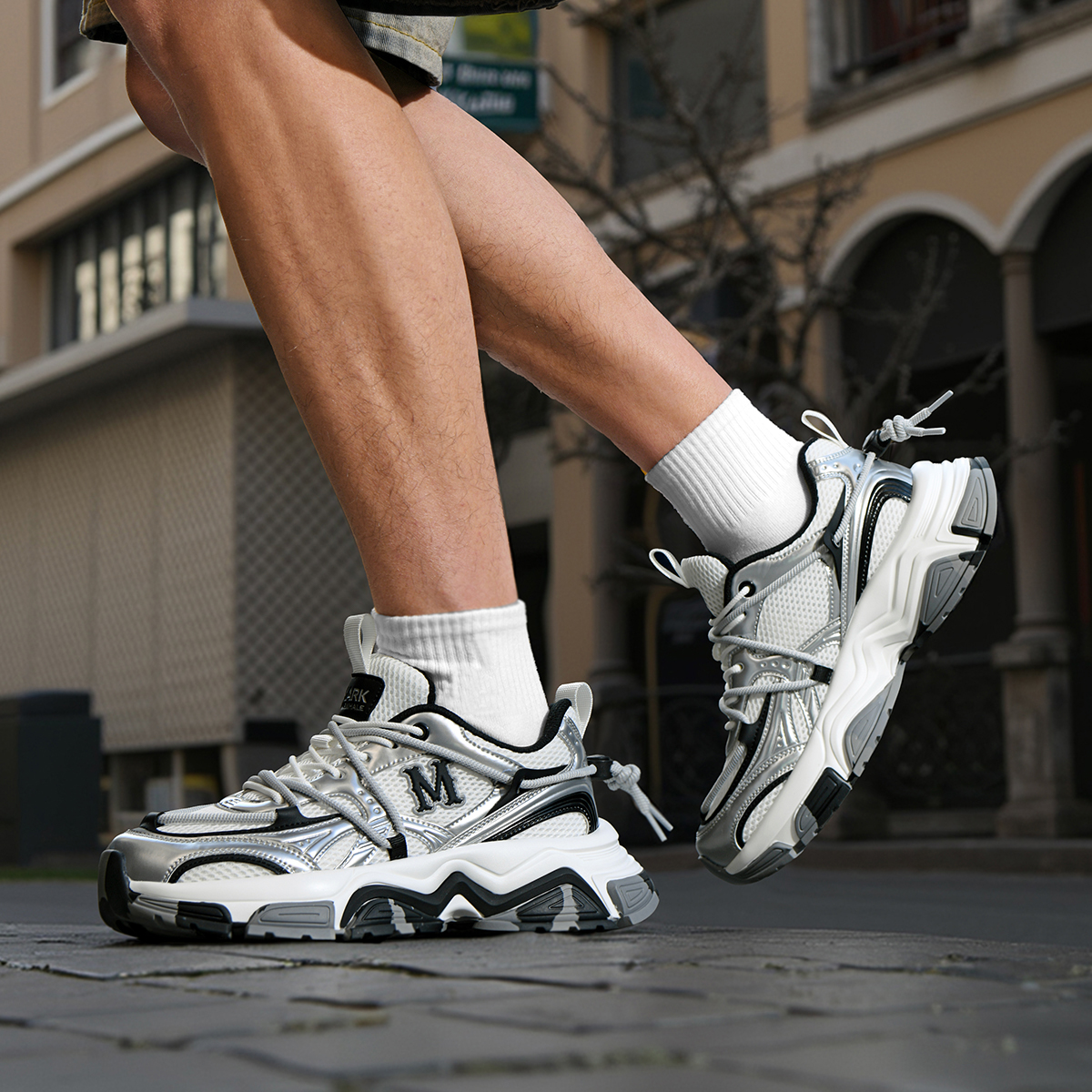 These mens platform mesh sneakers blend trendy style and all-day comfort, perfect for casual and streetwear looks. Crafted with breathable mesh upper, they keep feet cool even during long hours of wear, while the eye-catching platform sole adds subtle height and a bold silhouette. The decorative laces and prominent M logo elevate the design, giving the shoes a distinctive, fashion-forward vibe. Sturdy construction ensures durability, making them ideal for daily commutes, hanging out or light outdoor activities. Versatile and on-trend, this pair pairs seamlessly with jeans, shorts and joggers, easily becoming your go-to casual staple.