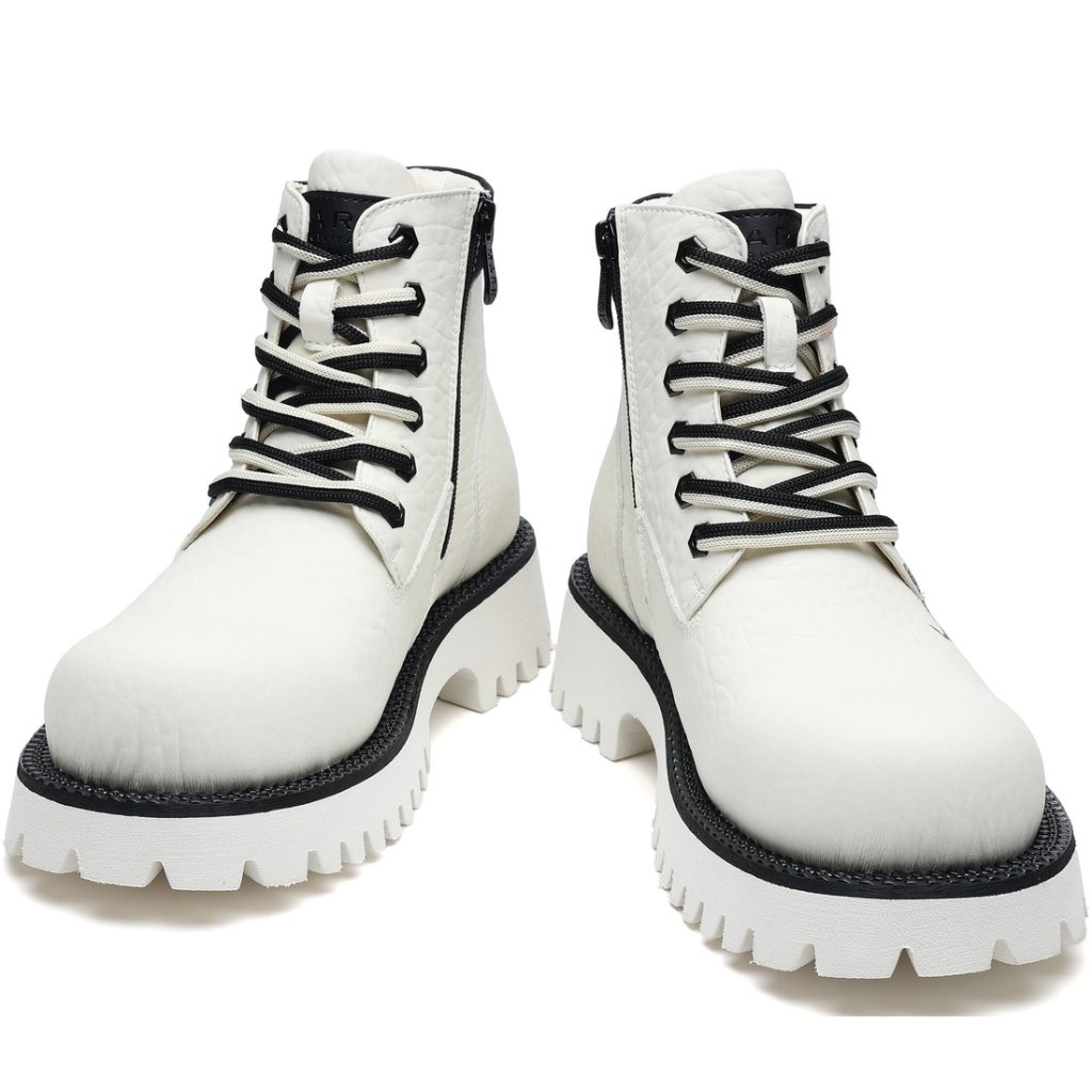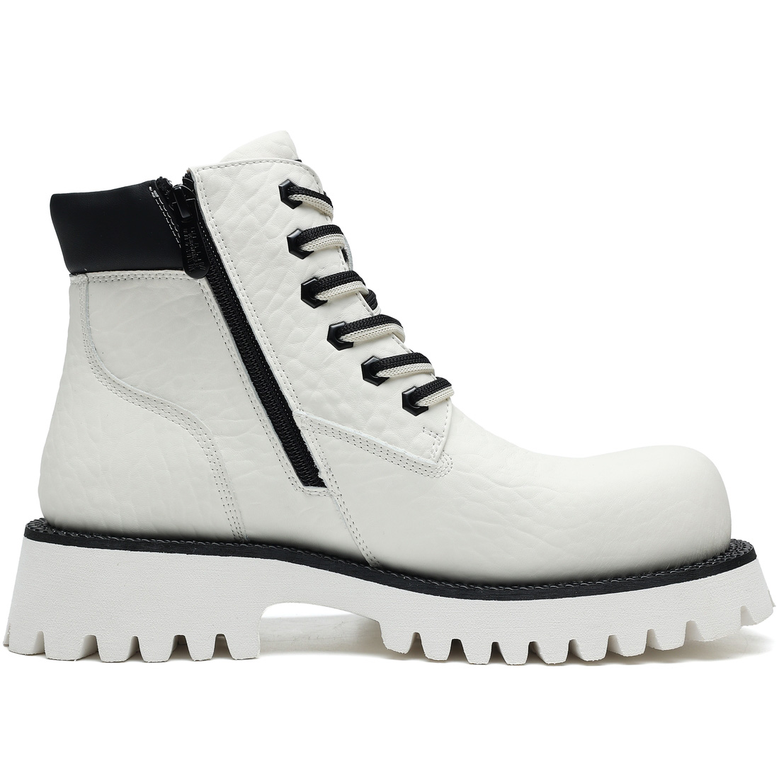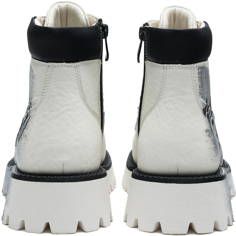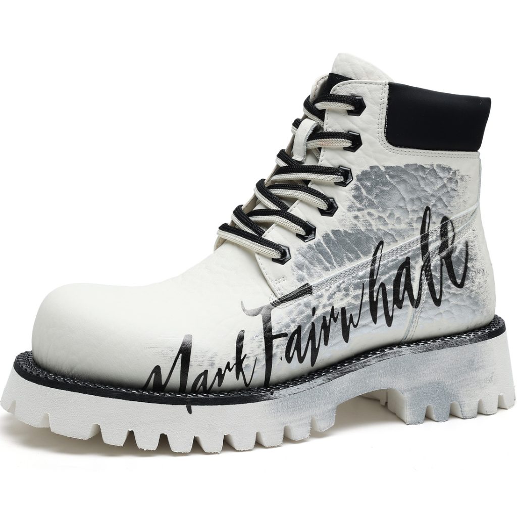 Mens Printed Leather Martin Boots with Side Zipper Design