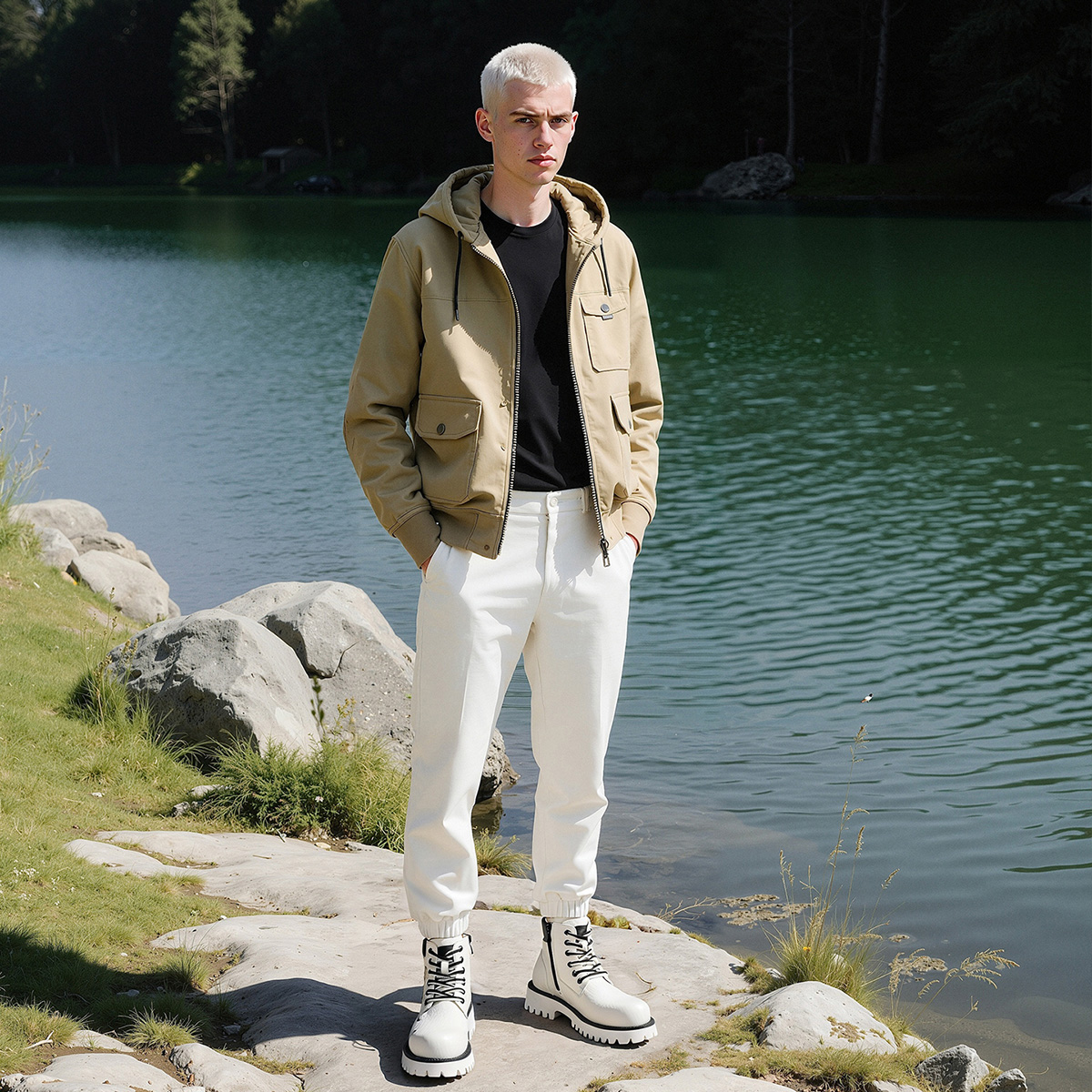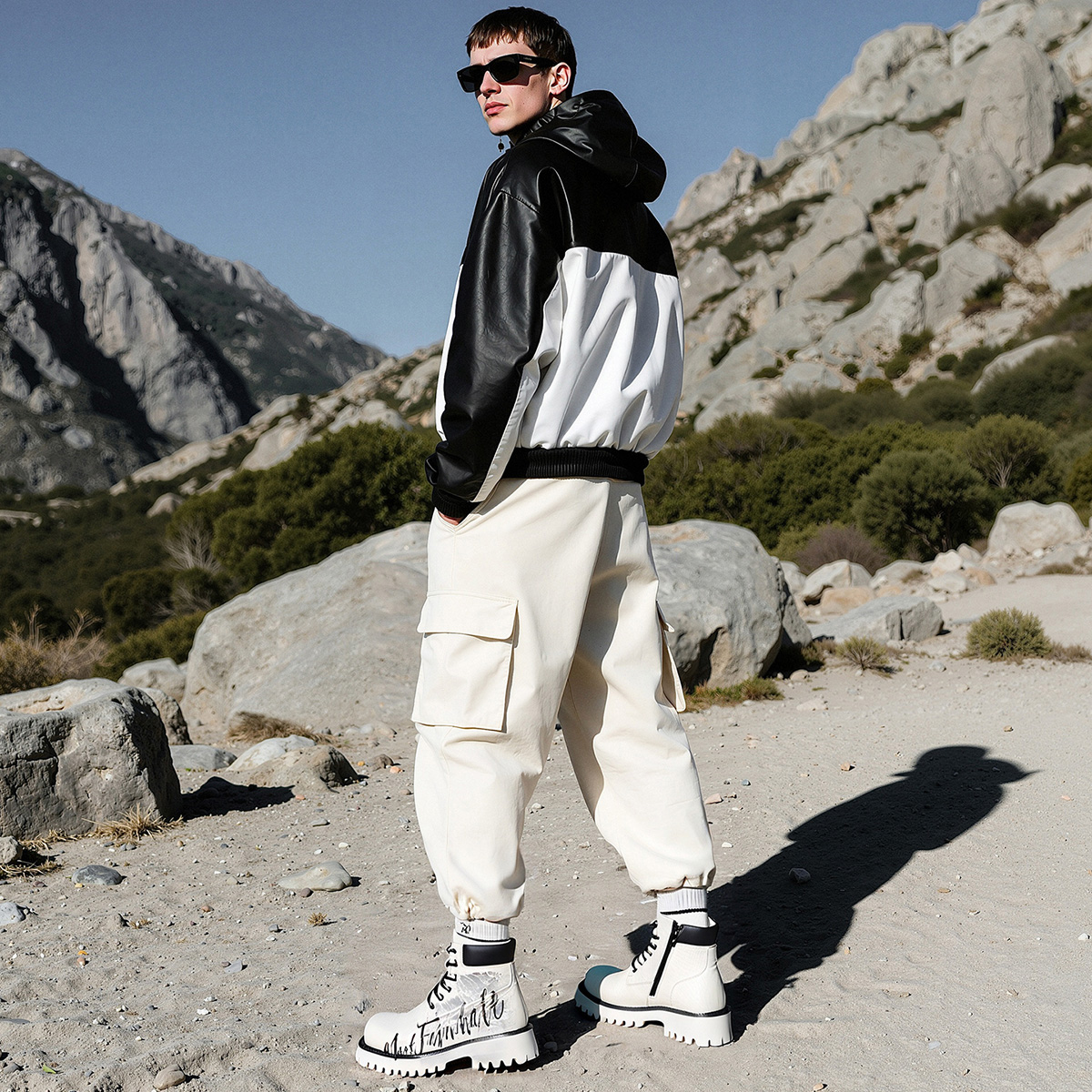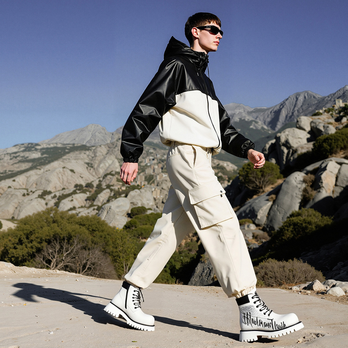 Mens Printed Leather Martin Boots with Side Zipper Design