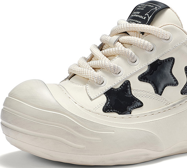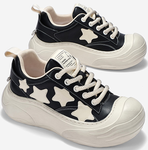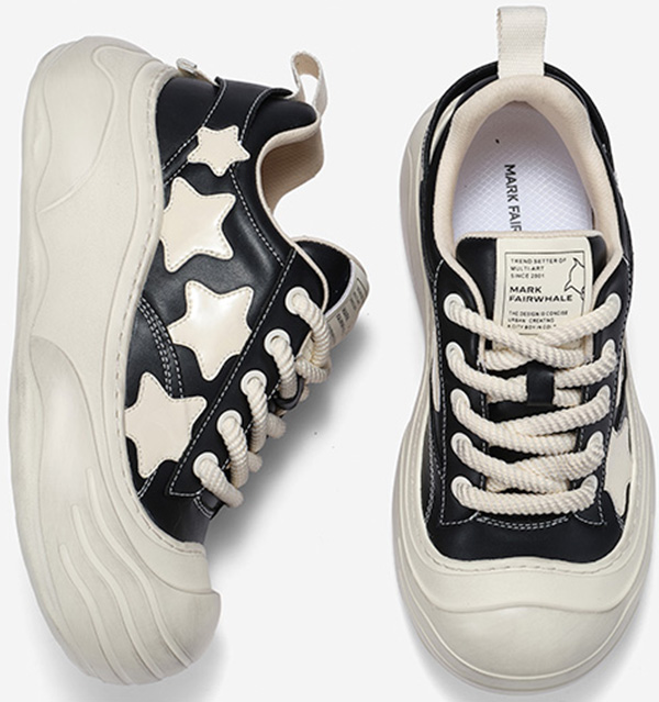 - Adorned with distinctive star-pattern decorations, the shoe features a minimalist yet eye-catching black-and-white color-blocking style. Combined with brand logo details, it exudes a strong sense of fashion and recognition, and easily matches various daily outfits.