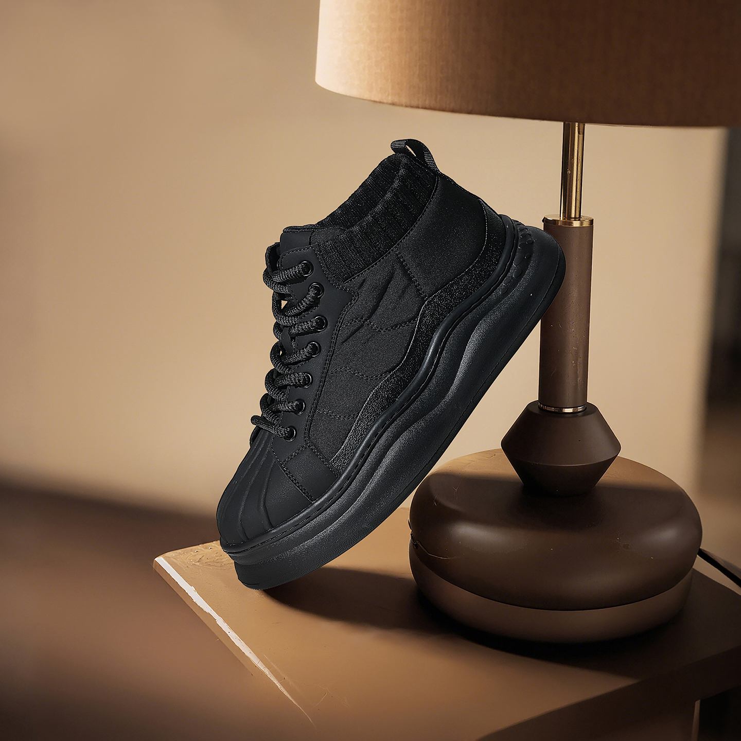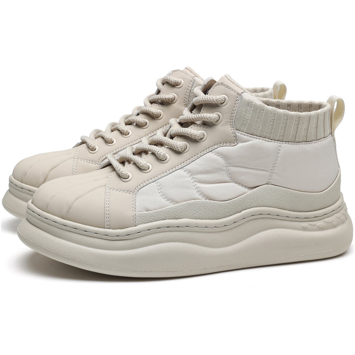 The 1.77-inch (approximately 4.5 cm) thick sole design balances height enhancement with a trendy look. Made from lightweight foam rubber, it effectively reduces strain on the feet. The platform design optimizes body proportions while ensuring walking stability, aligning with the current trend of chunky-soled shoes.