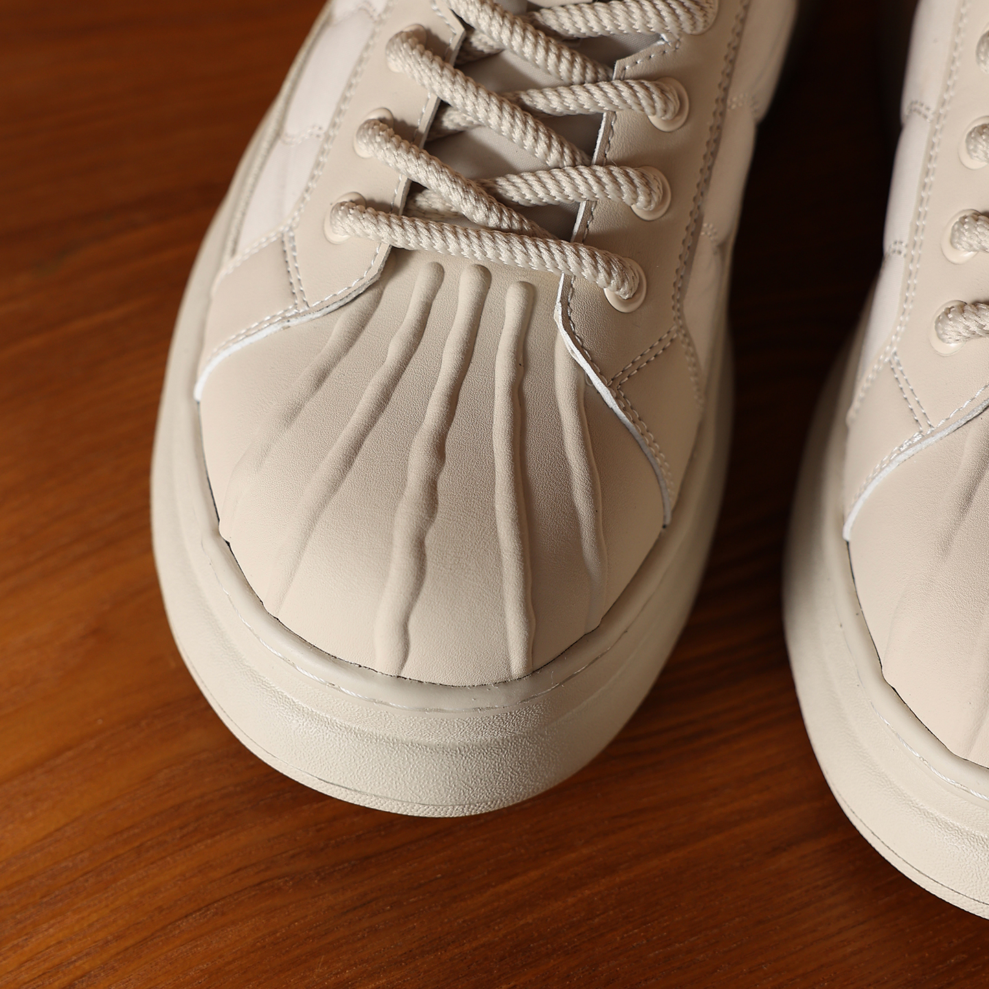 The shoe features a retro shell toe design with simple lines, making it highly recognizable and echoing classic streetwear aesthetics. The reinforced shell toe not only adds a vintage touch but also provides extra impact protection, combining style and practicality.