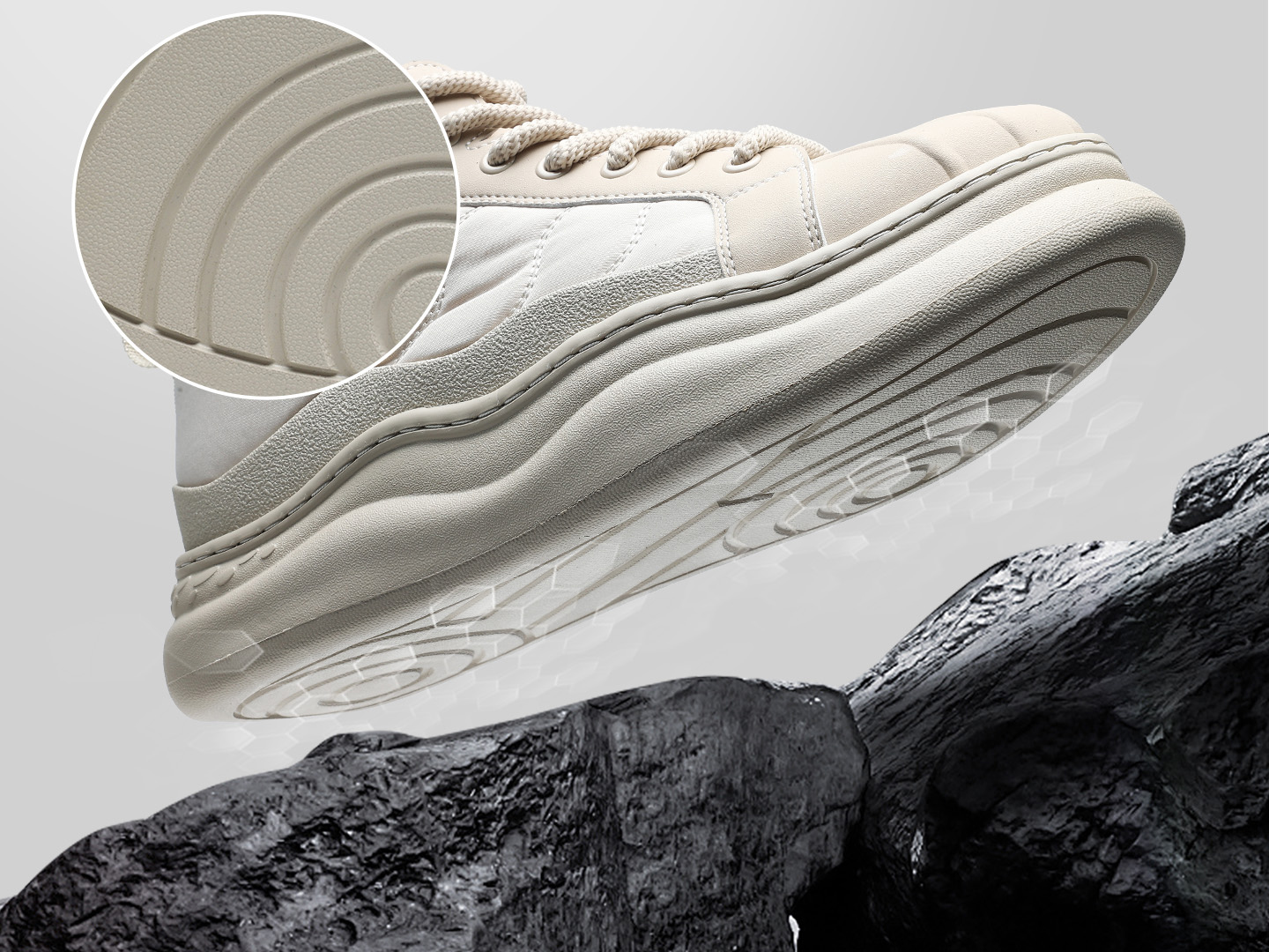The high-density rubber outsole offers excellent wear resistance, ensuring durability for everyday wear. The outsole features a non-slip geometric pattern, providing stable grip on various surfaces, making it perfect for commuting, casual outings, or light activities.