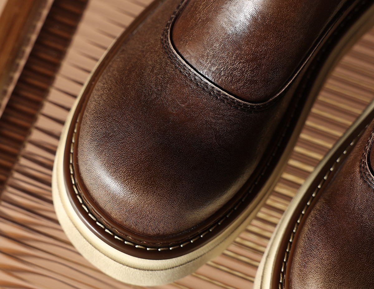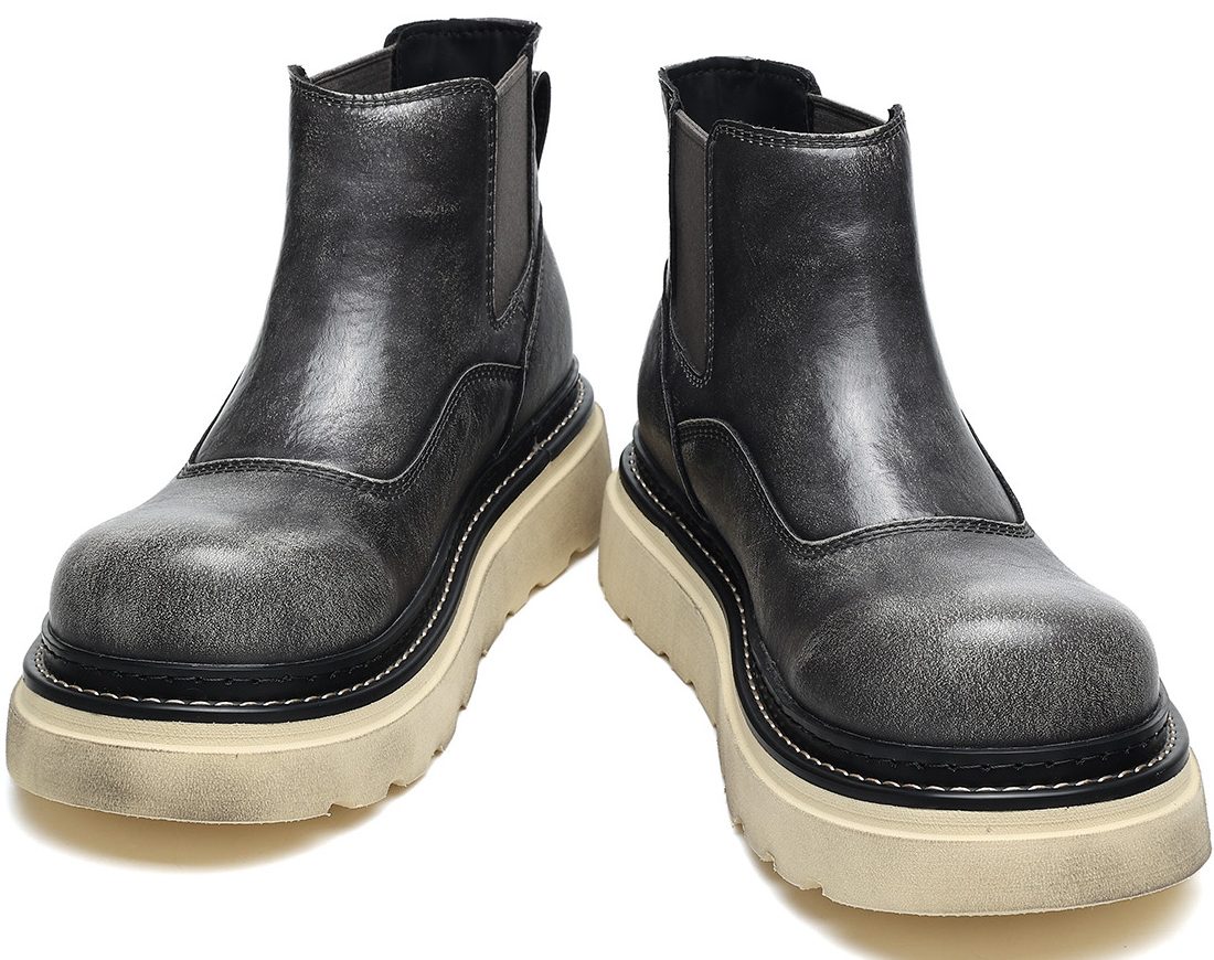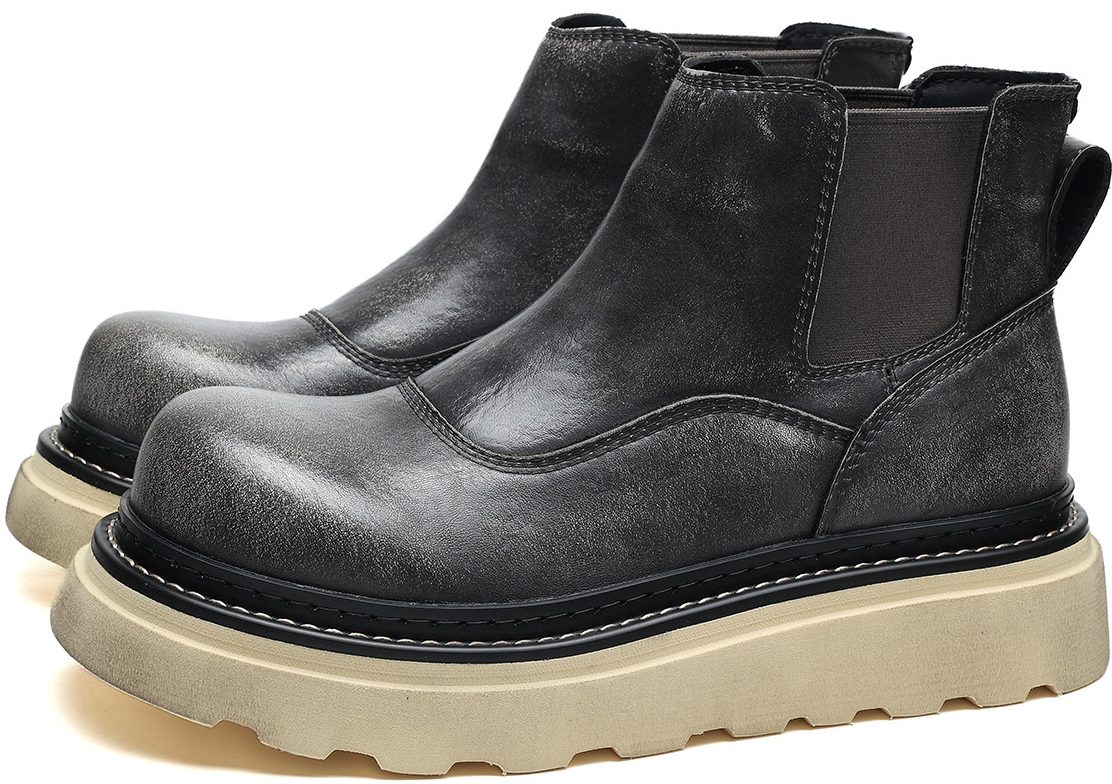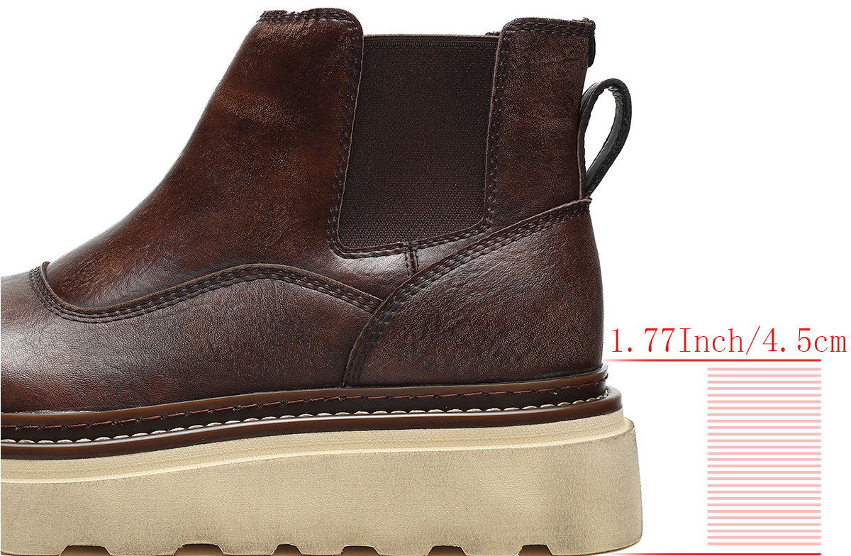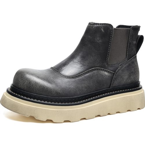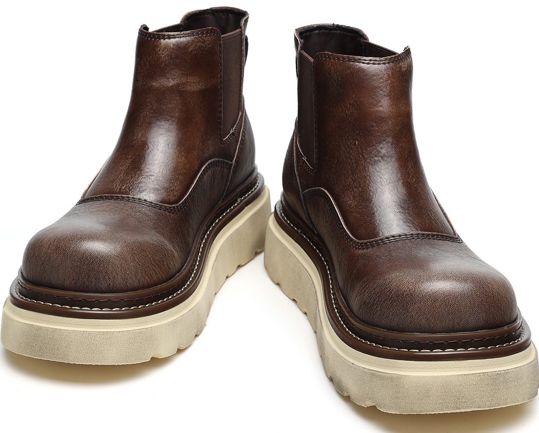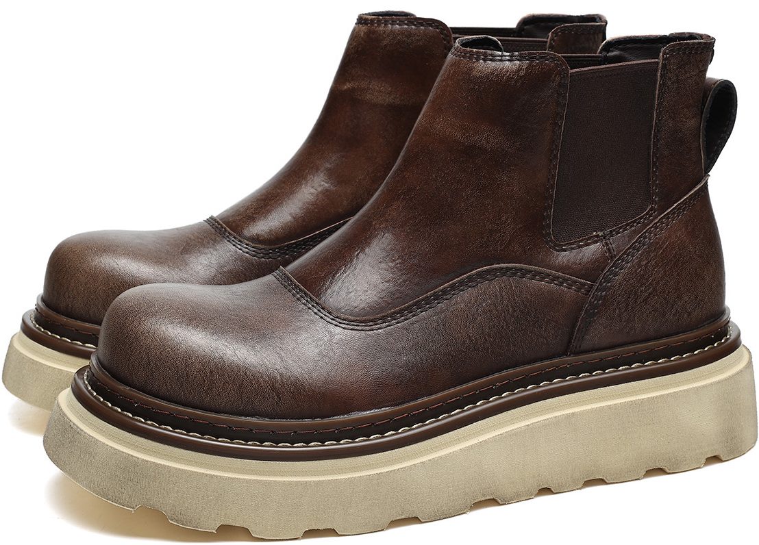 Mens Slip On Chunky Chelsea Boots with Leather Upper