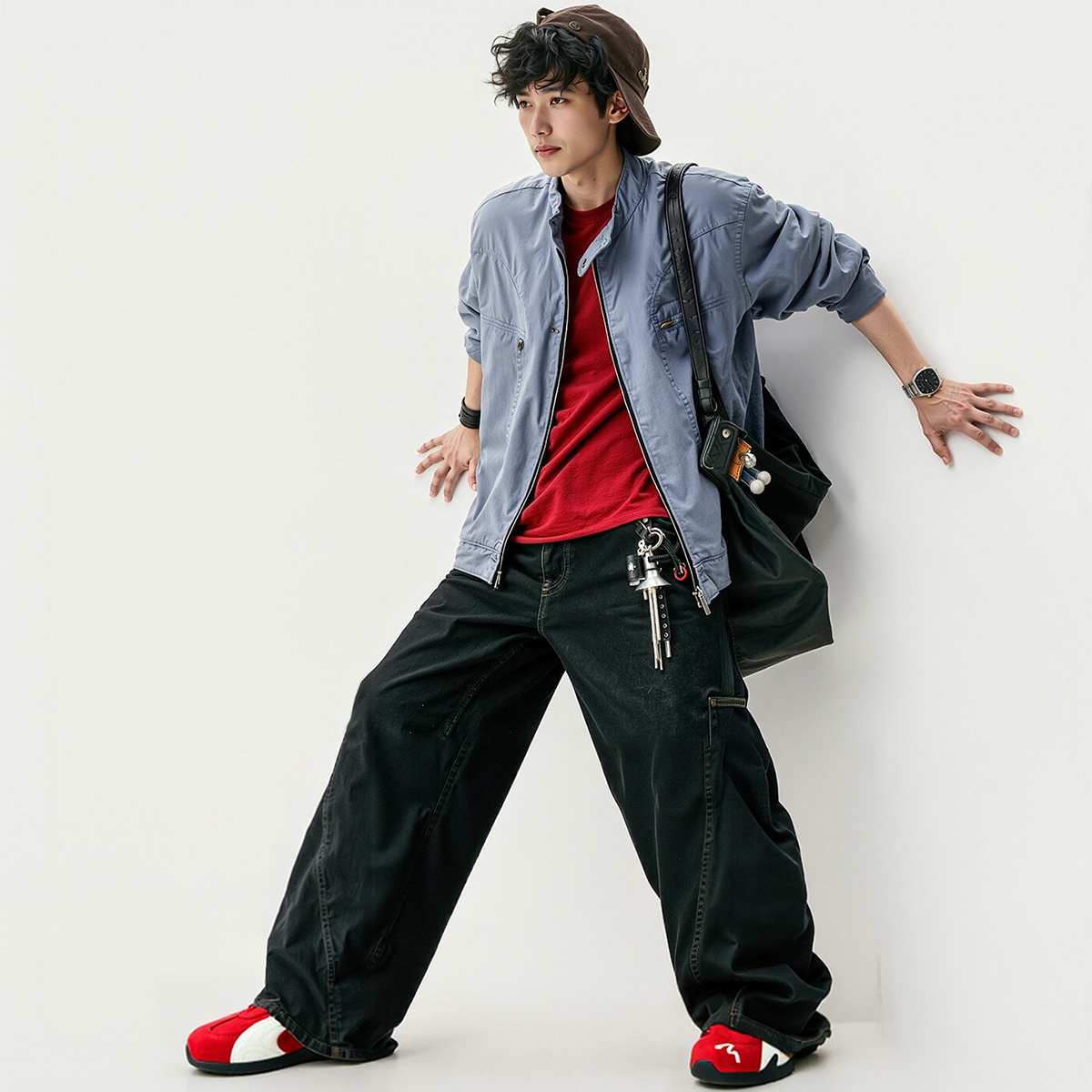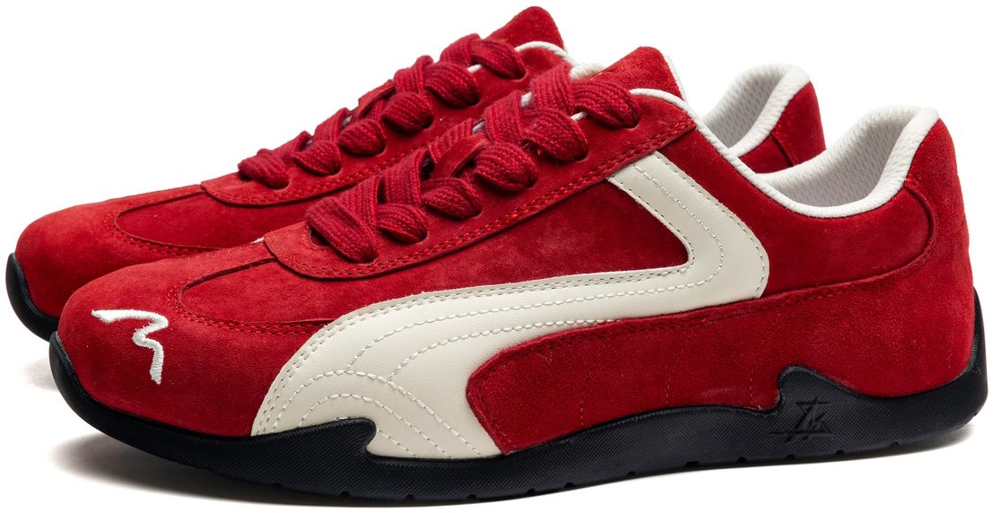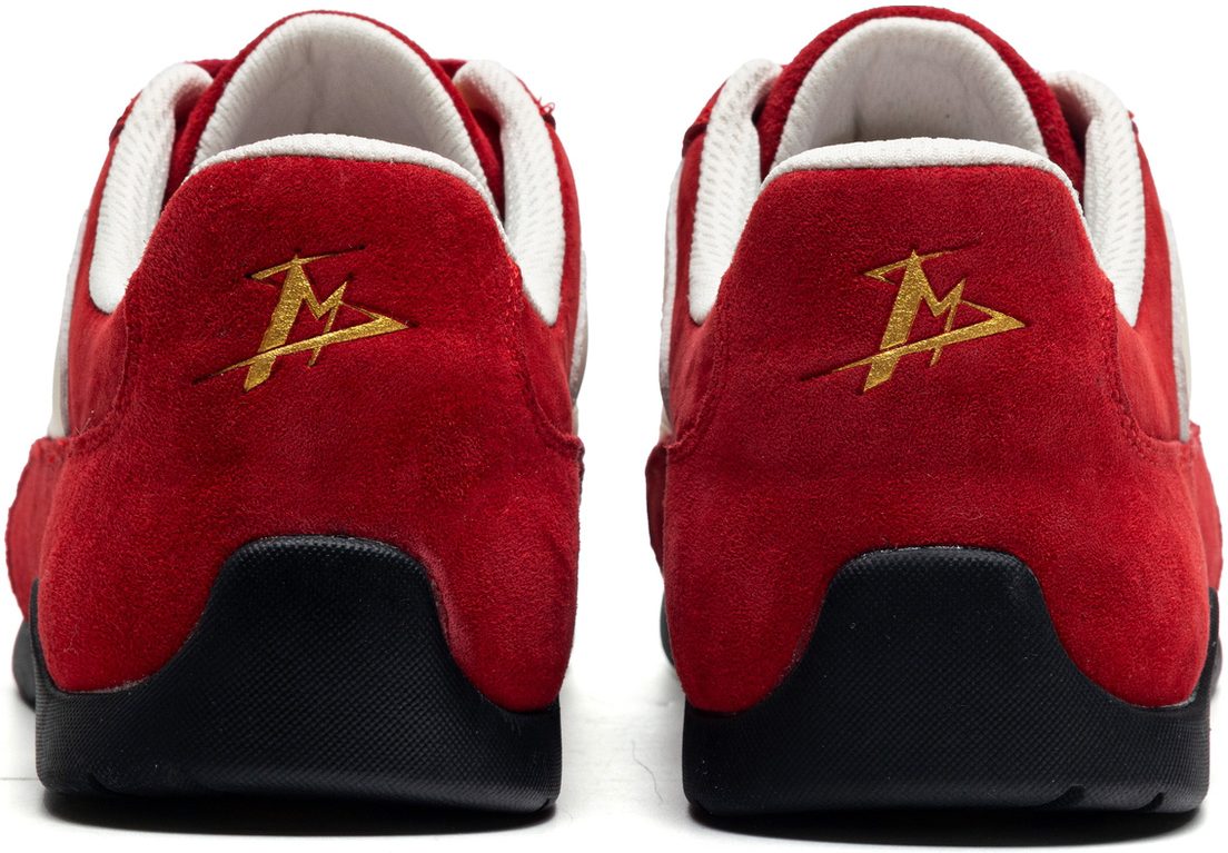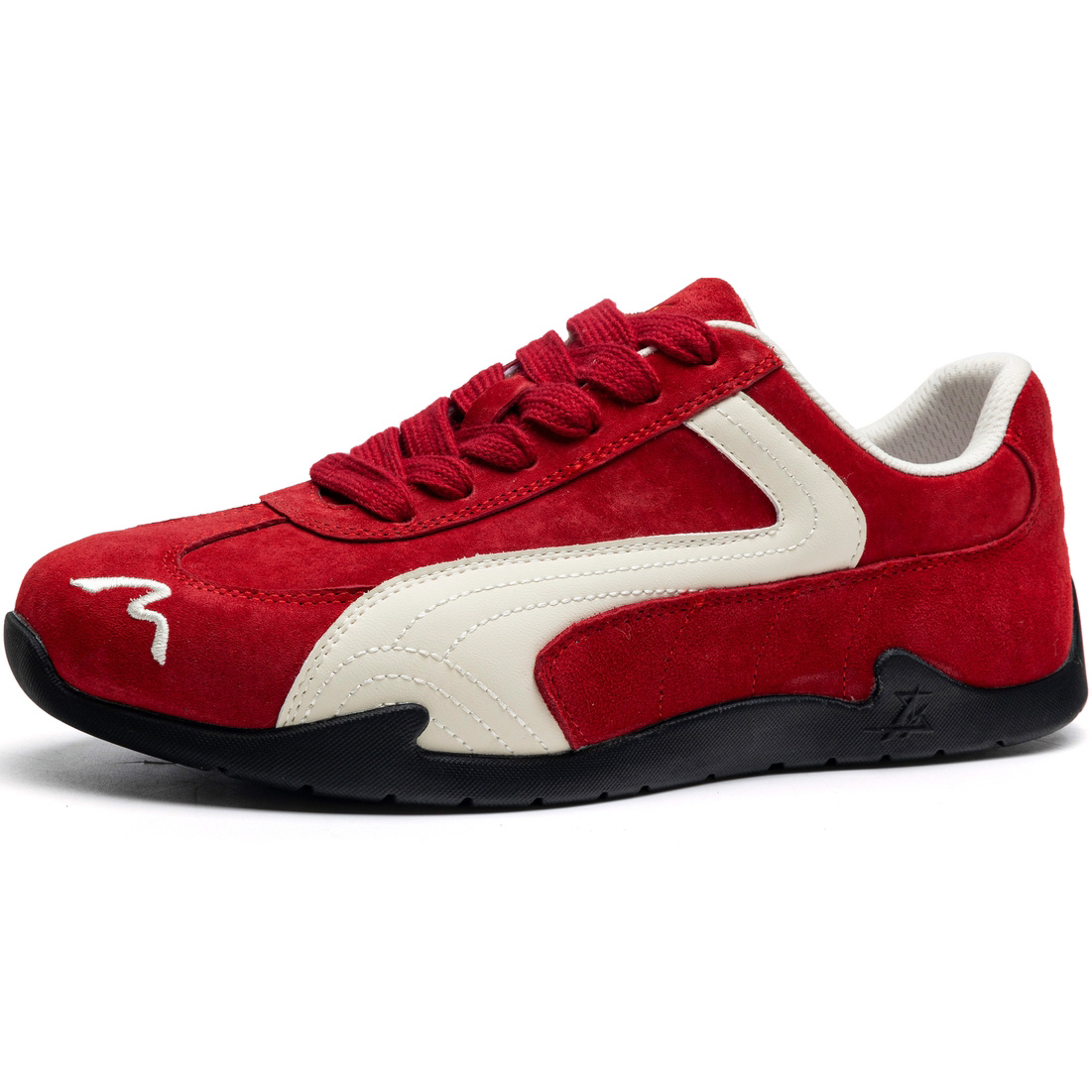 Mens Suede Black German Army Trainers with White Streamlined Overlays and Embroidery
