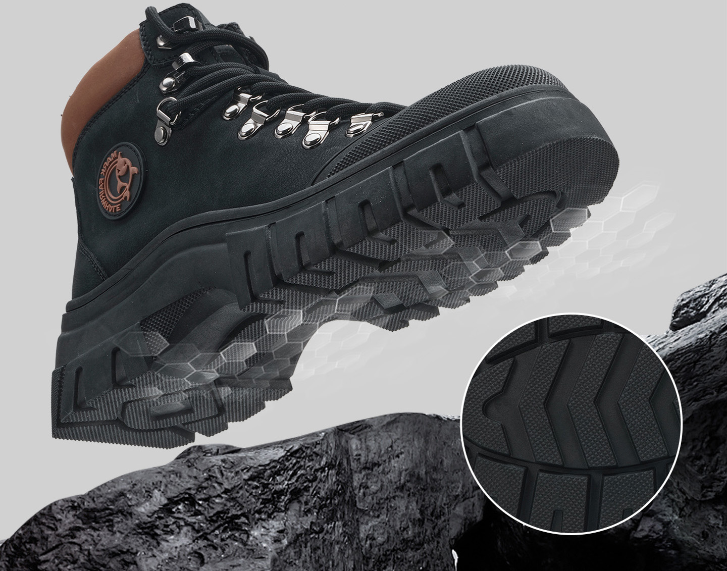 Mens Thick Soled Non Slip Work Boots with Anti Collision Toe Cap