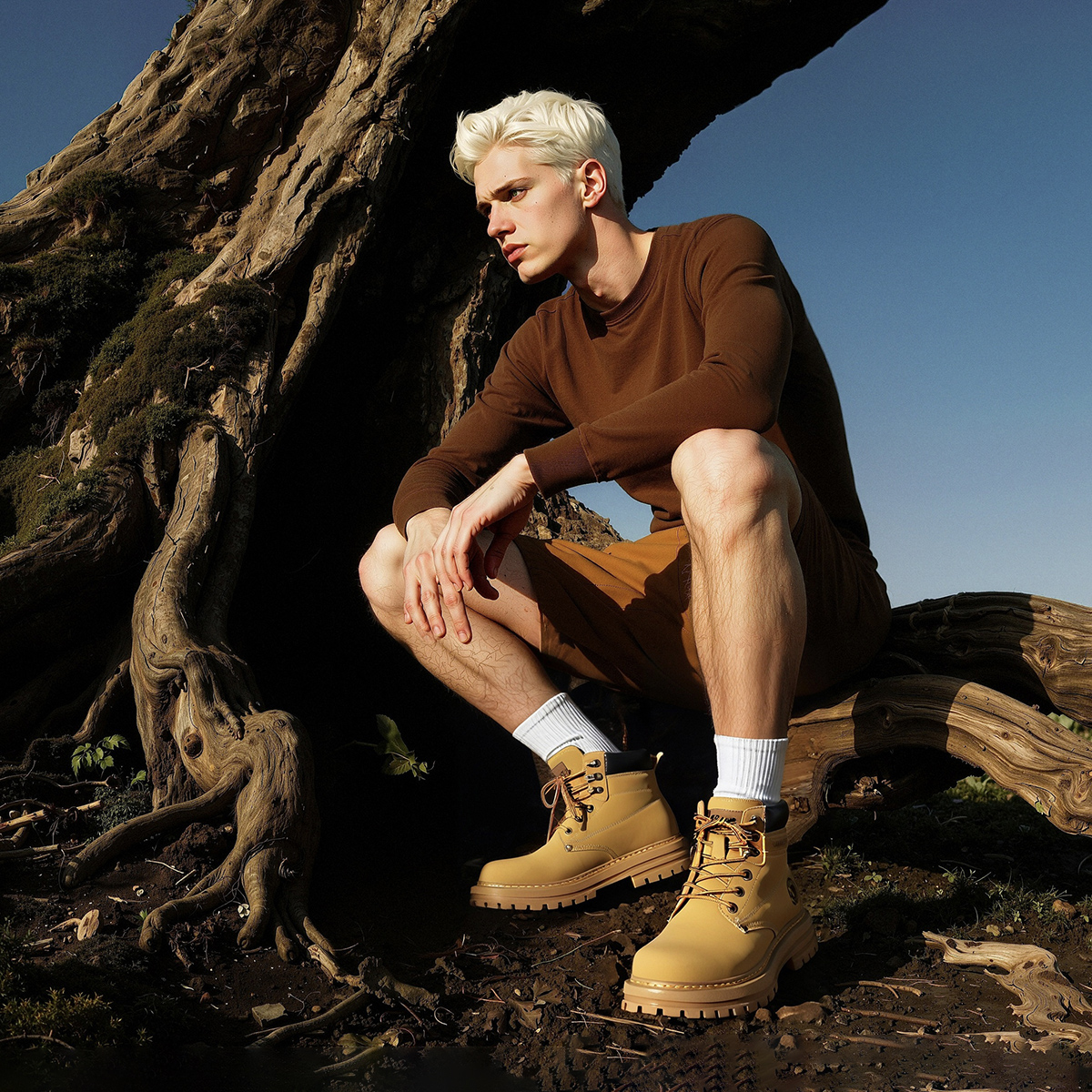 Mens Waterproof Platform Lace Up Round Toe Work Boots